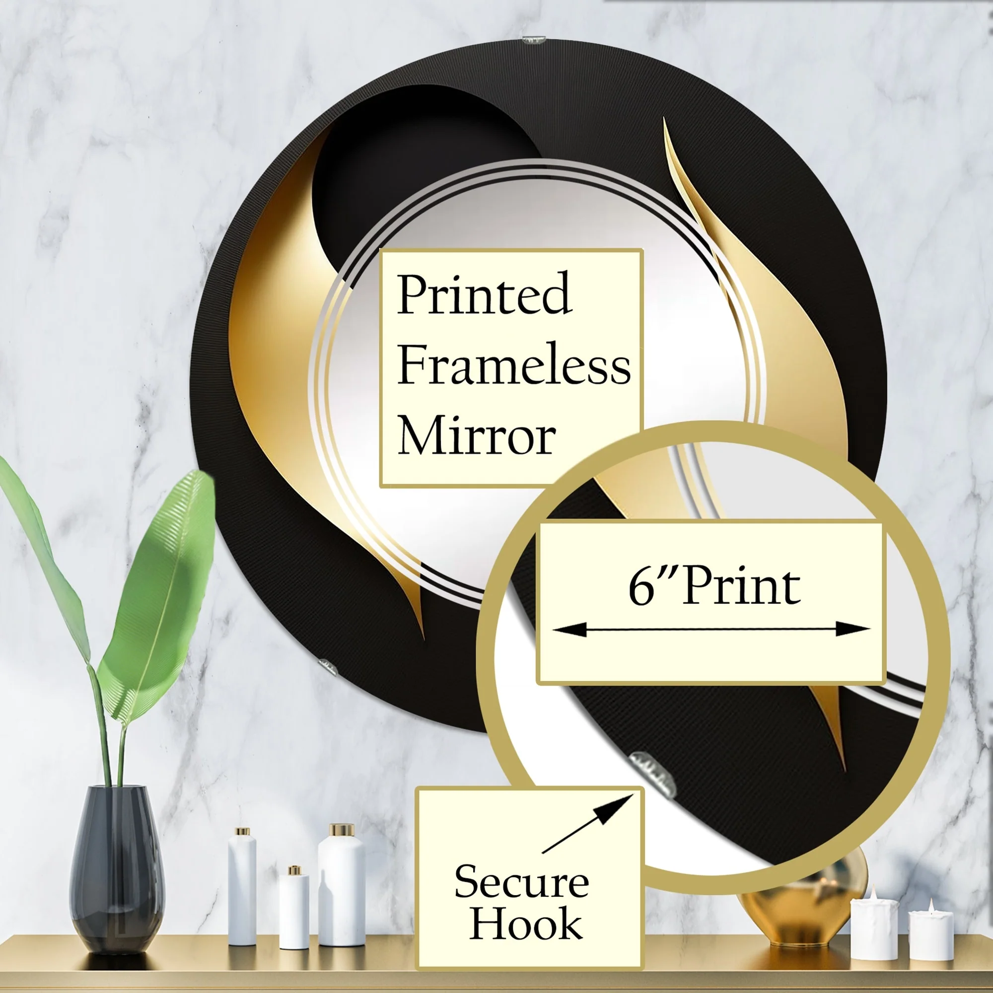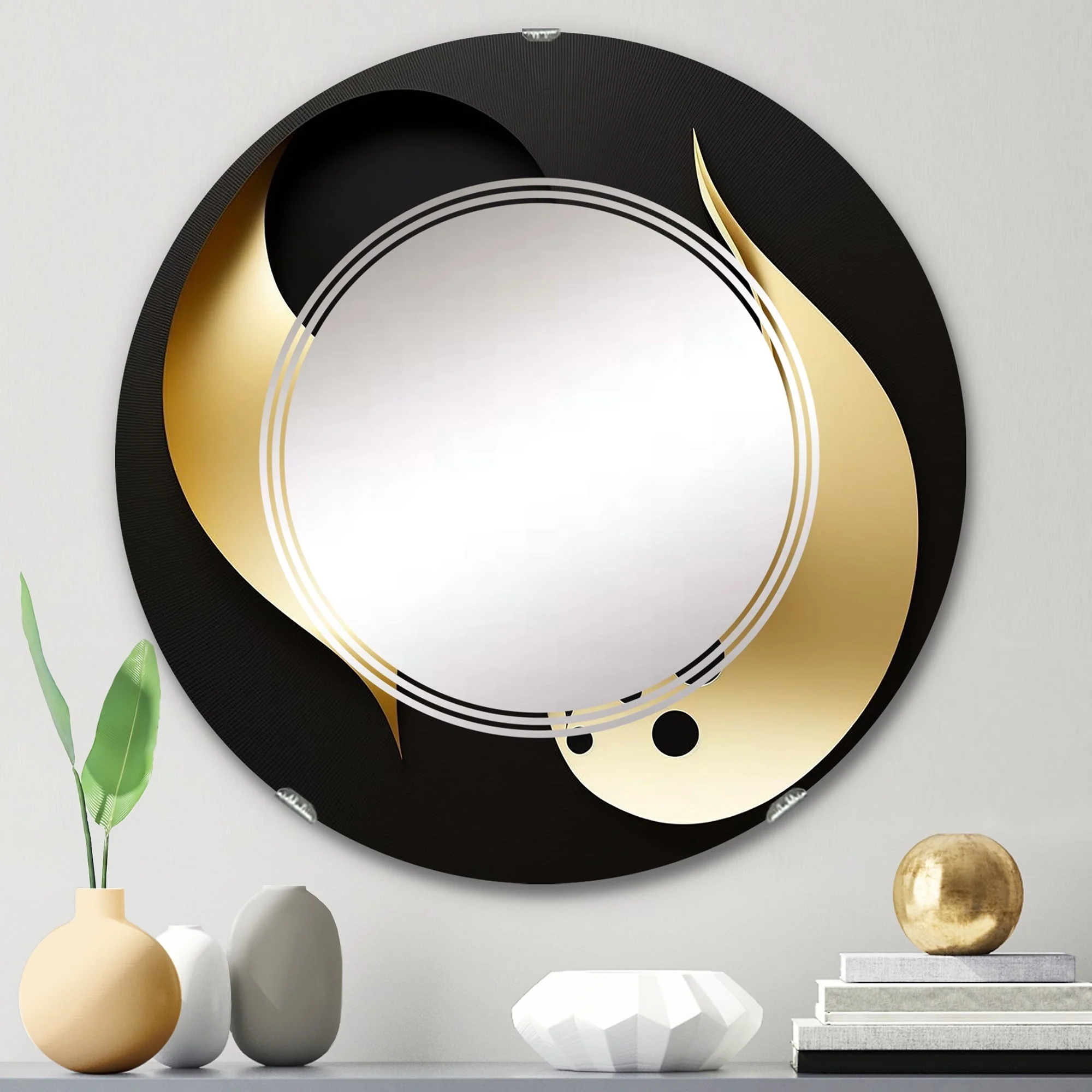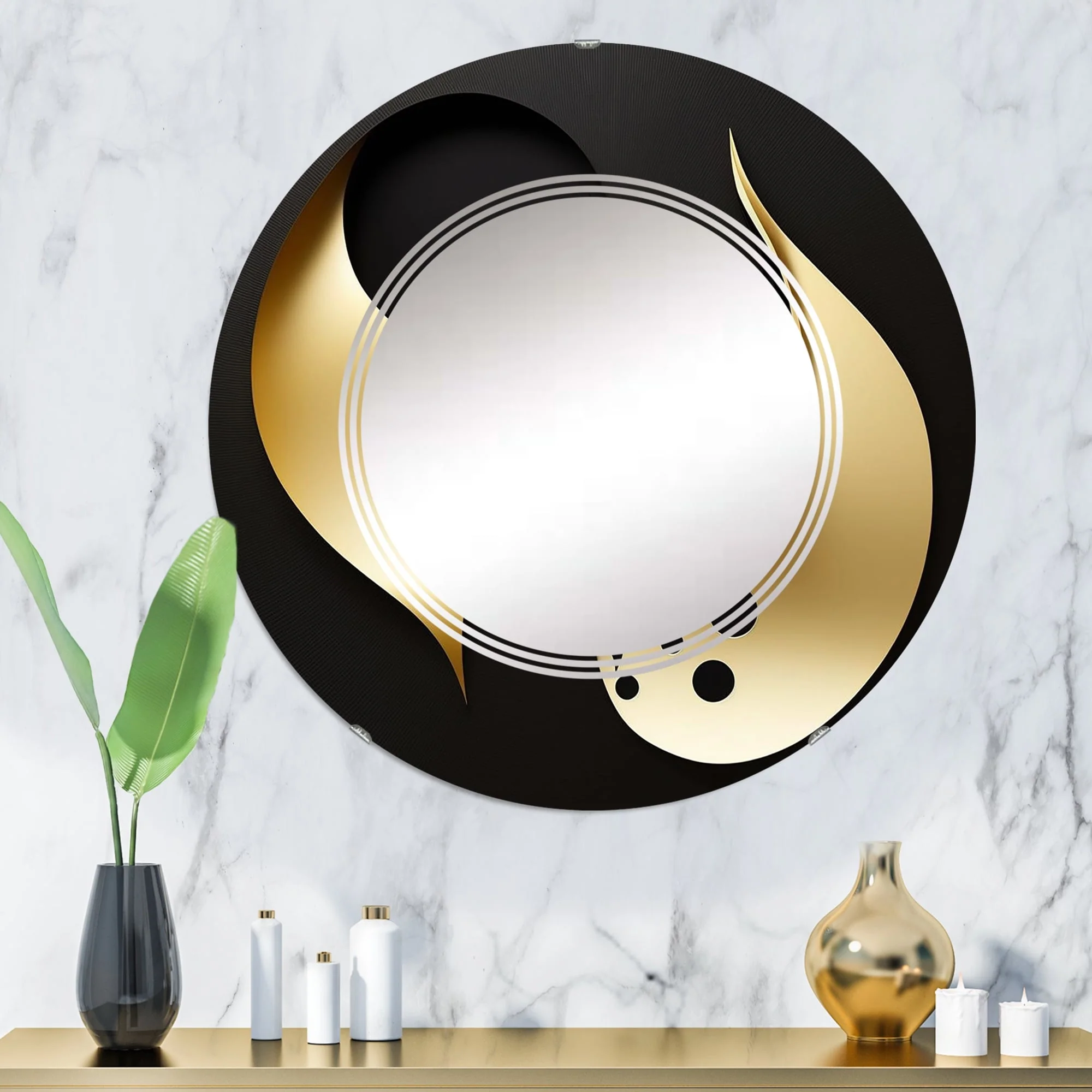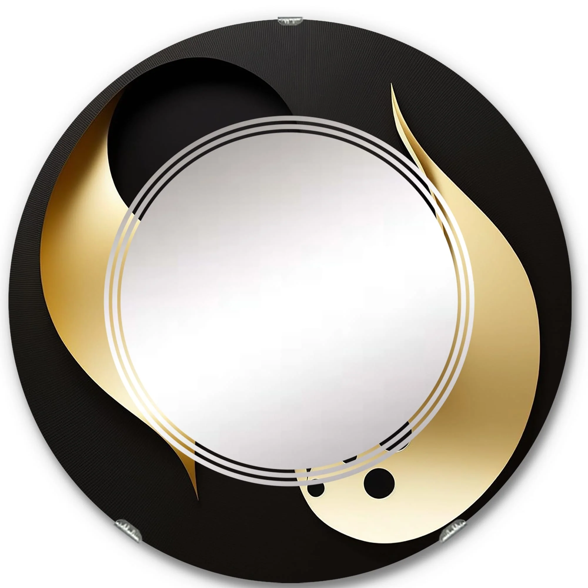 Designart 'Golden Droplets On Black' Printed Modern Geometric Wall Mirror