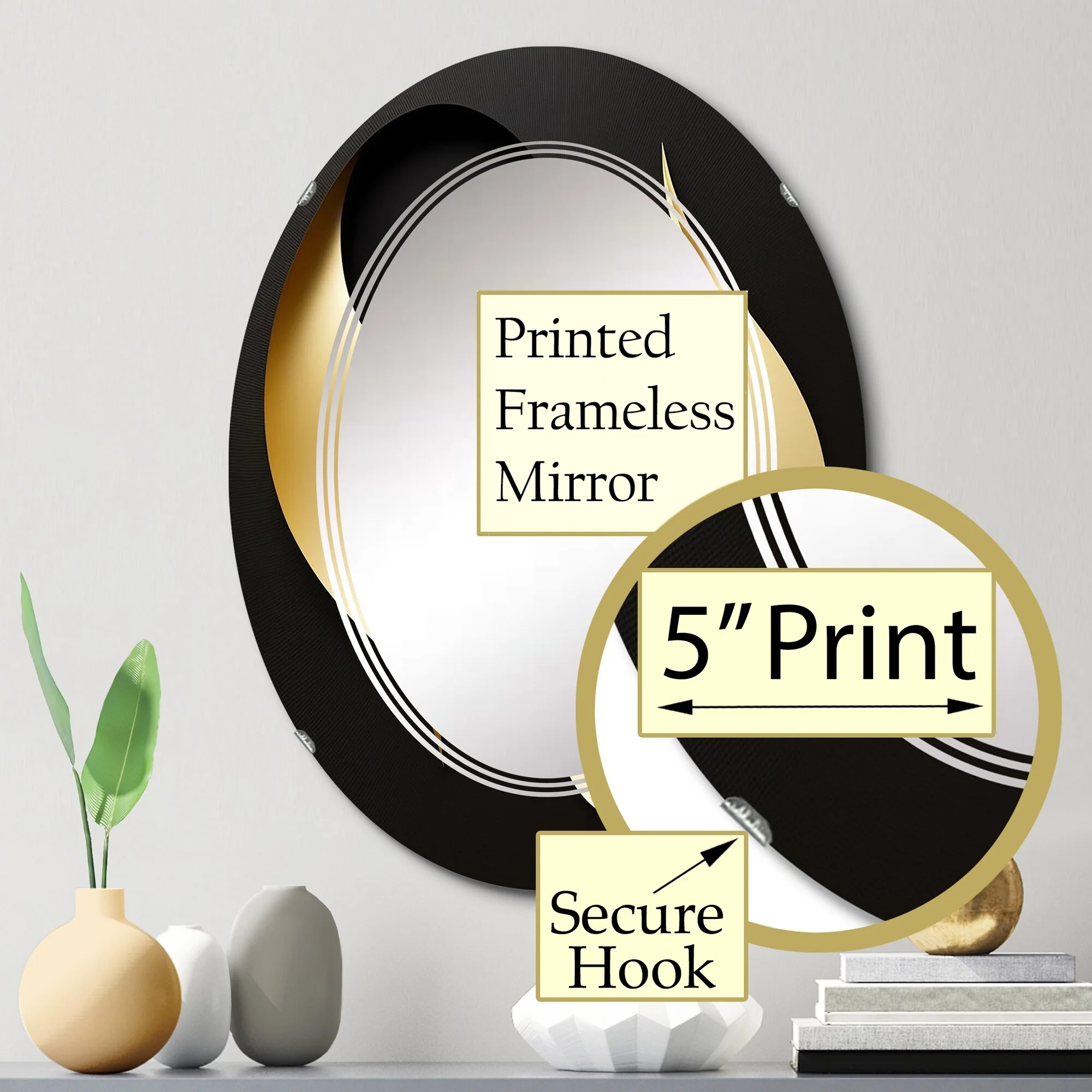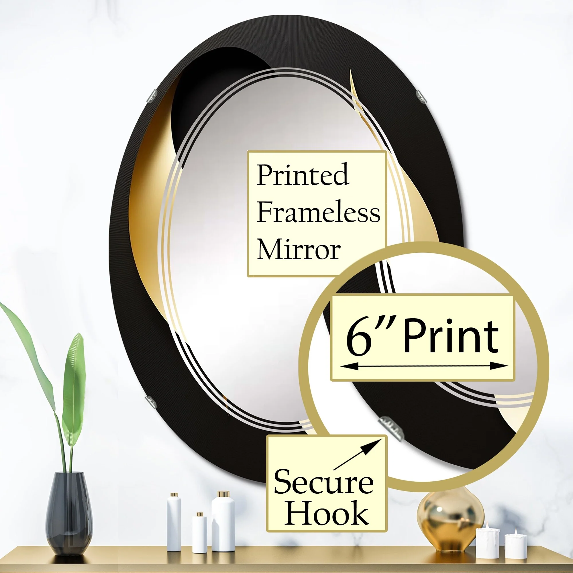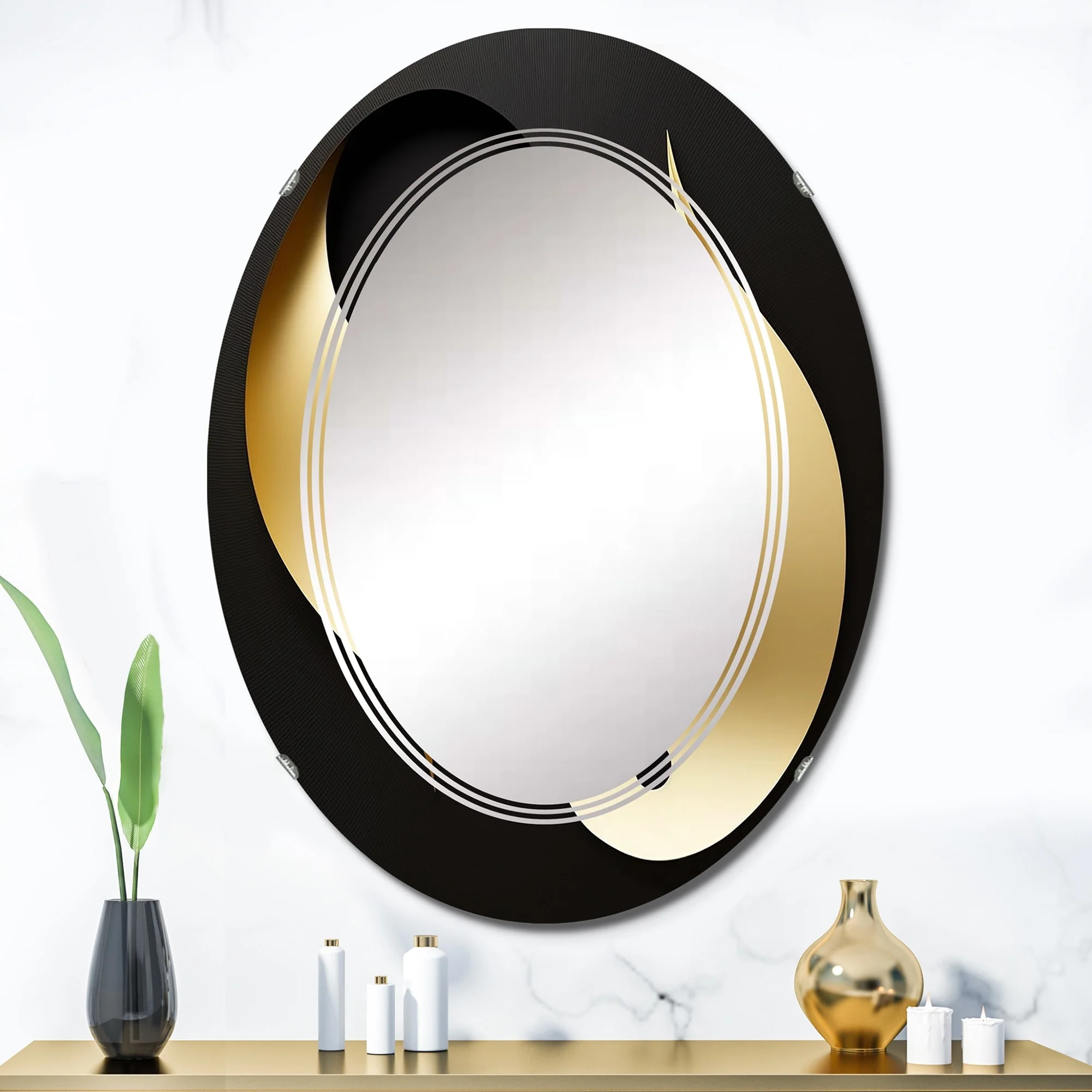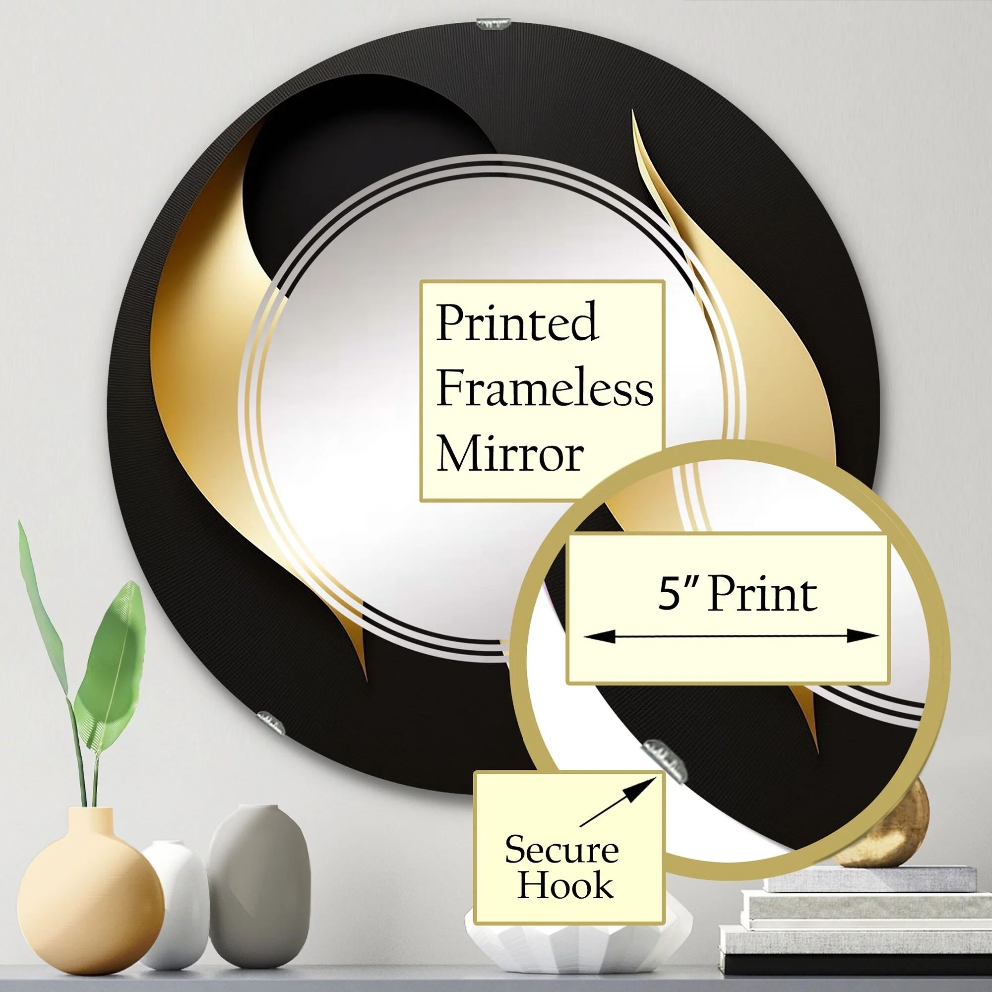 Designart 'Golden Droplets On Black' Printed Modern Geometric Wall Mirror