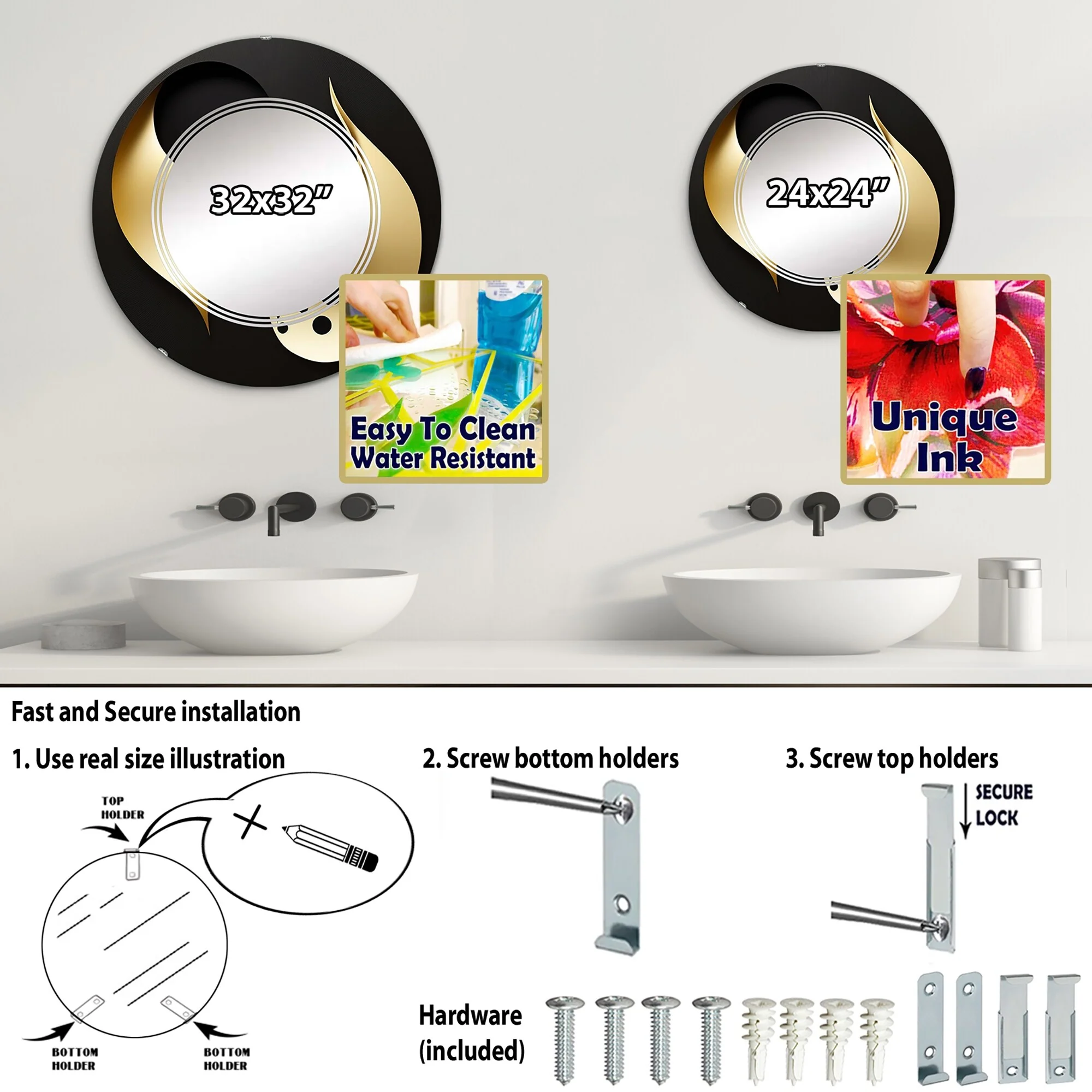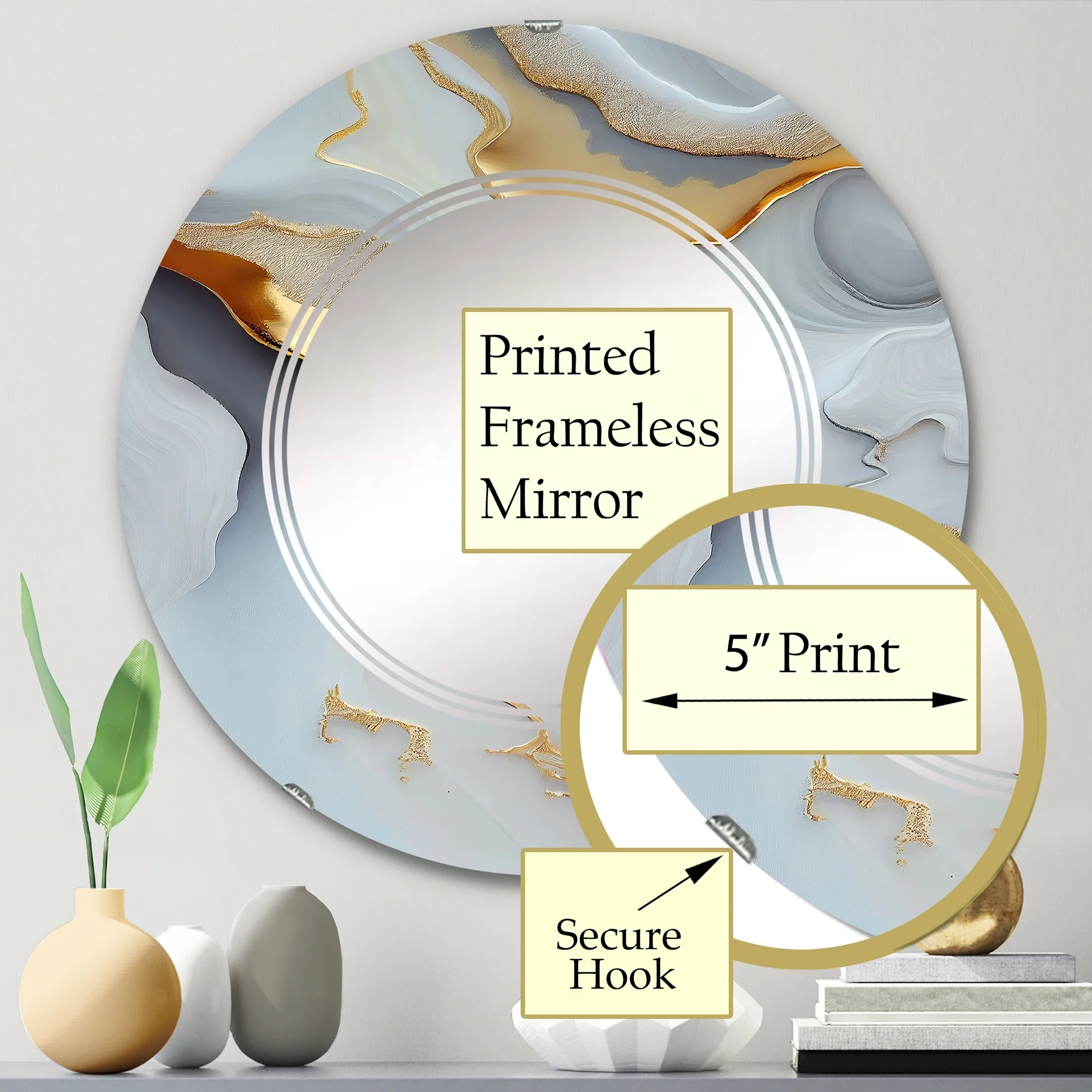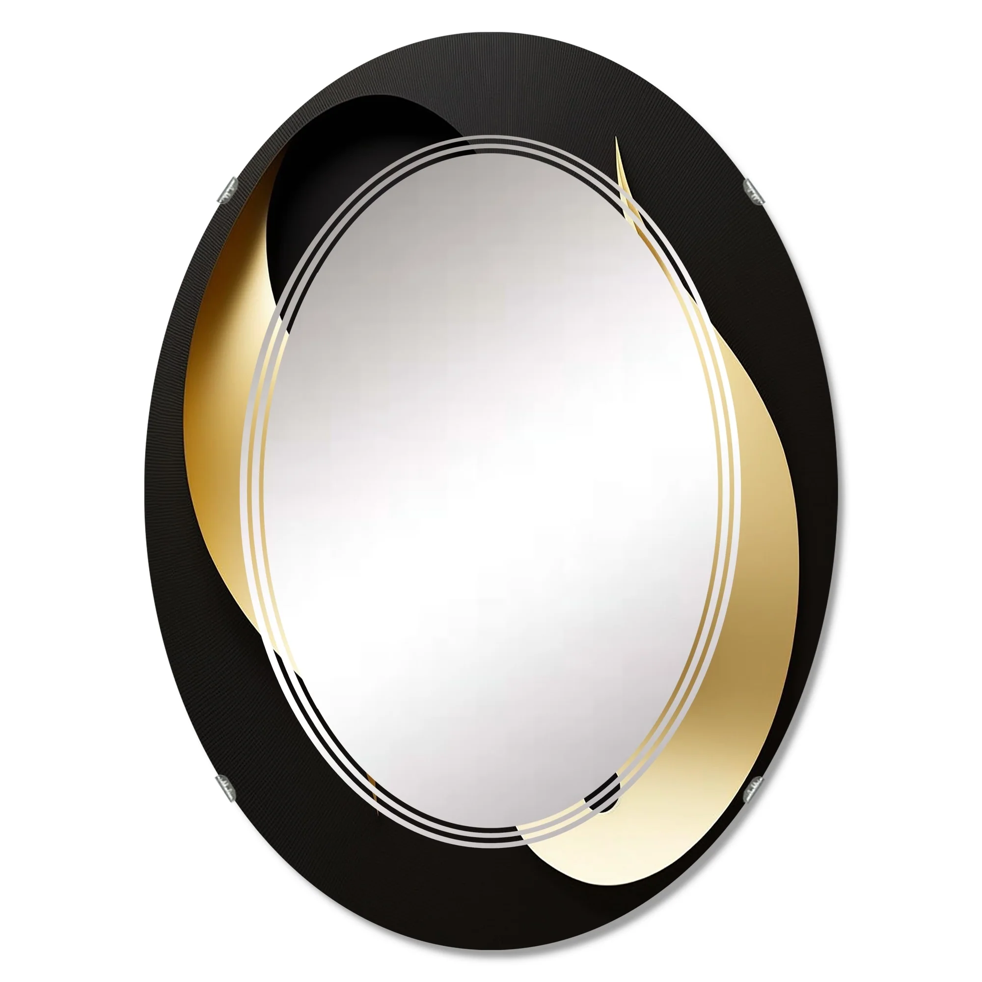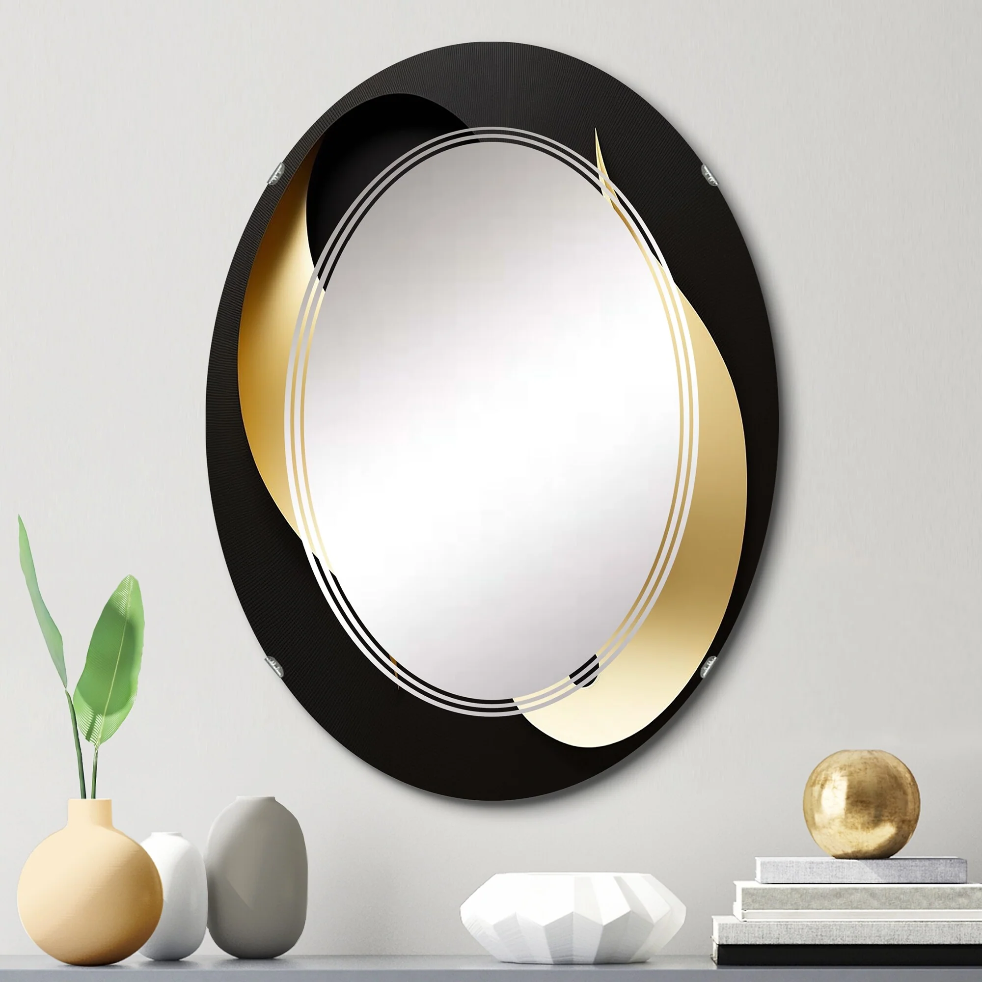 Designart 'Golden Droplets On Black' Printed Modern Geometric Wall Mirror