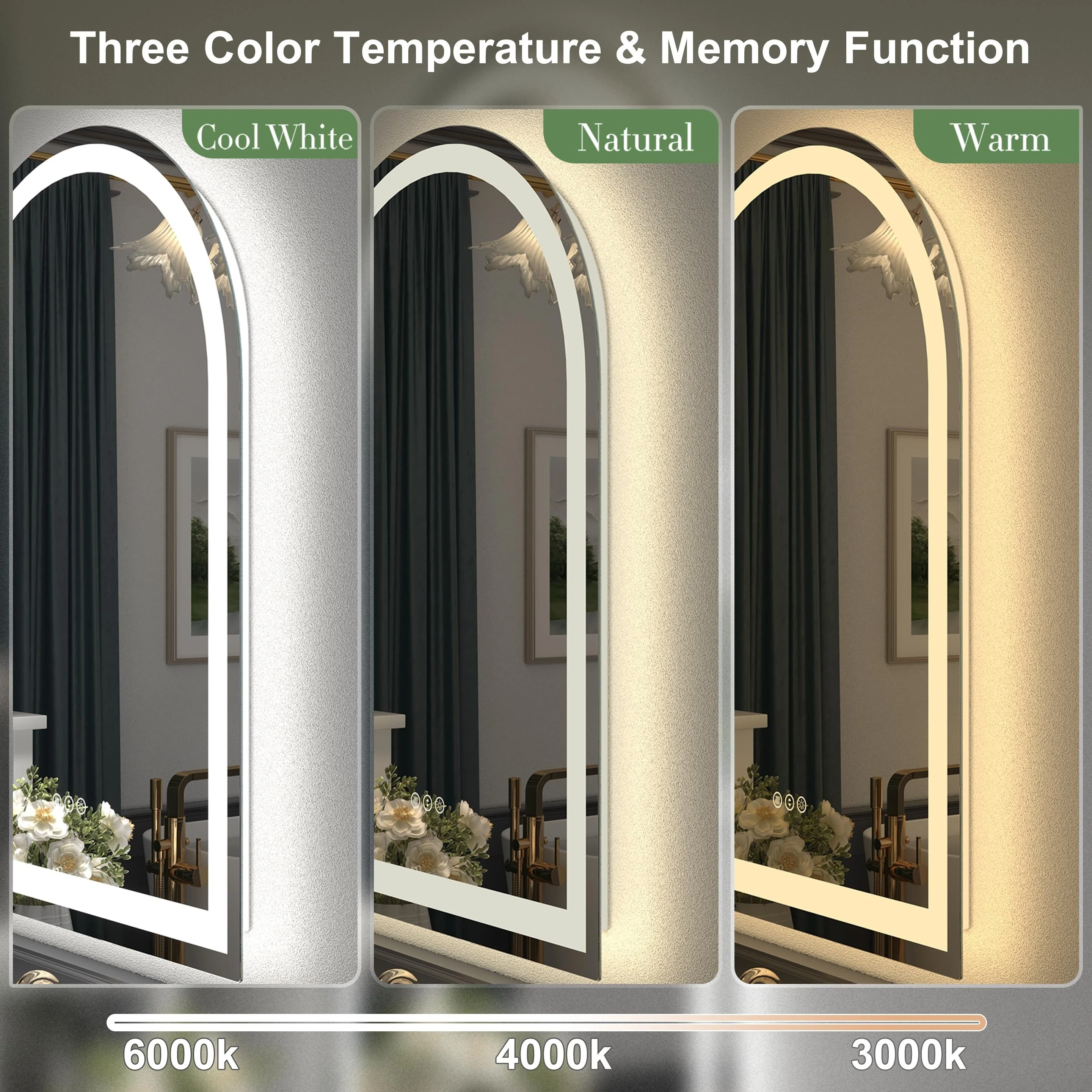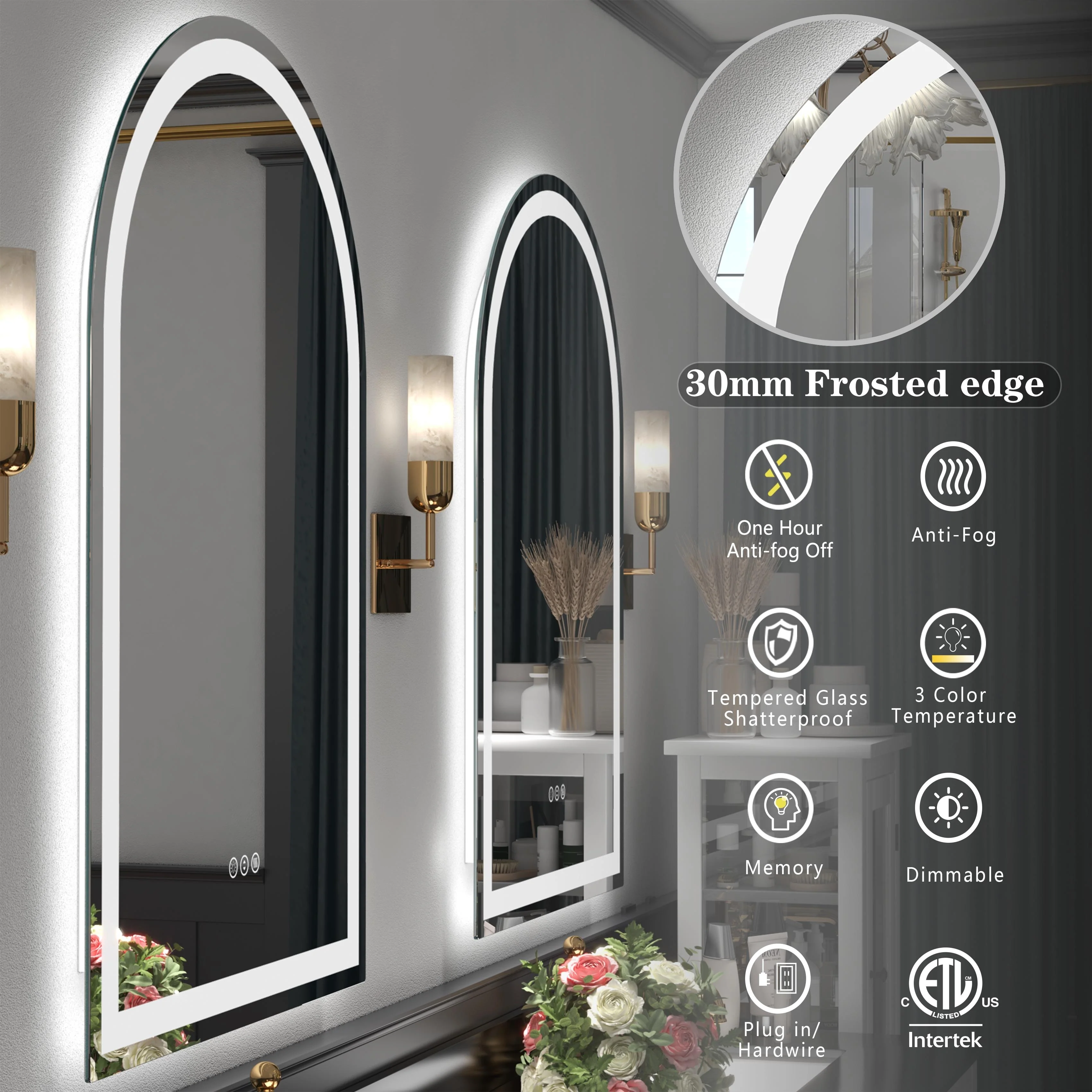 28 x 35 Inch LED Bathroom Vanity Mirror with Lights for Wall, Anti Fog Mirror for Bathroom, 3 Colors and Dimmable Light