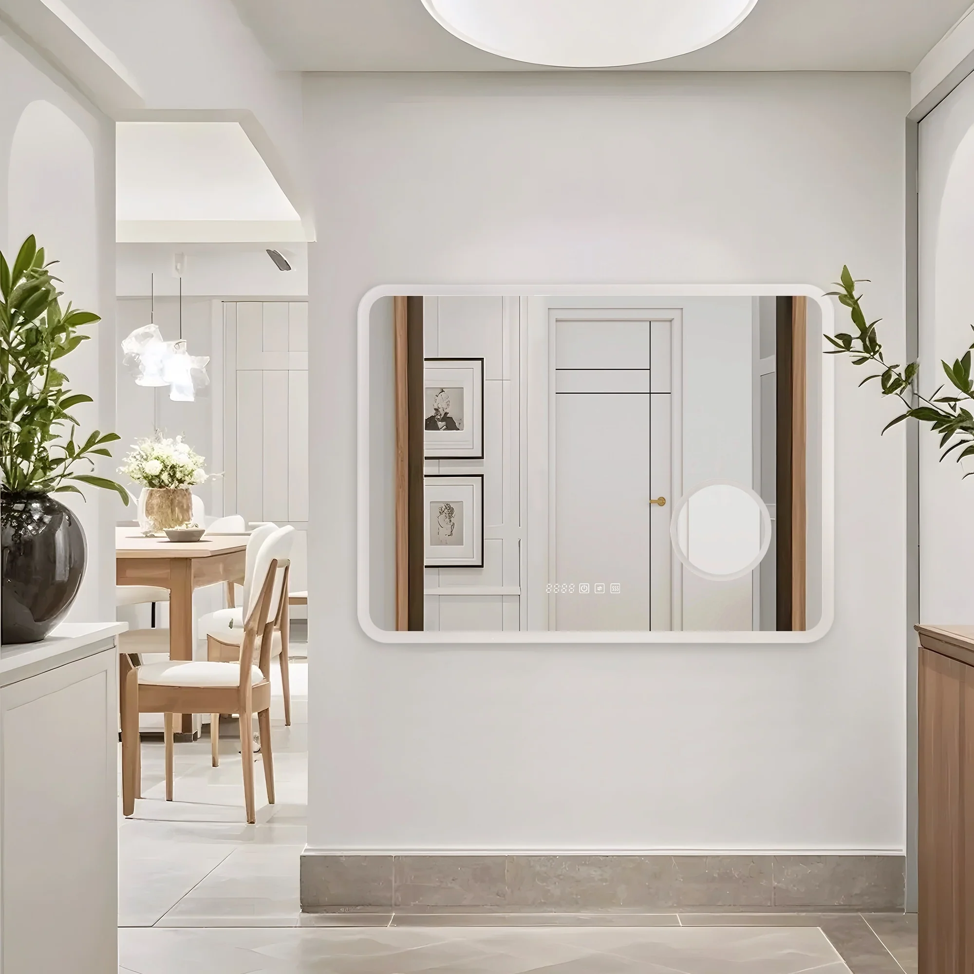 SmartReflect Modern 24" Round LED Dimmable Anti-Fog Frameless Bathroom Vanity Mirror - Clear