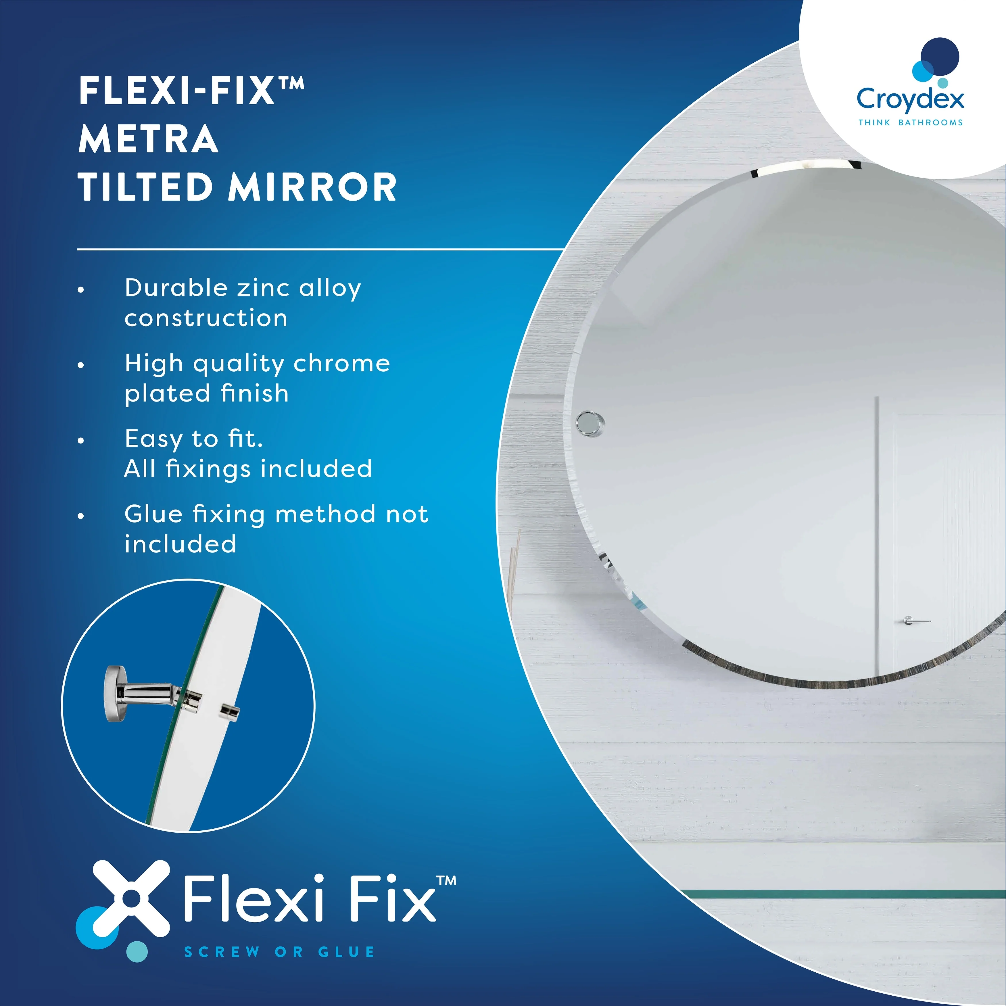 Croydex Metra Flexi-Fix Screw or Glue Tilting Mirror in Chrome