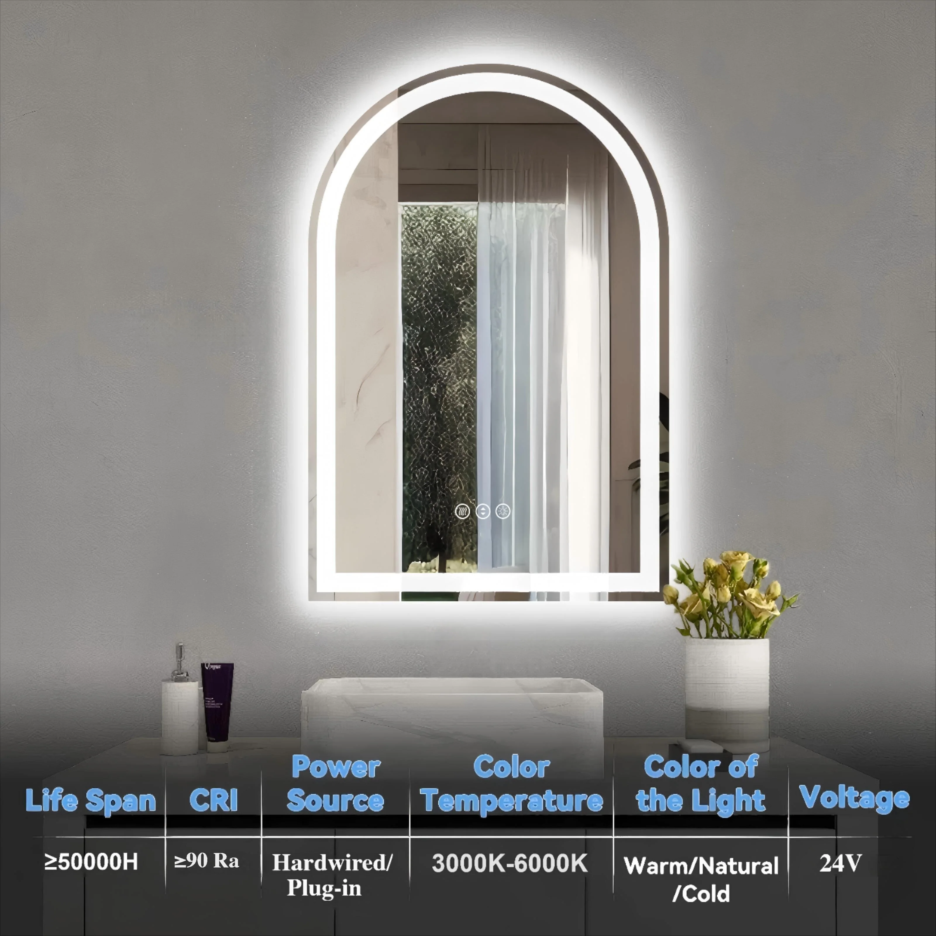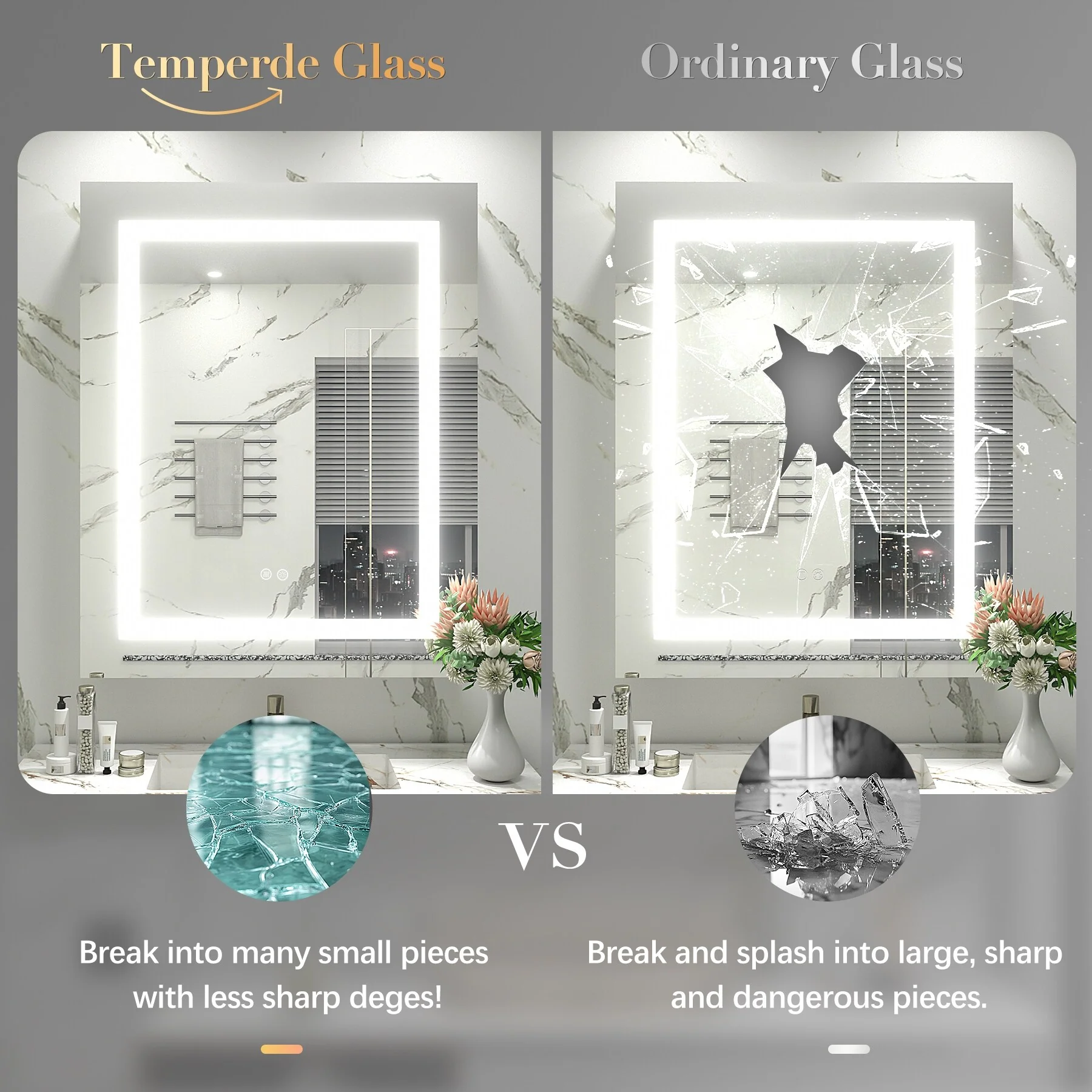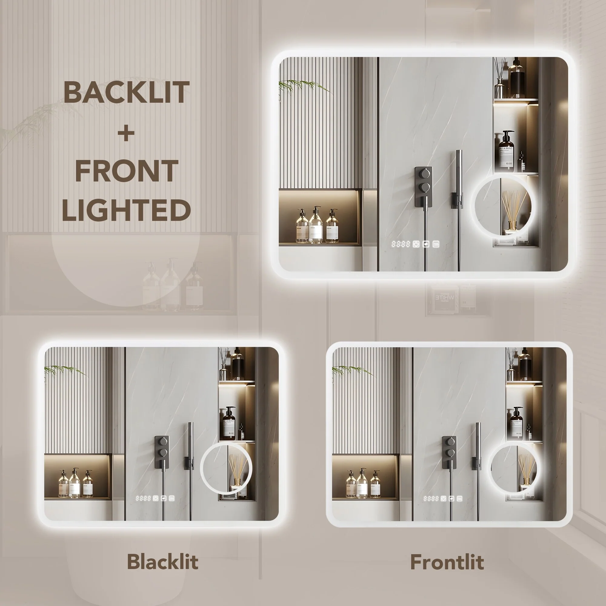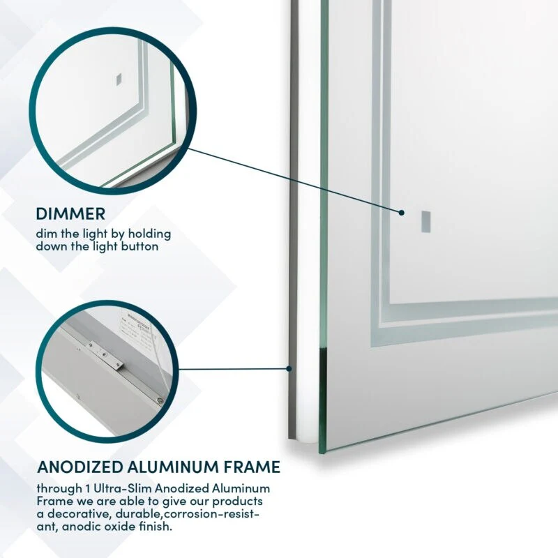 Rectangular Anti-Fog Bathroom Mirror with LED Lights �C Sleek & Stylish Design