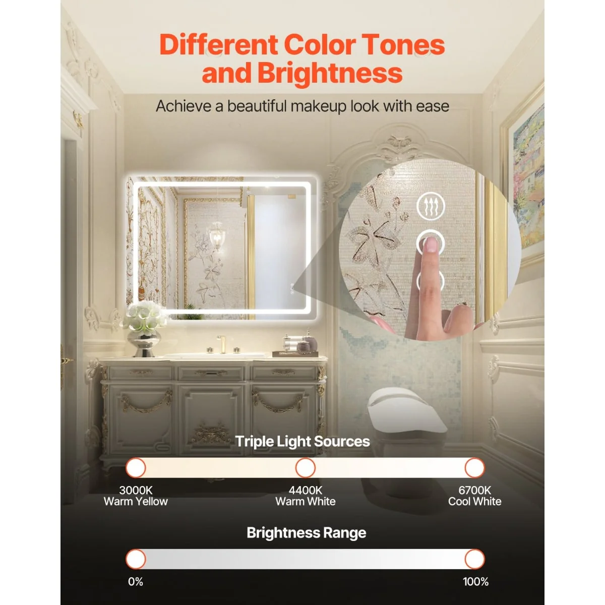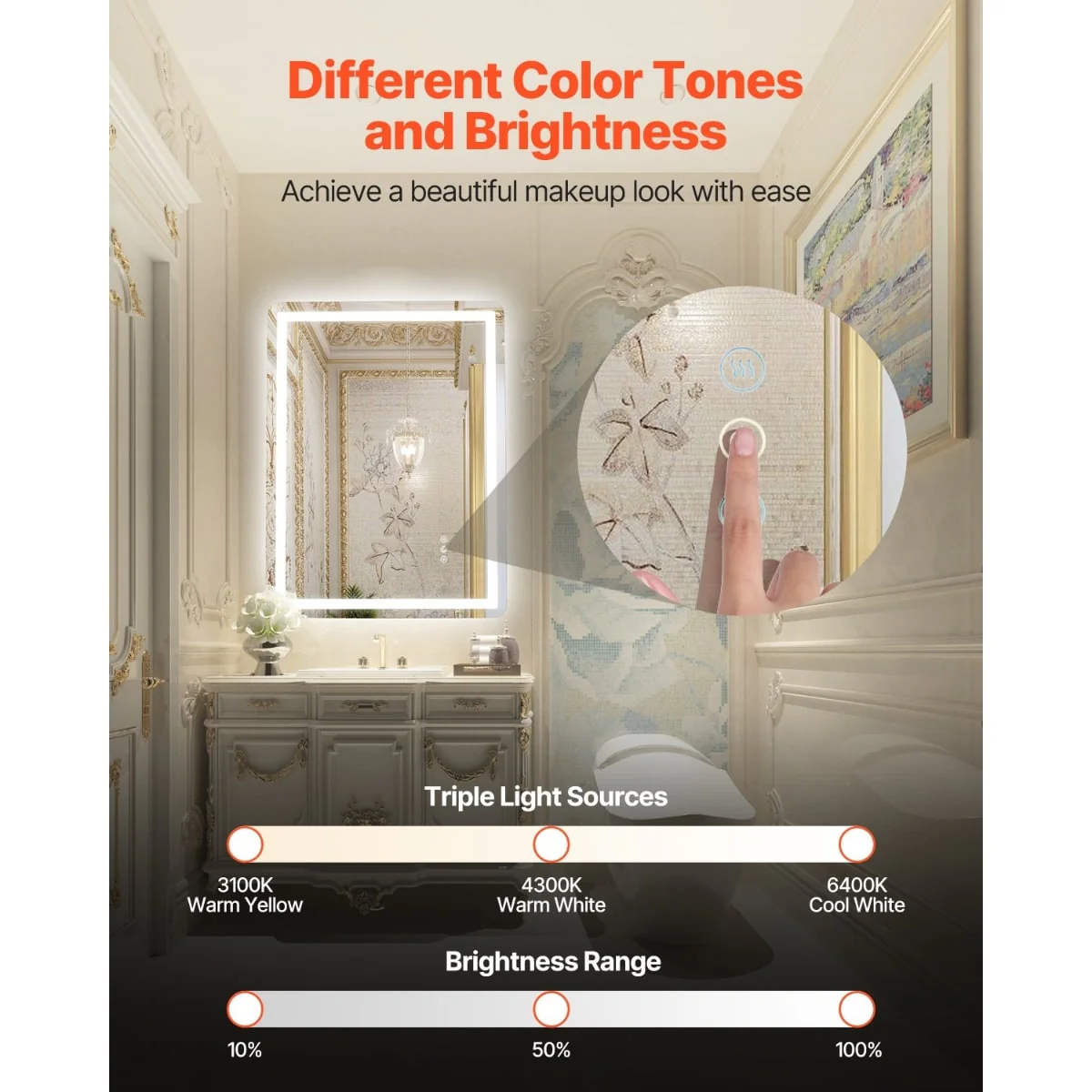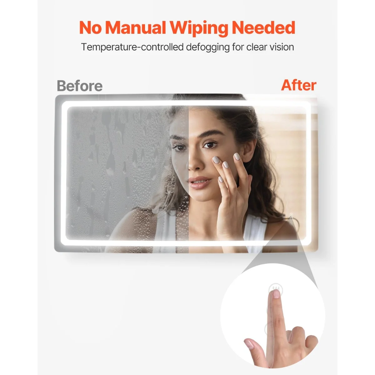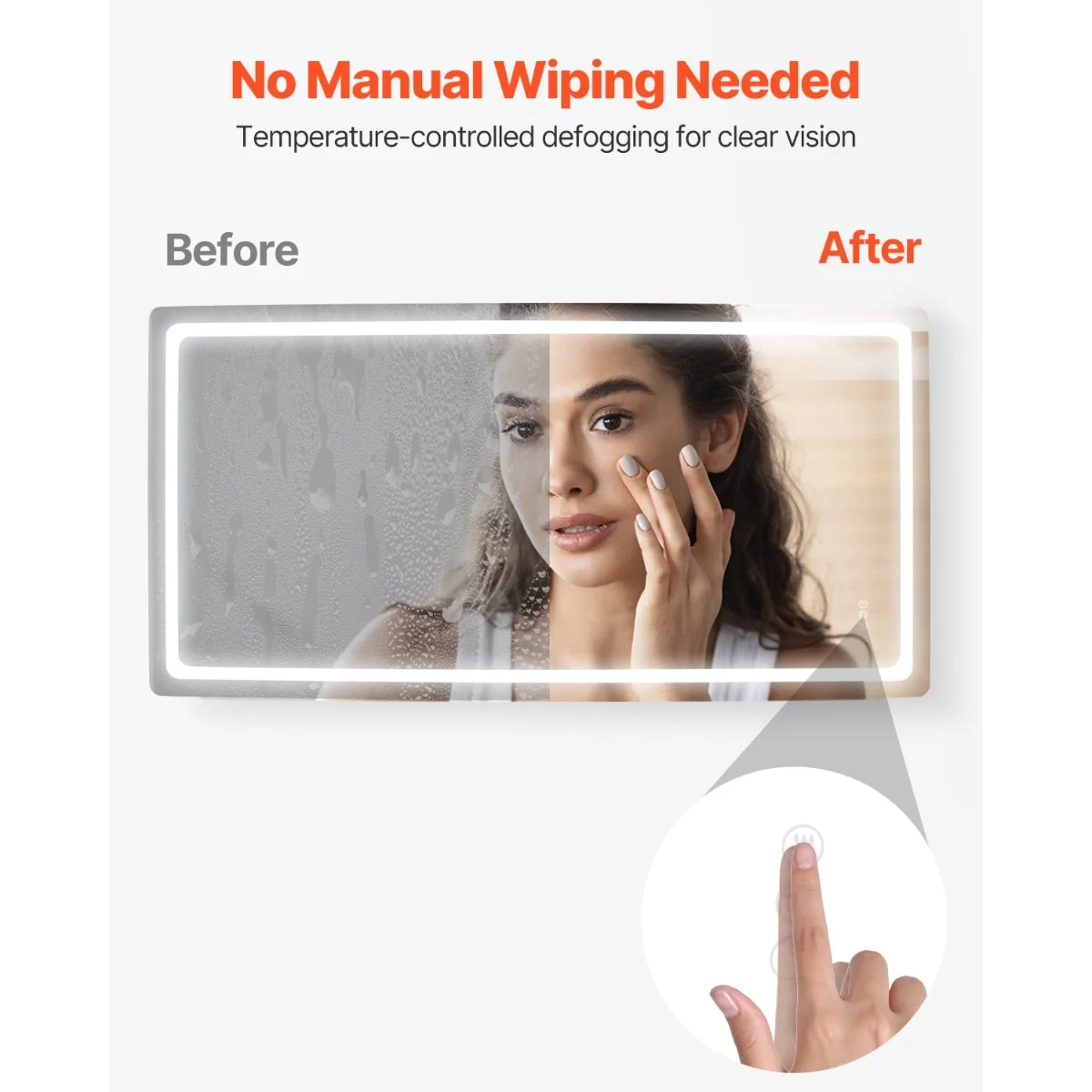 LED Bathroom Mirror Wall Mounted with Anti-Fog & Dimmable Lighting