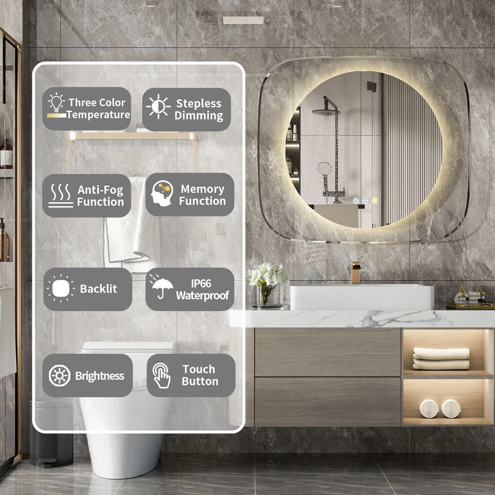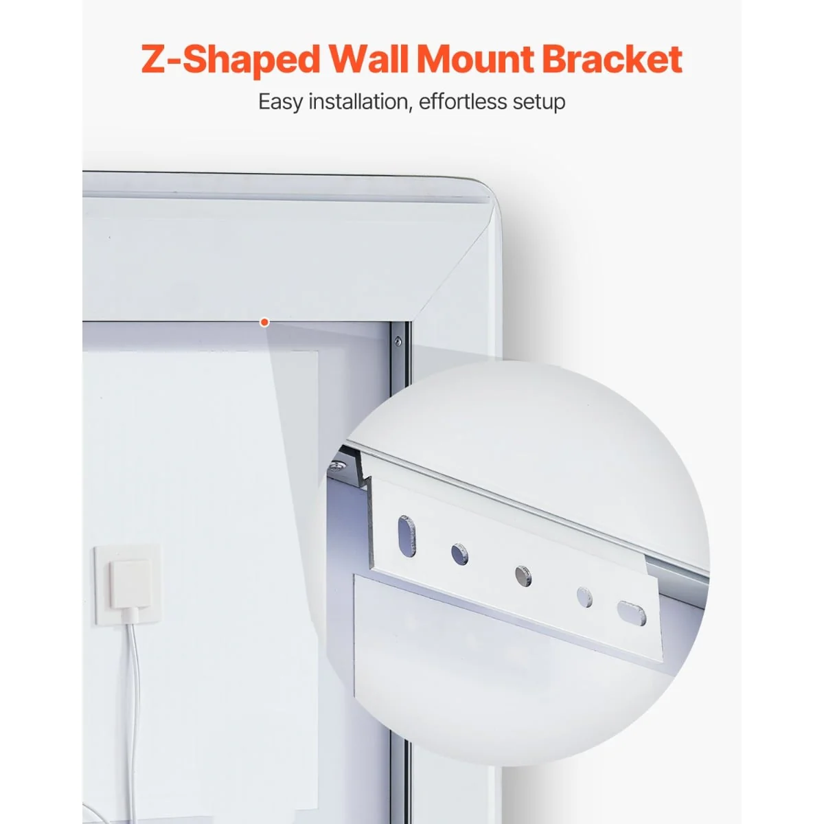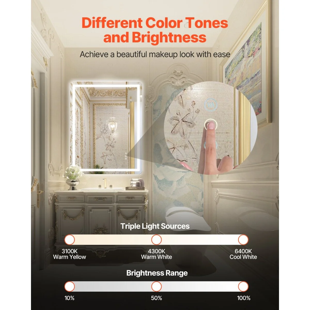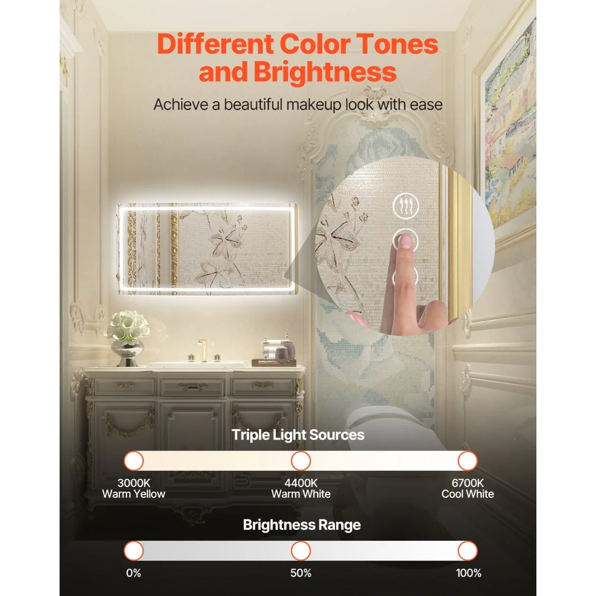LED Bathroom Mirror Wall Mounted with Anti-Fog & Dimmable Lighting