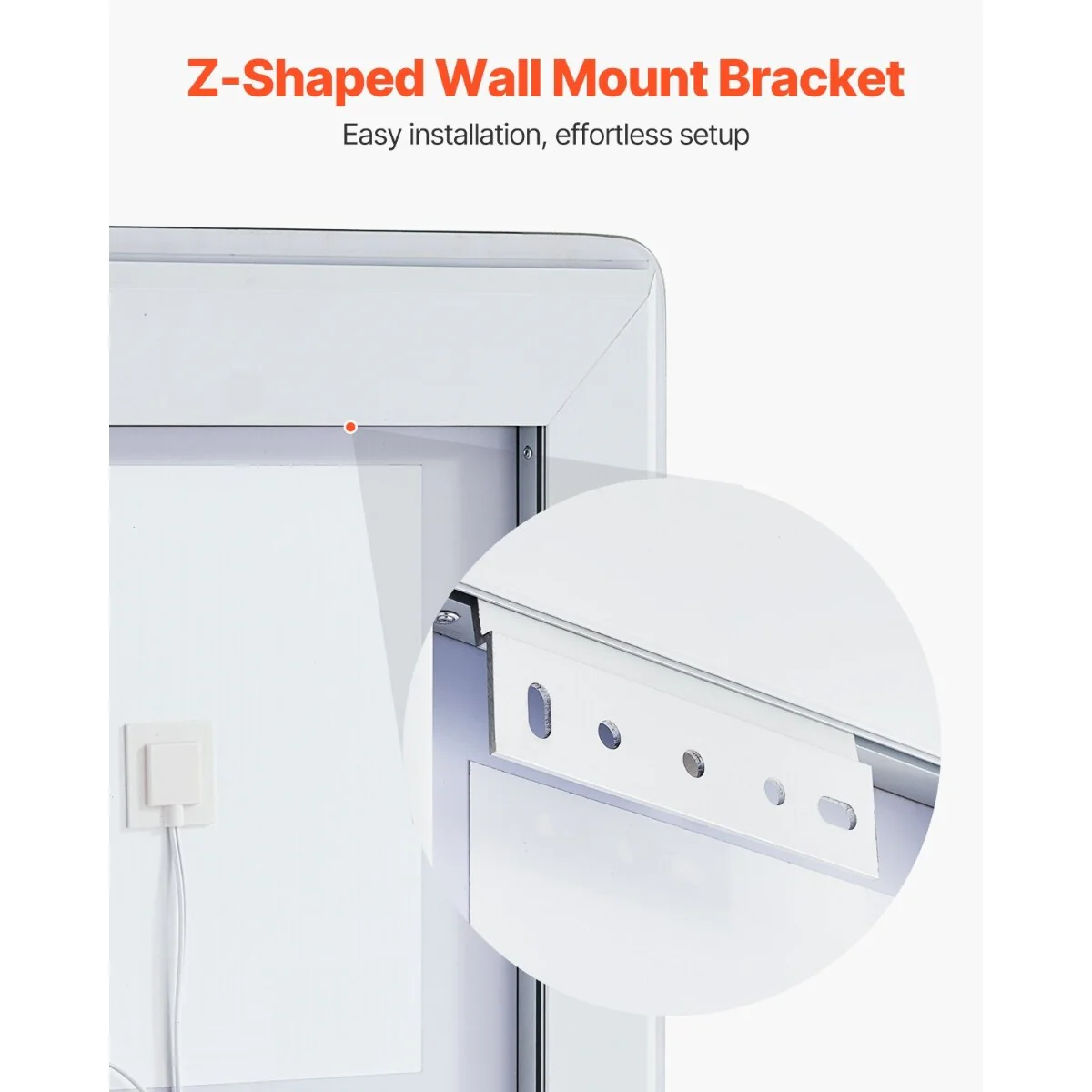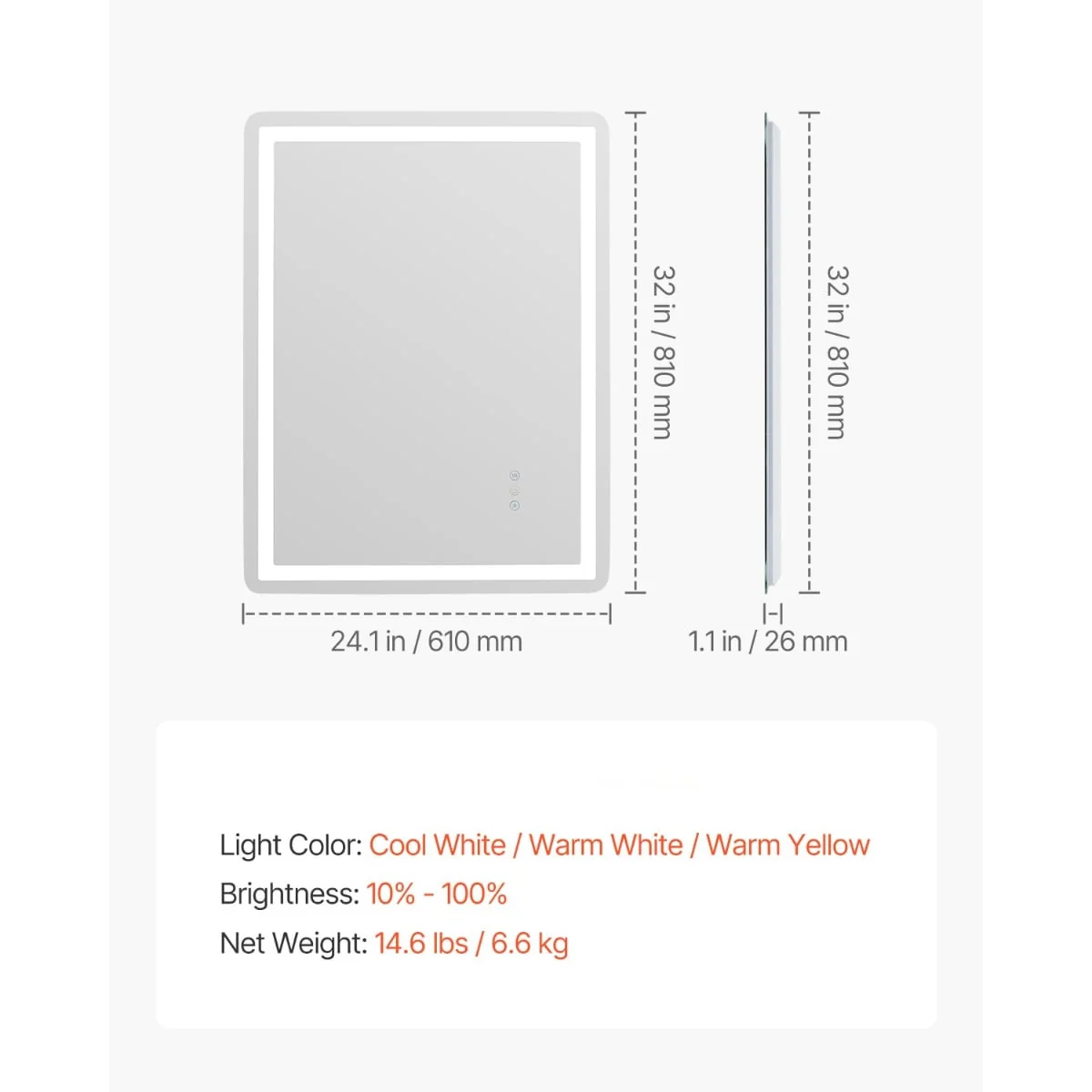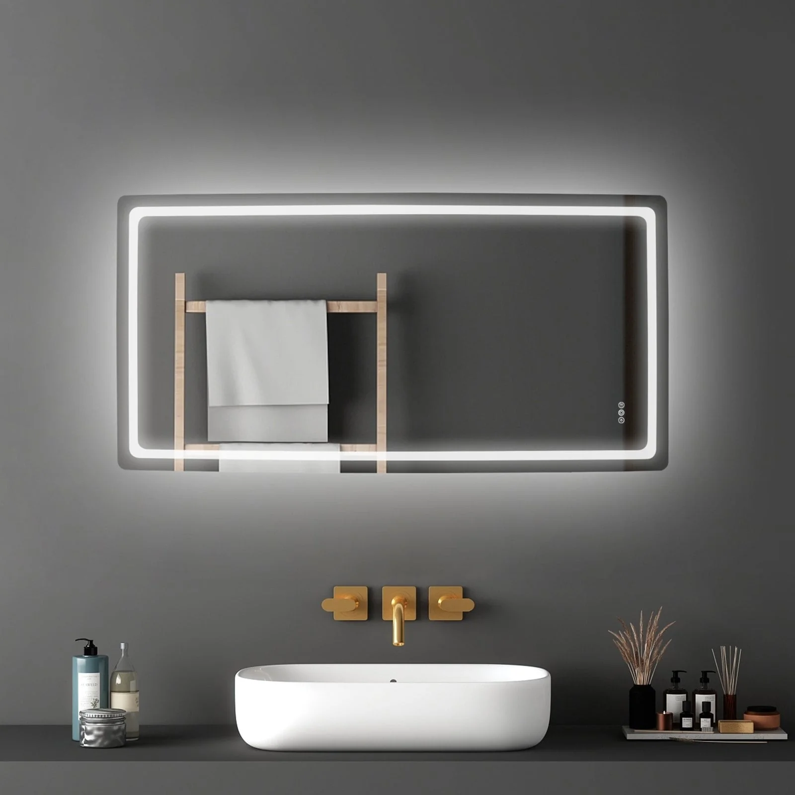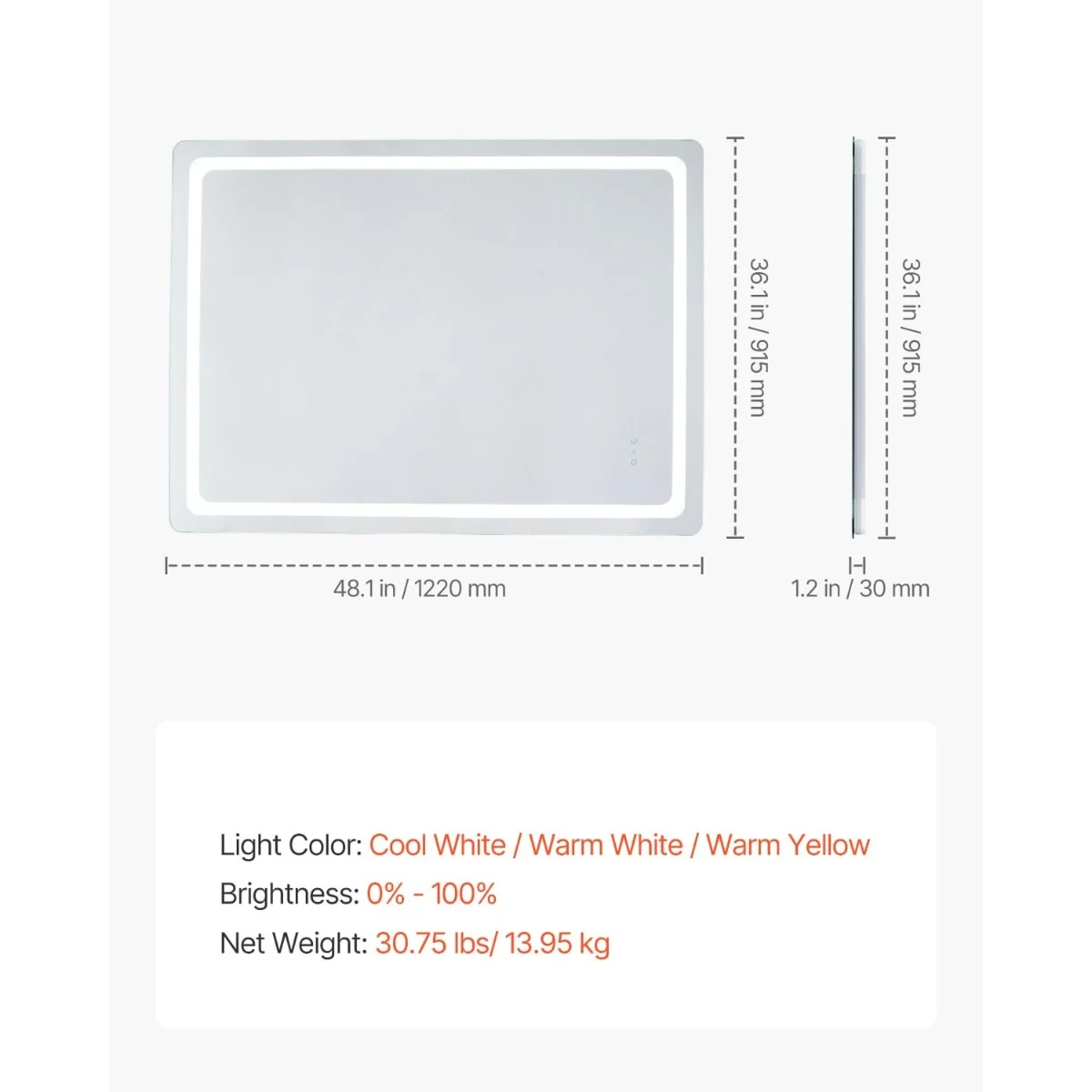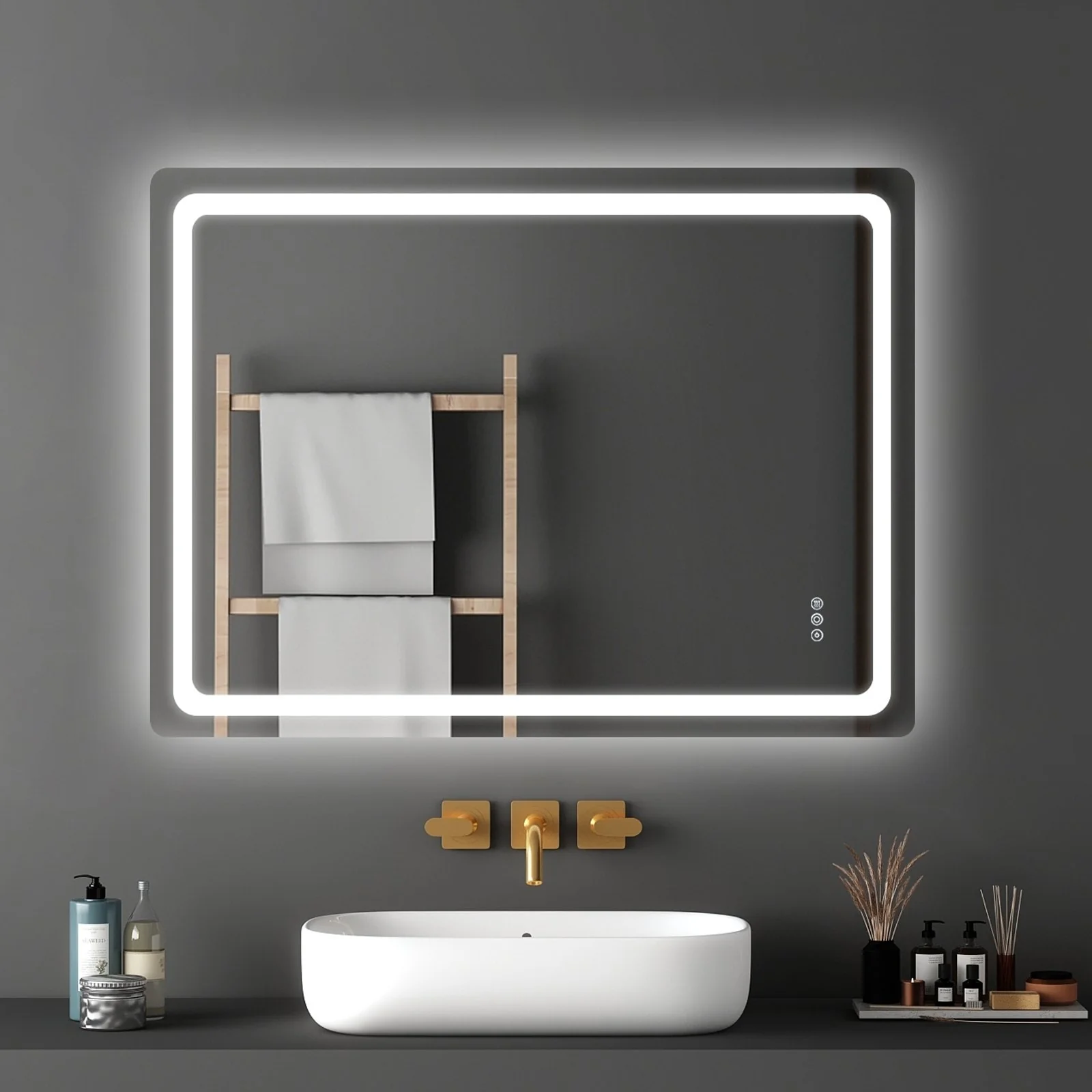 LED Bathroom Mirror Wall Mounted with Anti-Fog & Dimmable Lighting