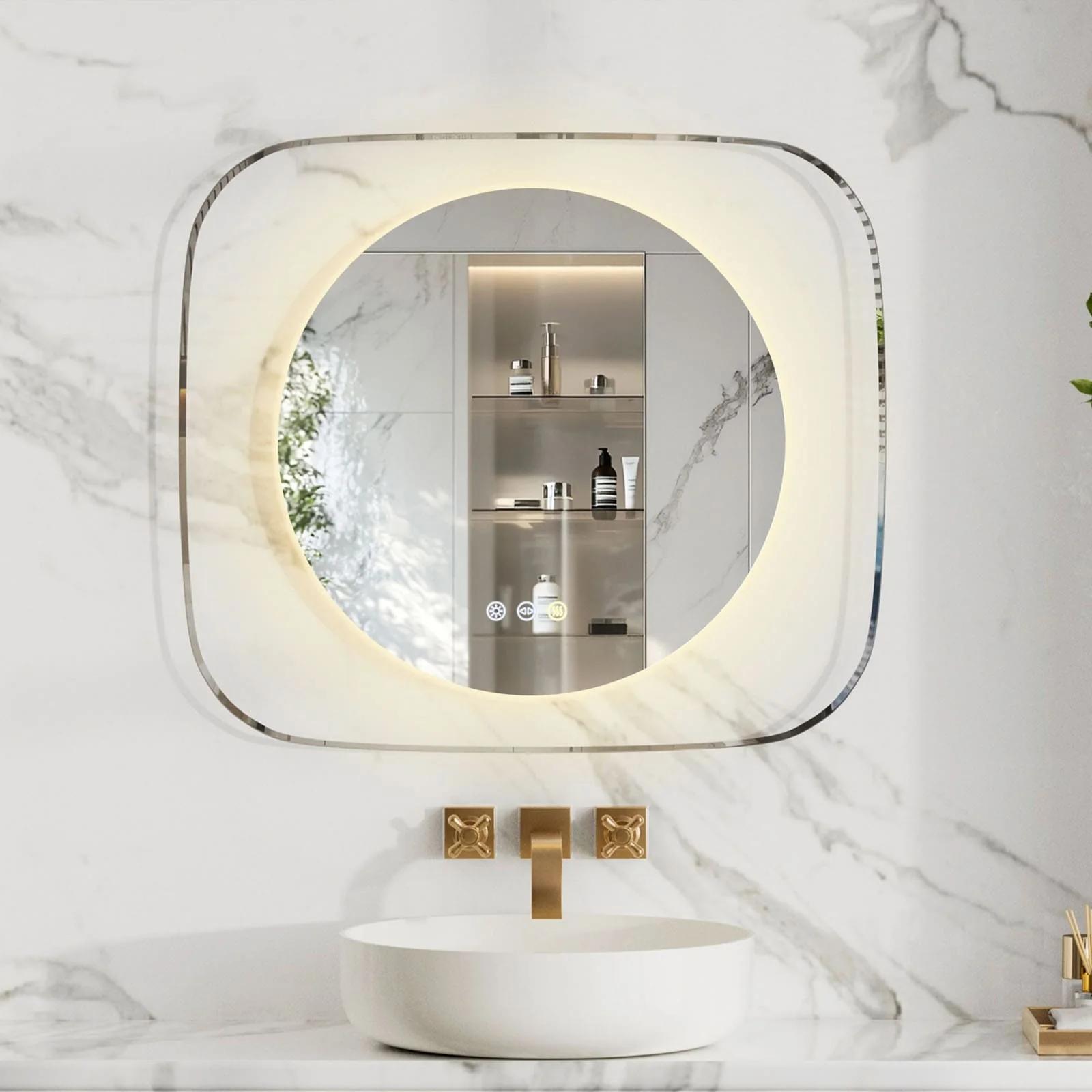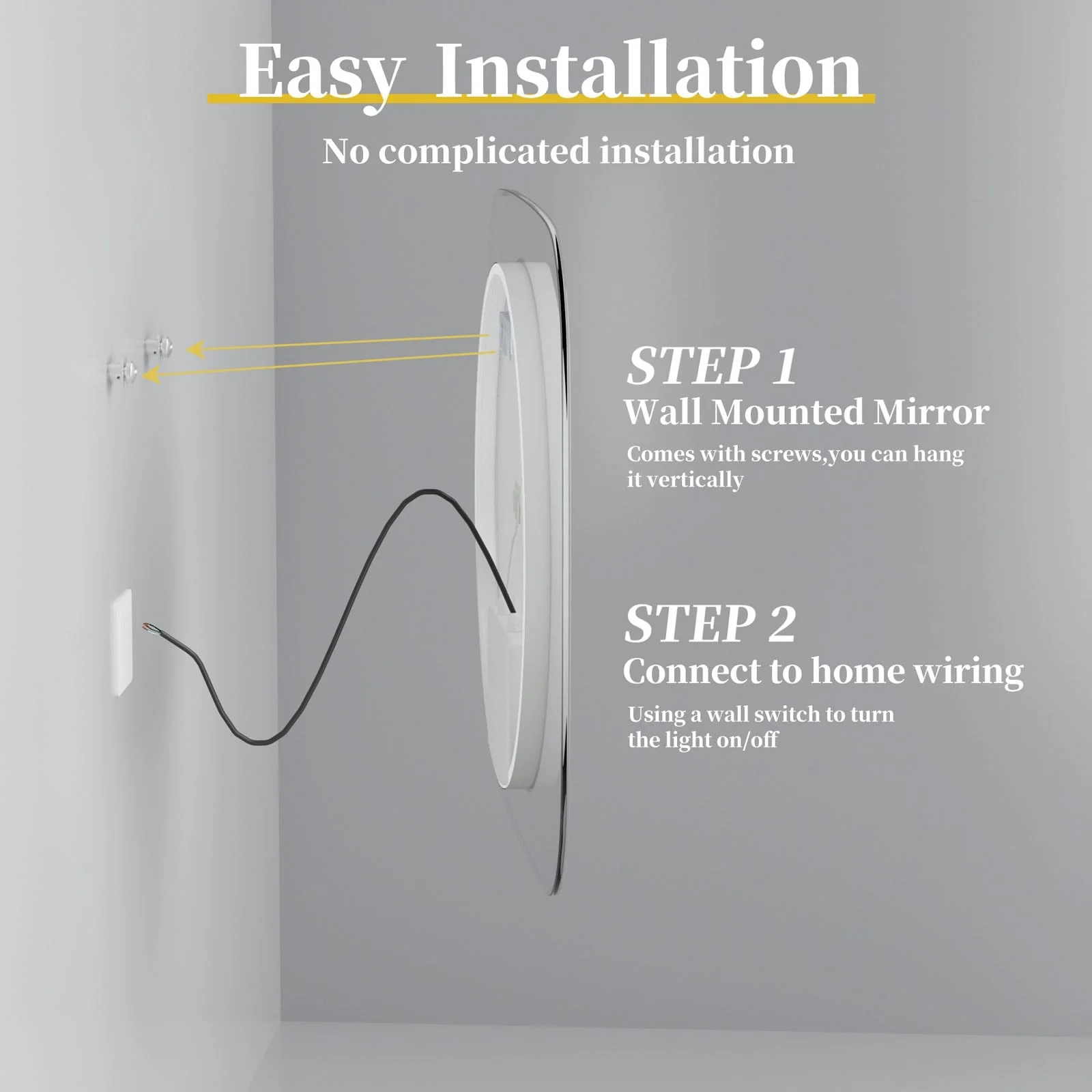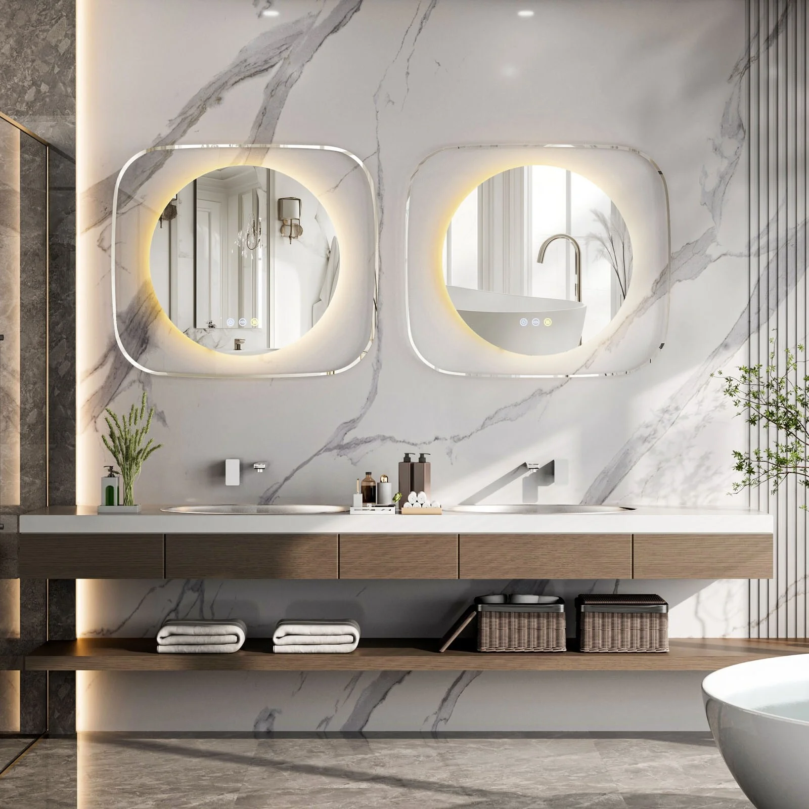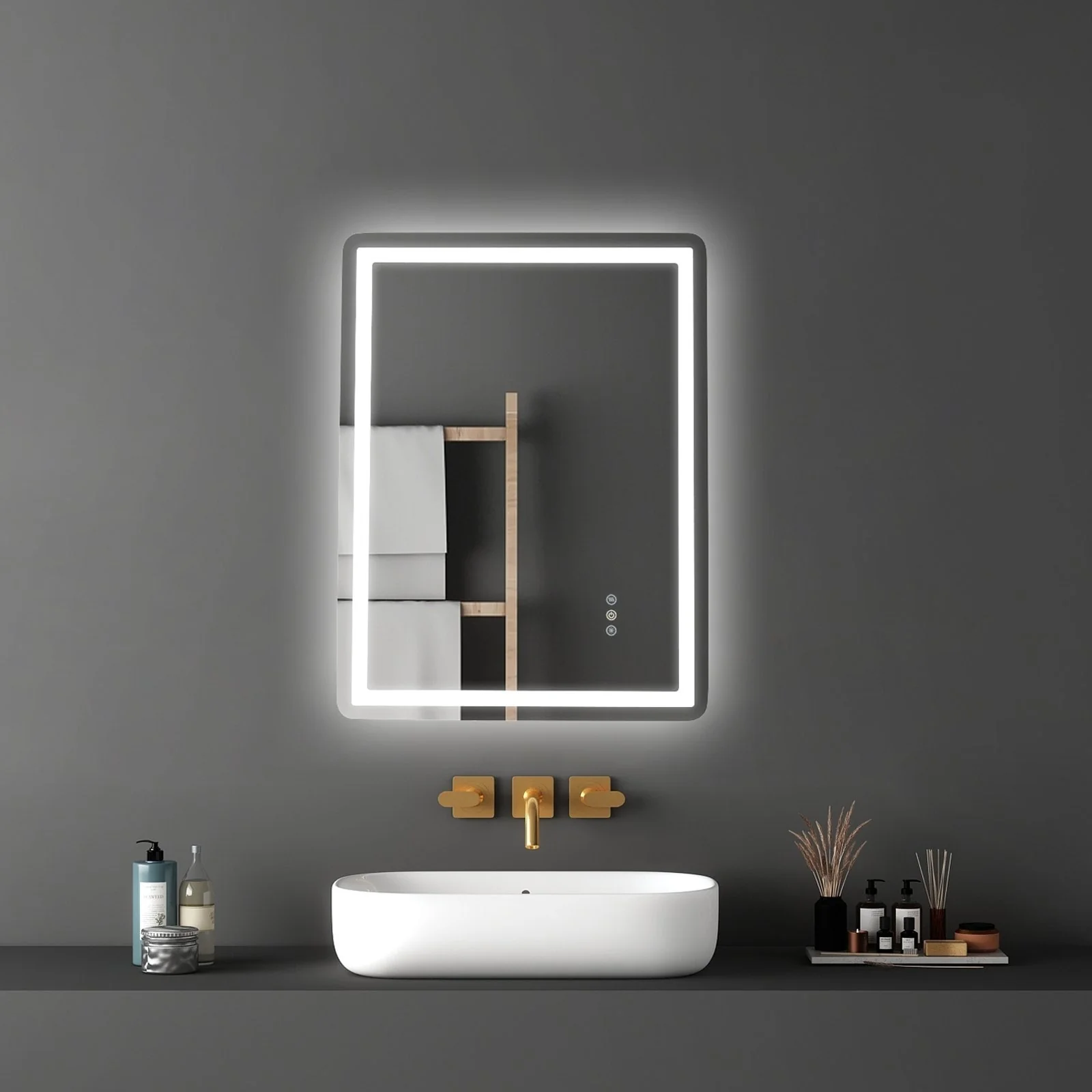 LED Bathroom Mirror Wall Mounted with Anti-Fog & Dimmable Lighting