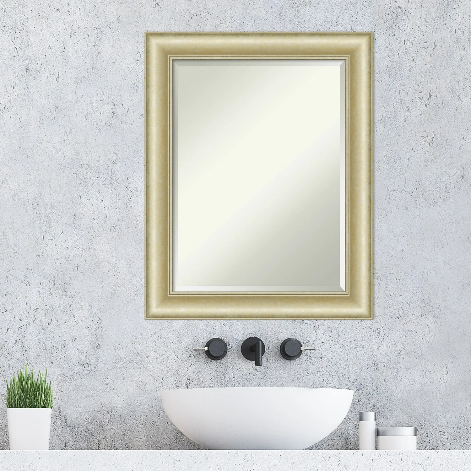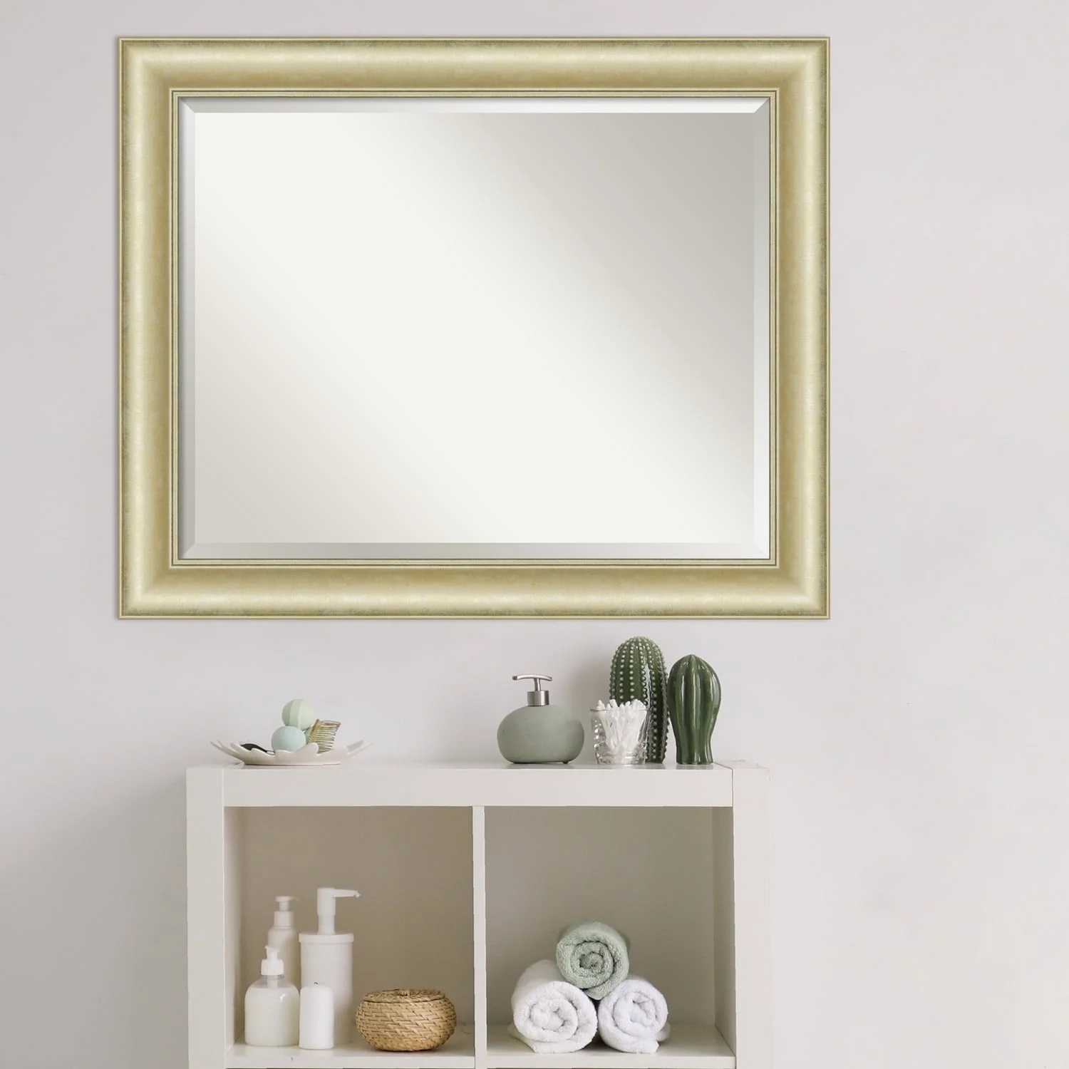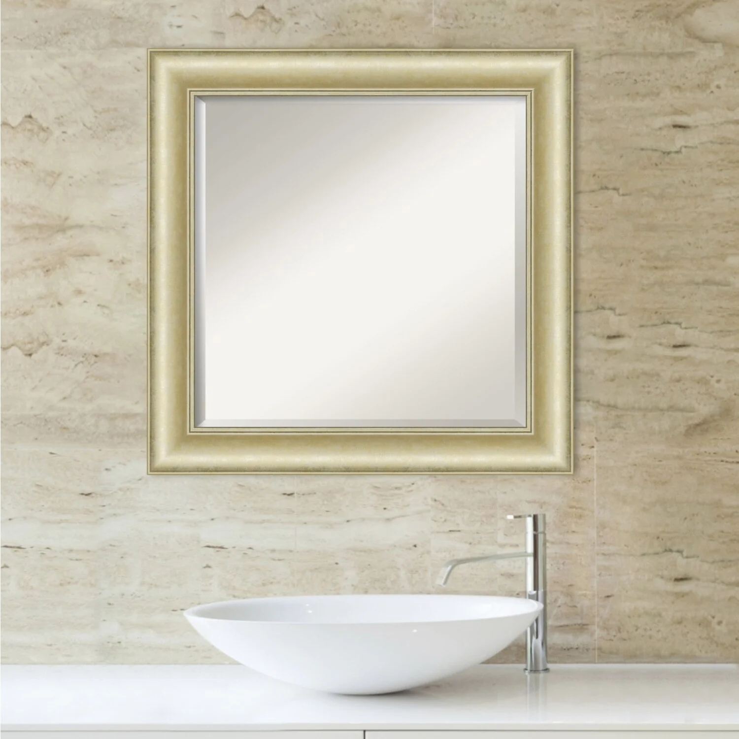 Beveled Bathroom Wall Mirror - Textured Light Gold Frame