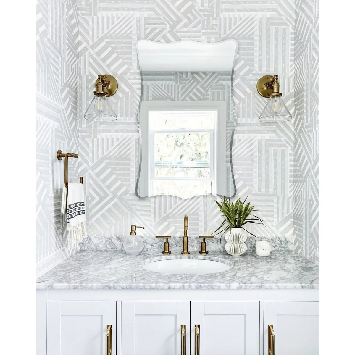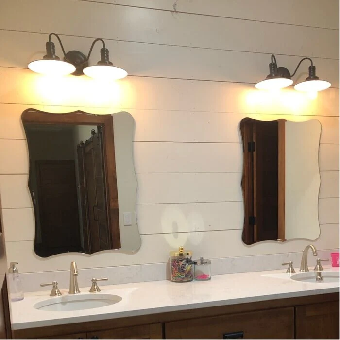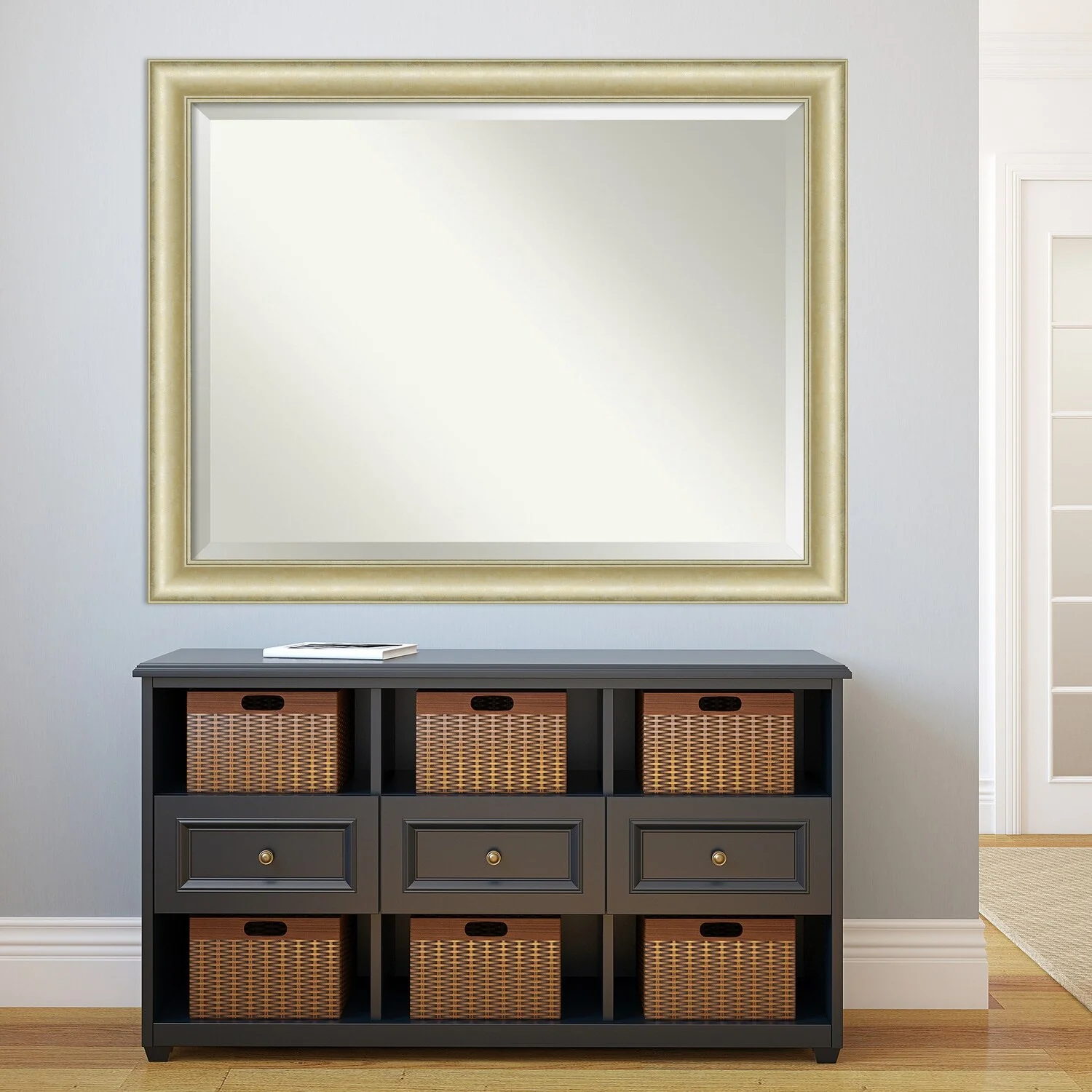 Beveled Bathroom Wall Mirror - Textured Light Gold Frame