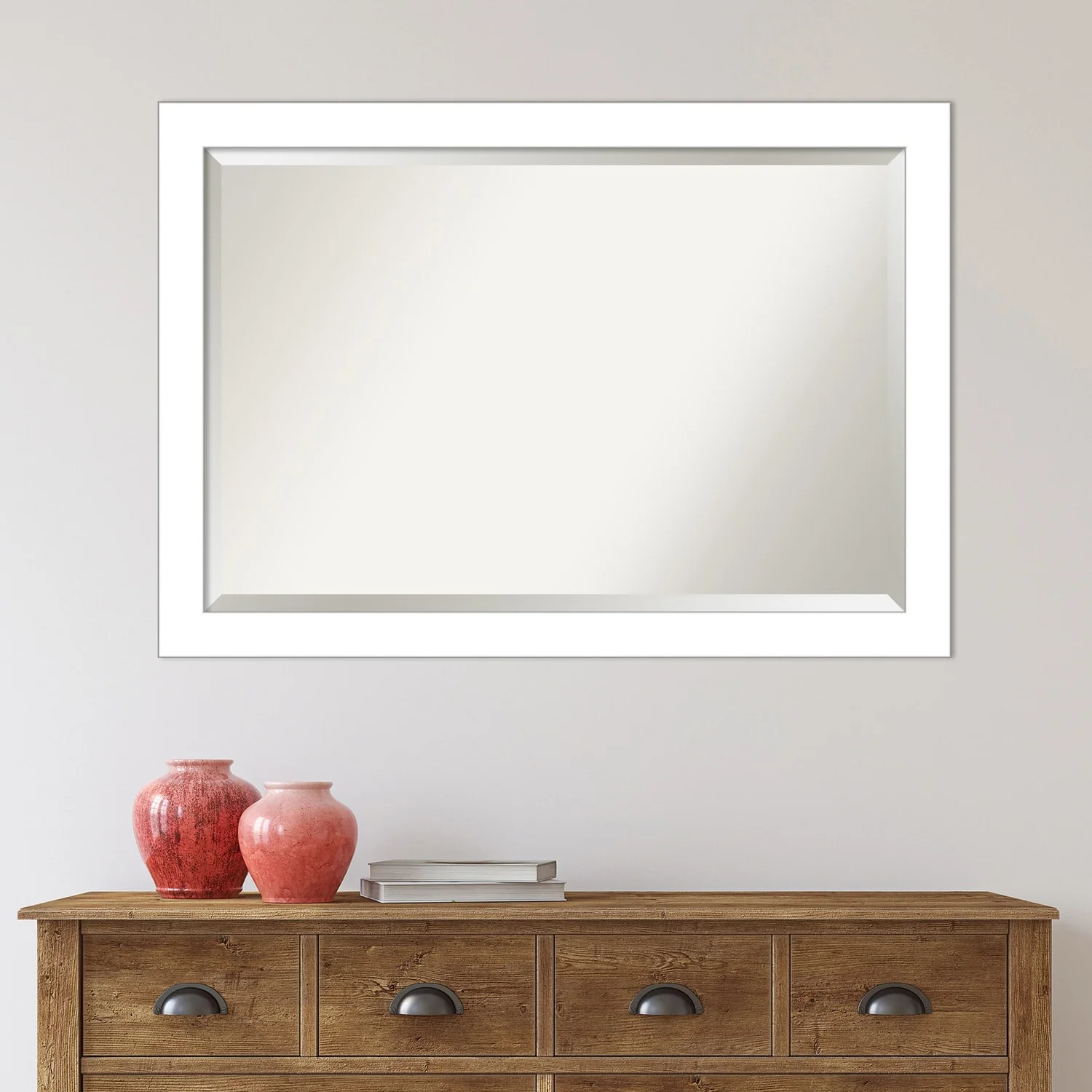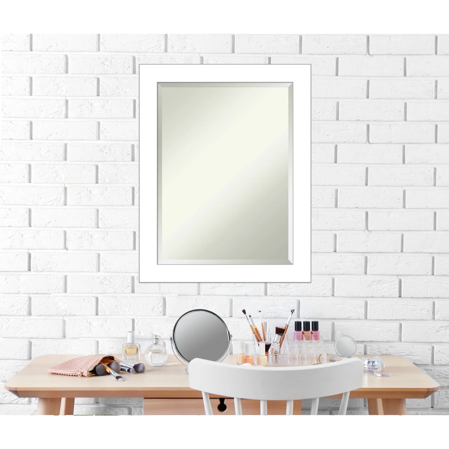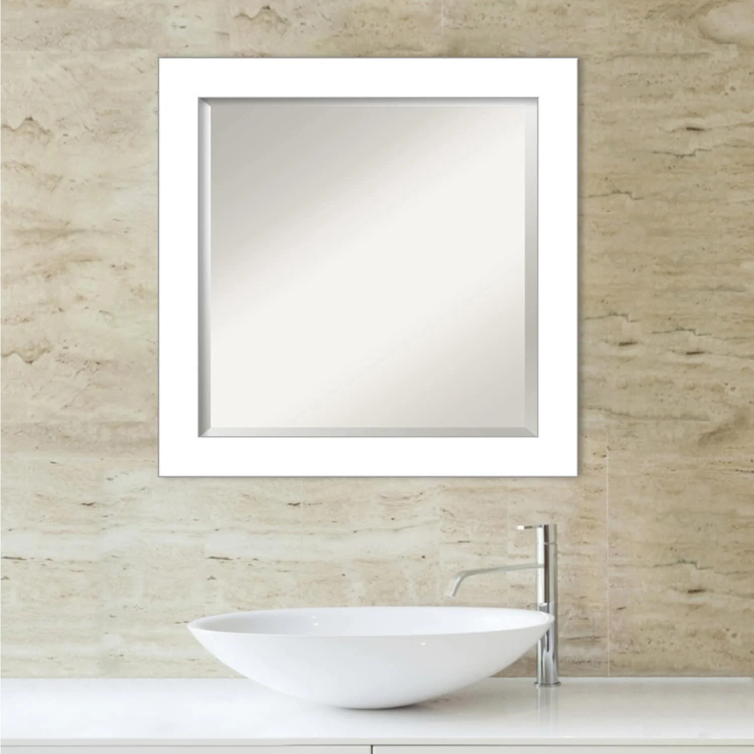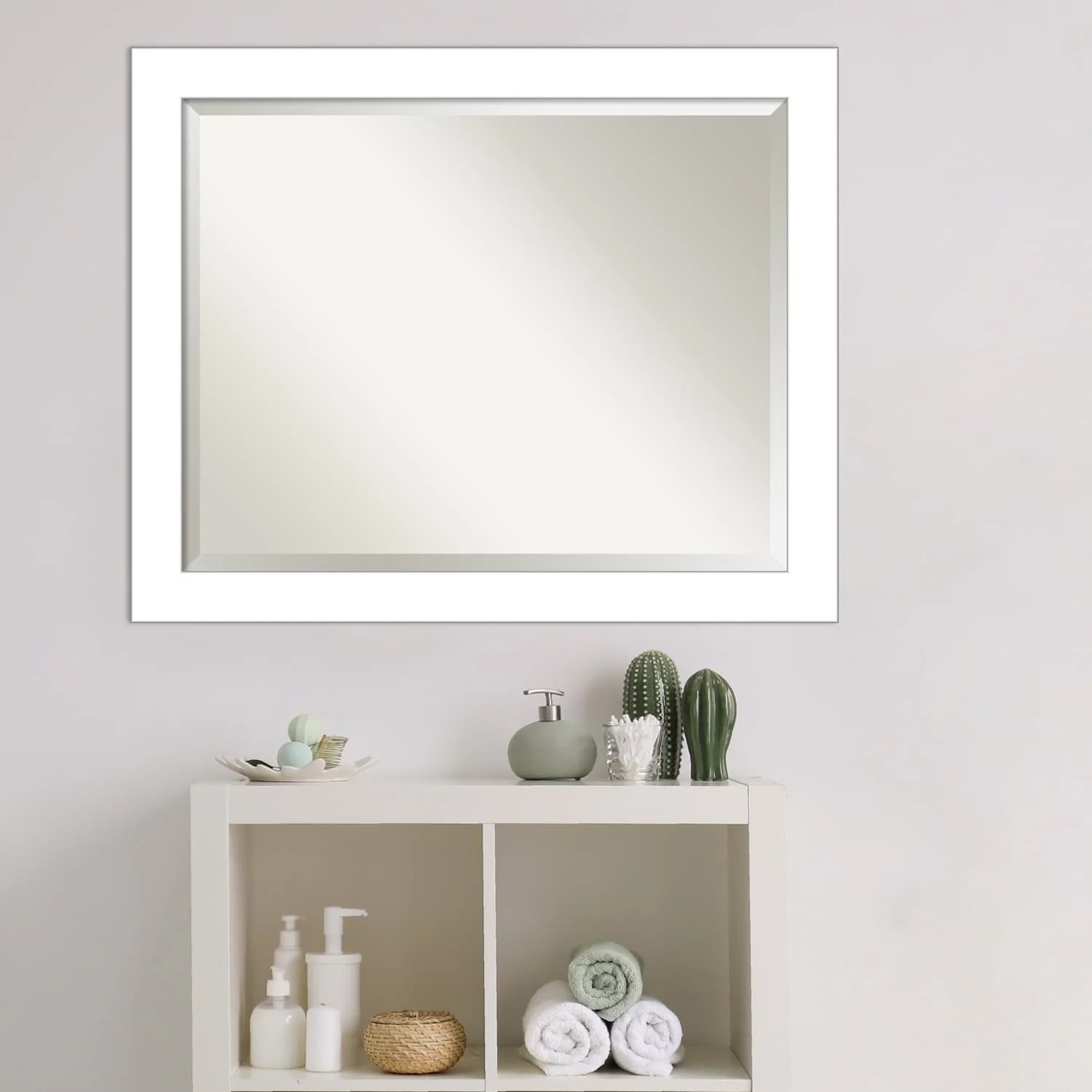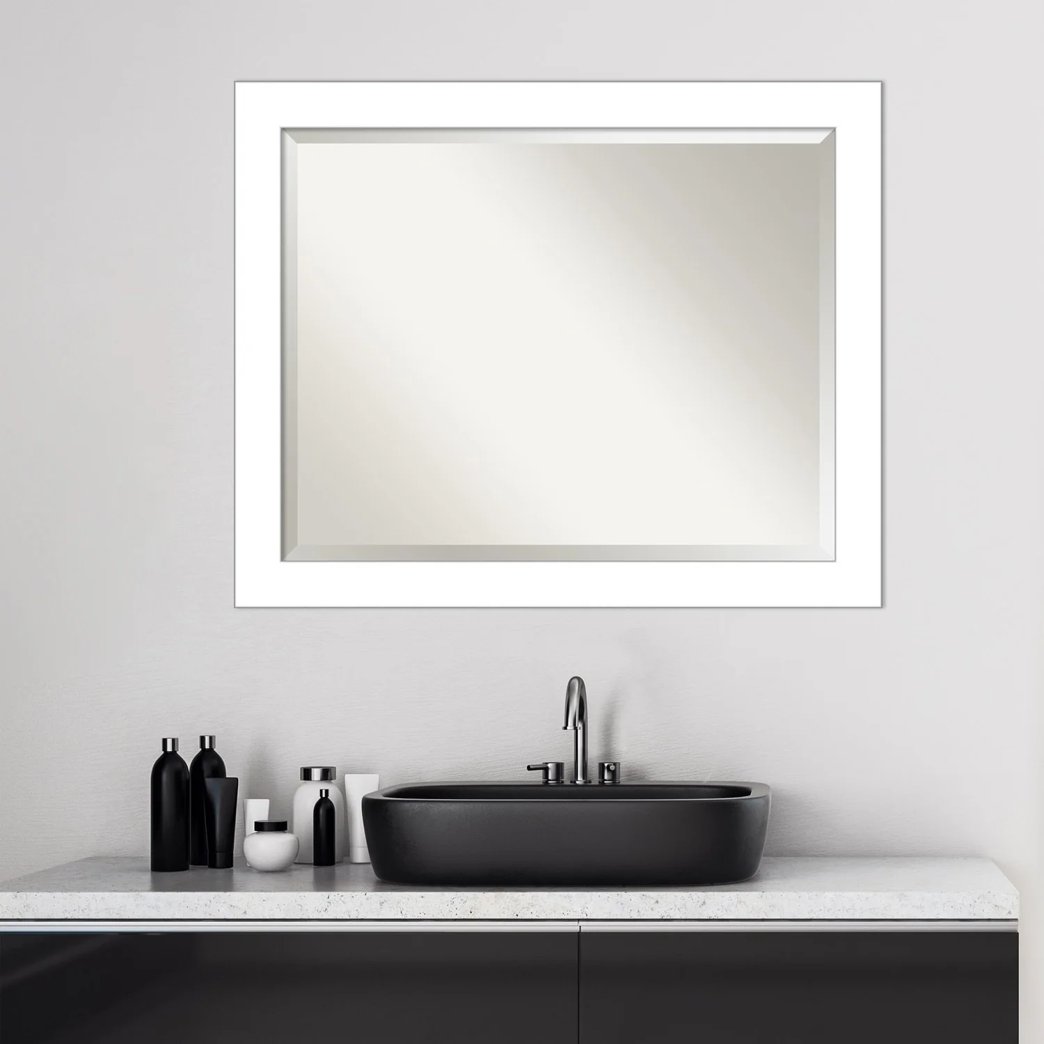 Non-Beveled Bathroom Wall Mirror - Vanity White Narrow Frame
