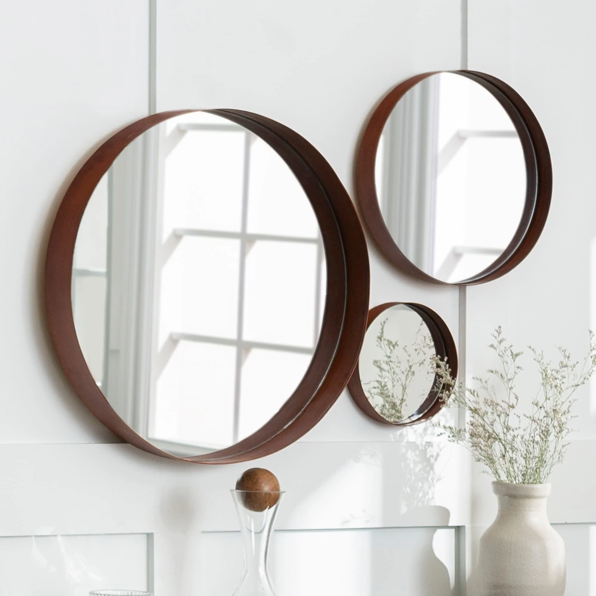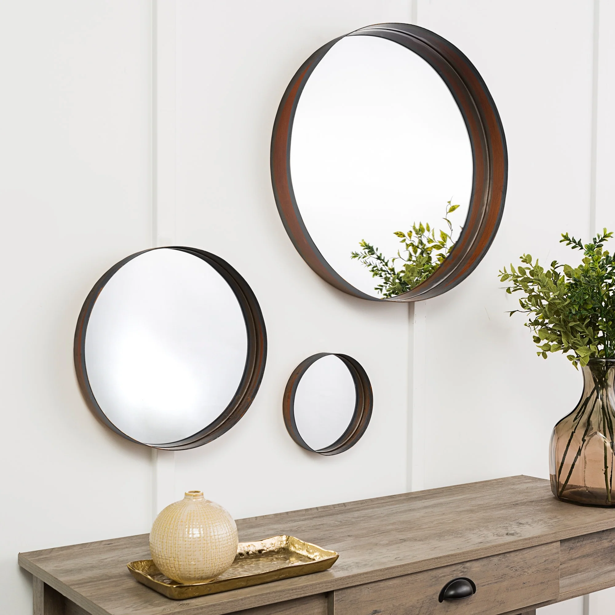 Middlebrook Round Banded Wall Mirrors, set of 3 - Copper