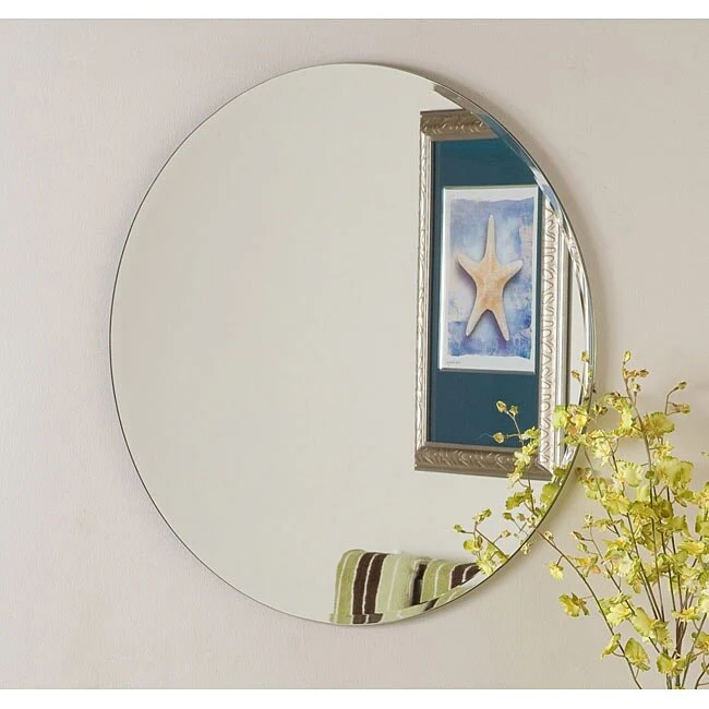 Frameless Round Beveled Wall Bathroom Vanity Mirror 23.6" Dia - 23.6" x 23.6"