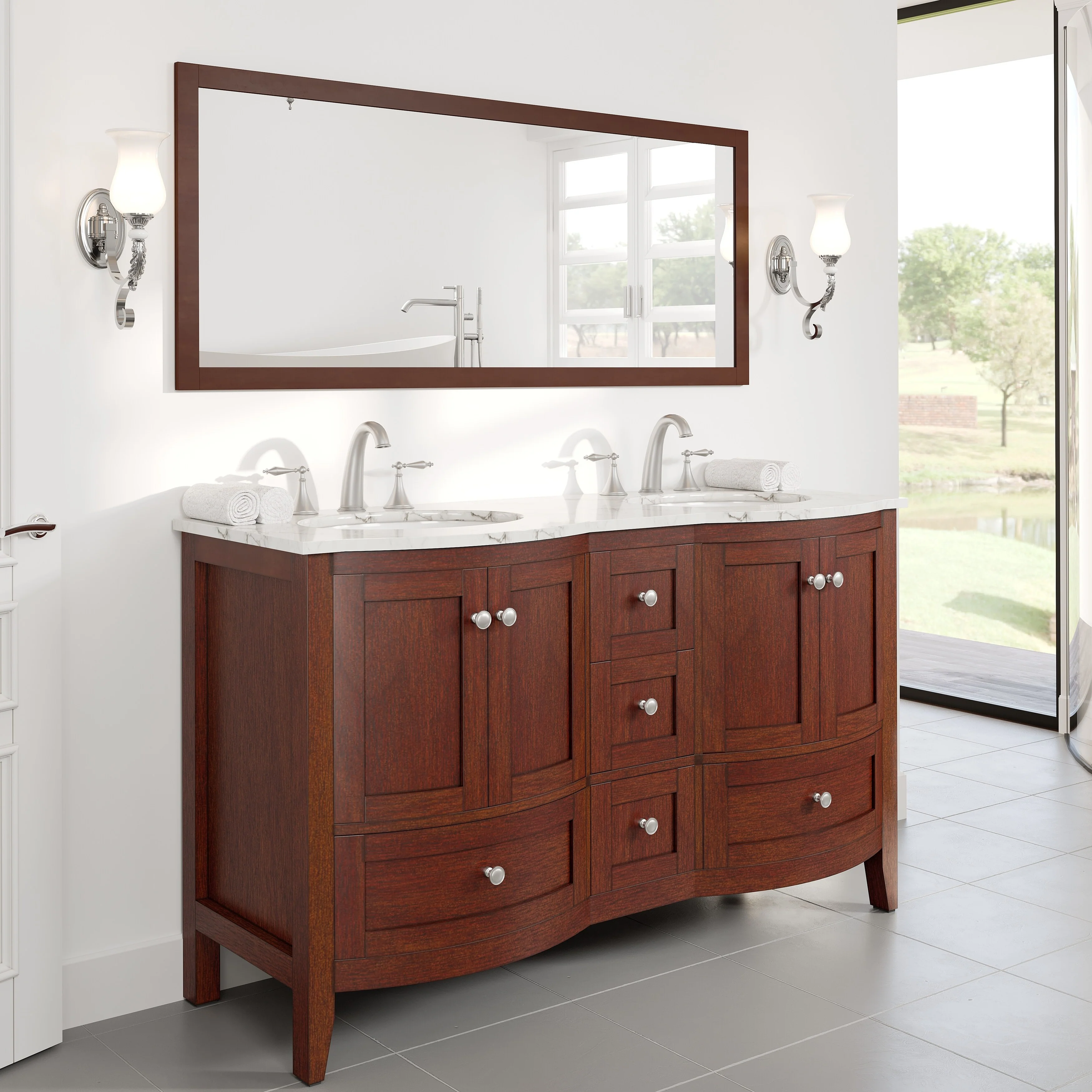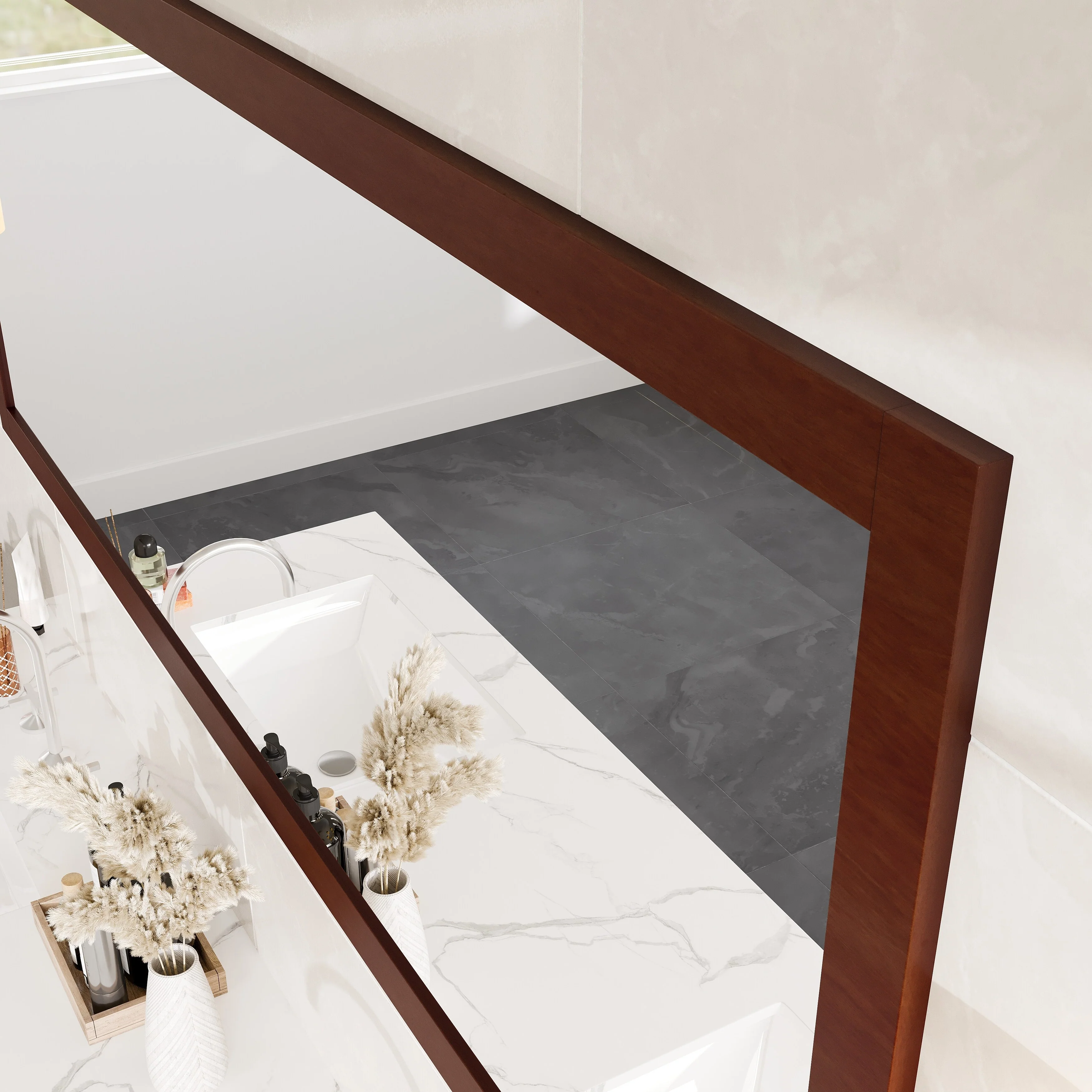 Beveled Bathroom Wall Mirror - Harvard Walnut Frame