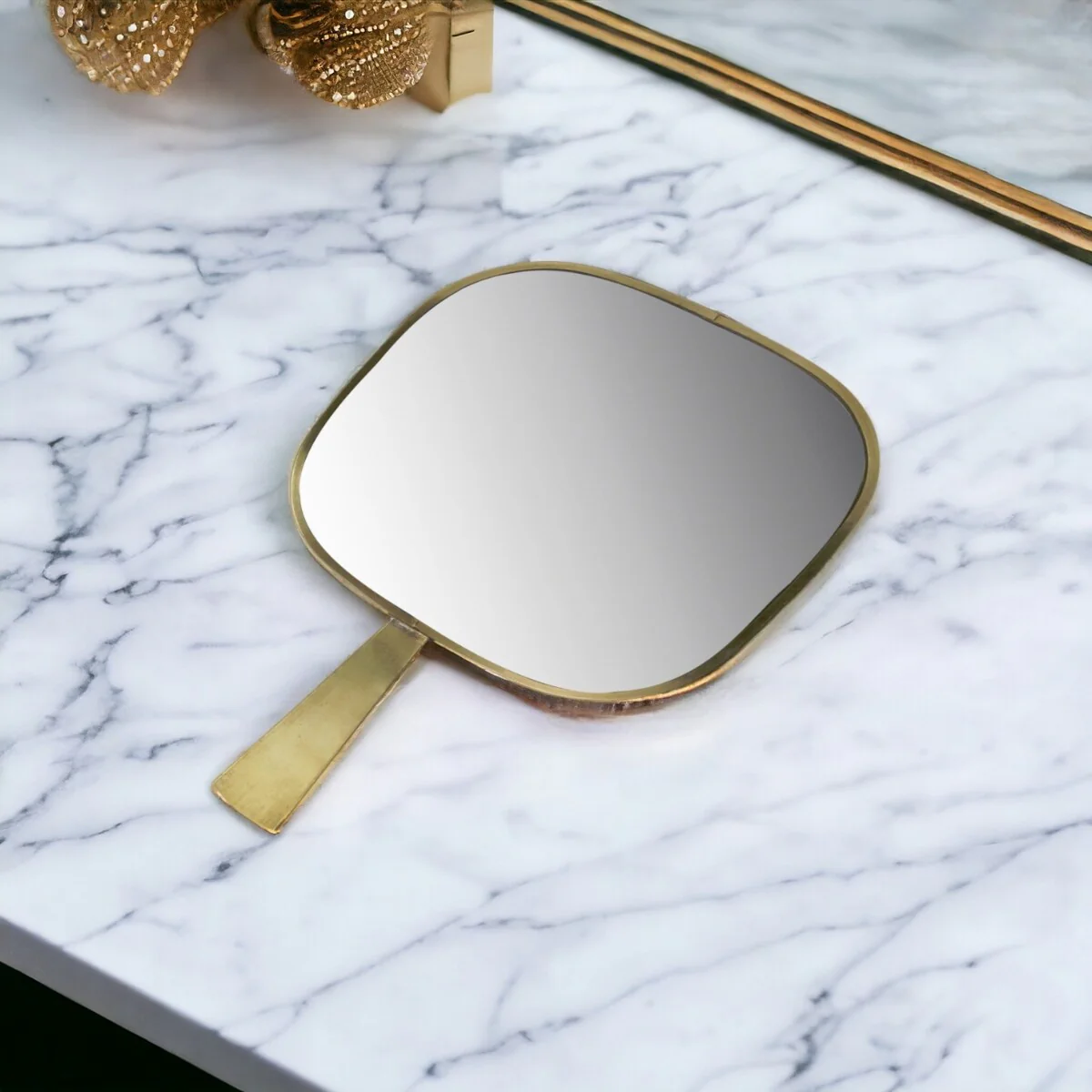 11" Golden Brass Handheld Mirror with Square Frame Modern Design Vanity Mirror for Bedroom Decor - 10.8��H x 7��W x 0.25��D
