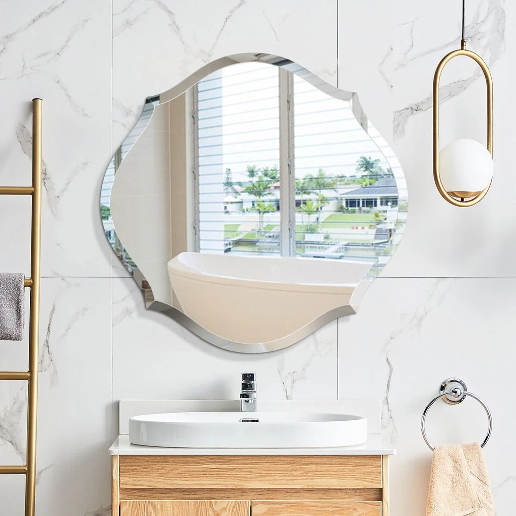 Beveled Metal Framed Bathroom Vanity Mirrors Tempered Glass Decorative Wall Mirror