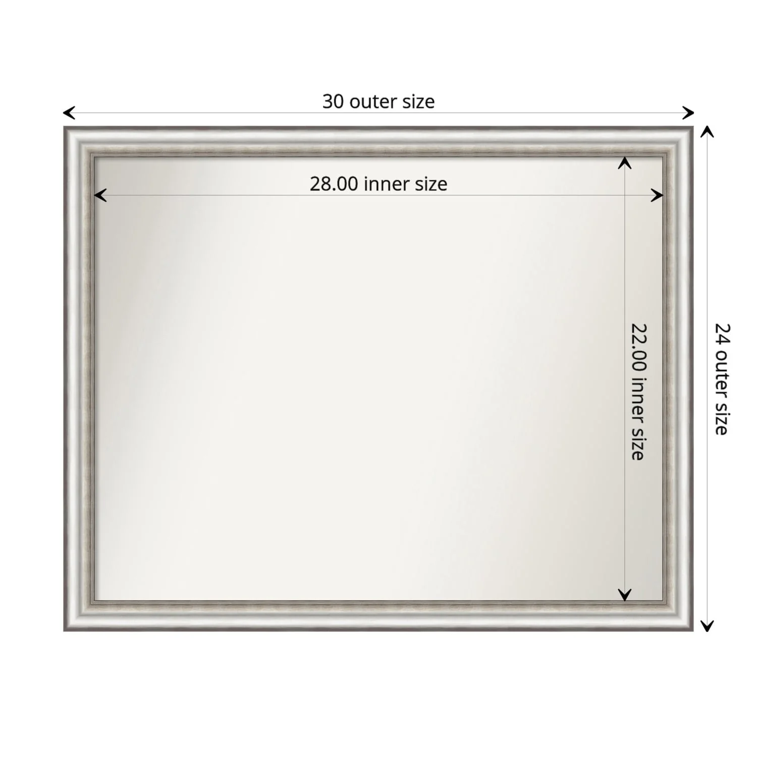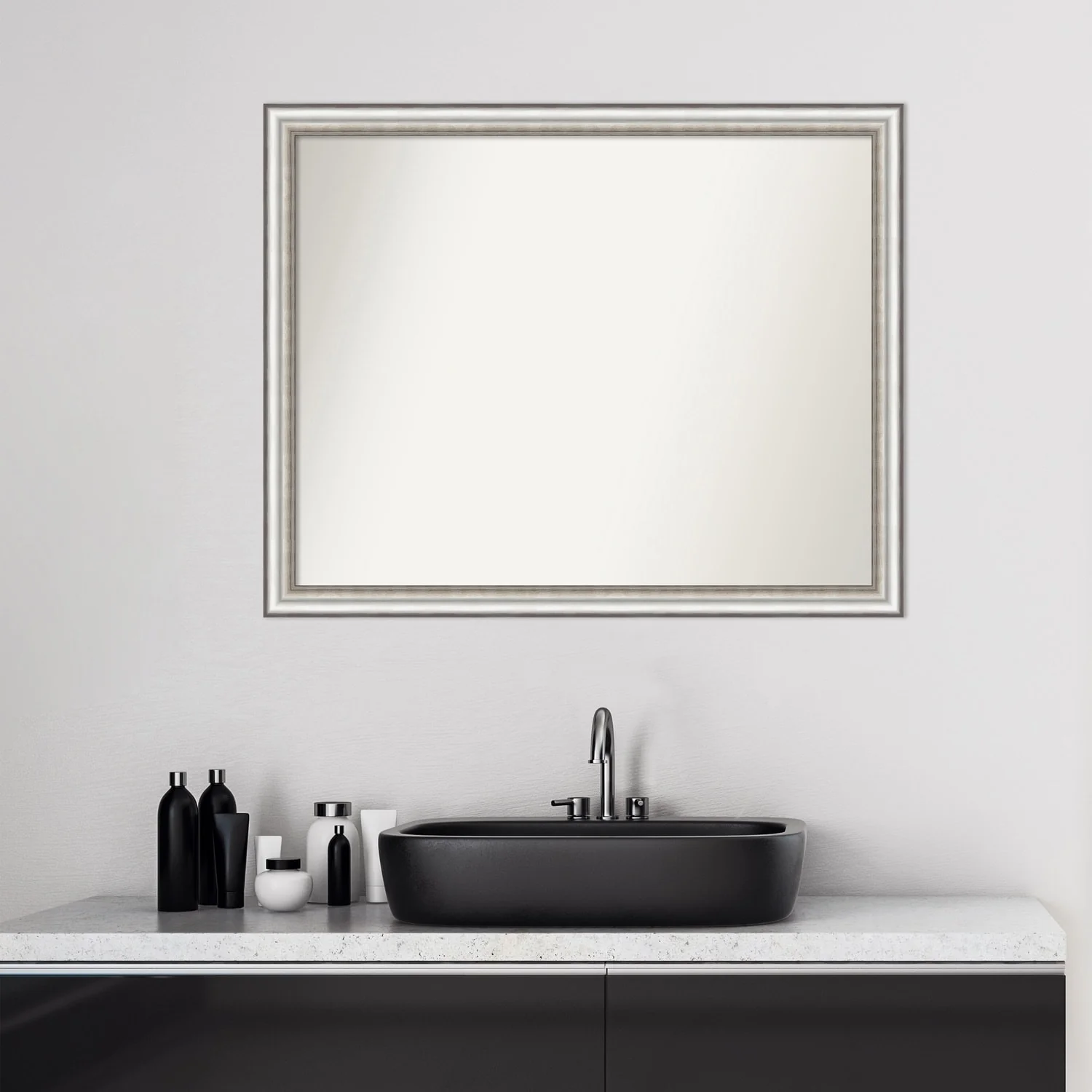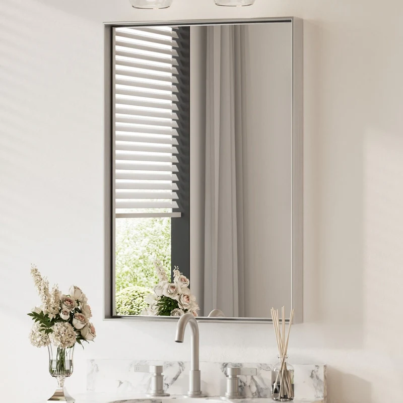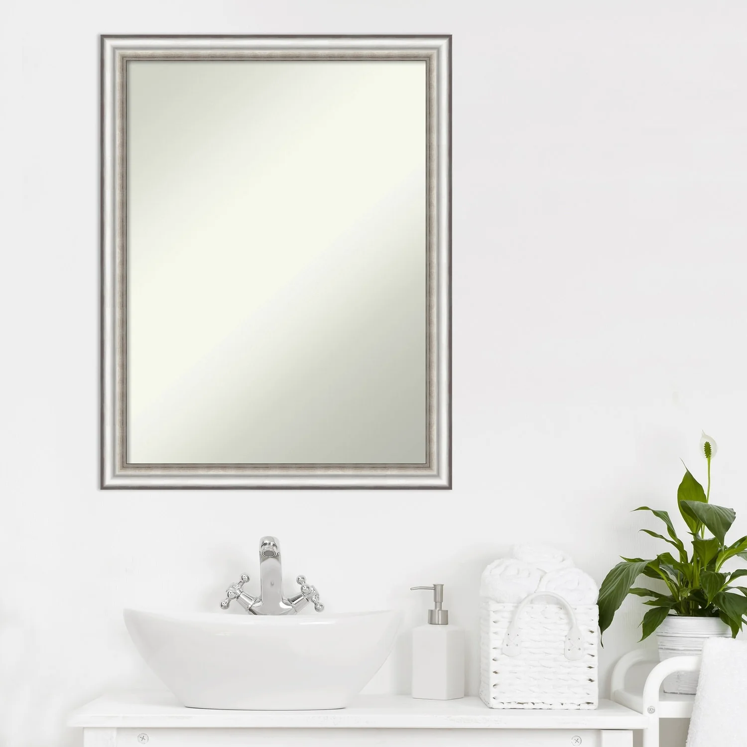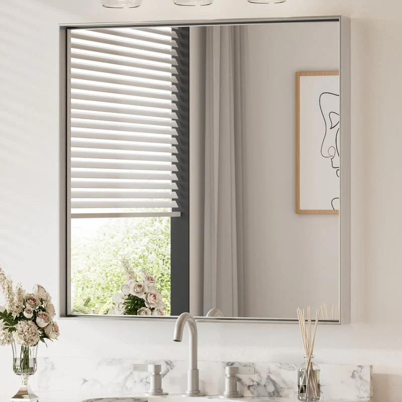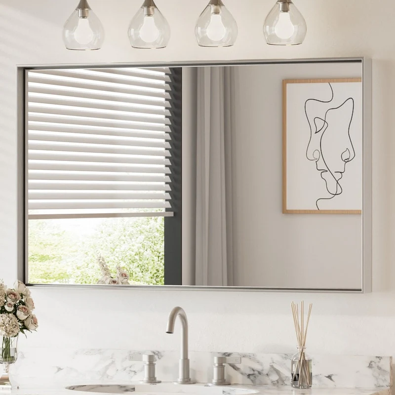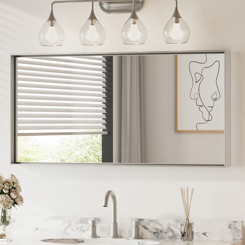 Non-Beveled Bathroom Wall Mirror - Salon Silver Narrow Frame - Salon Silver Narrow