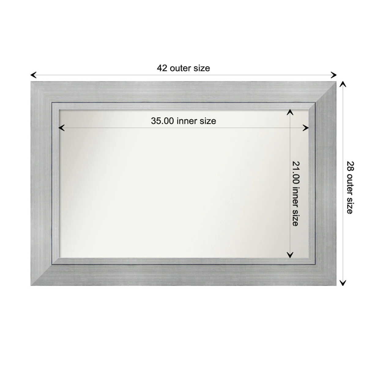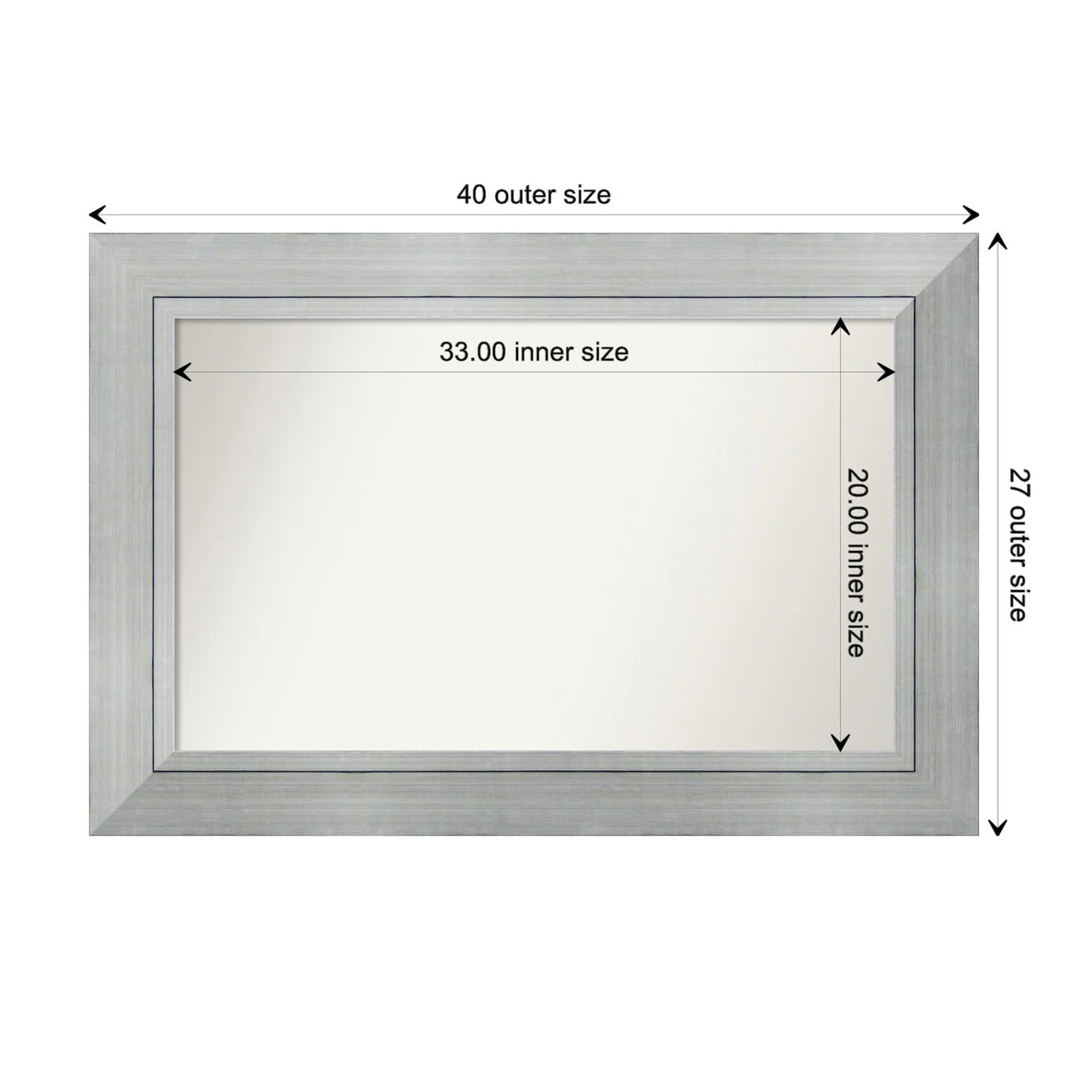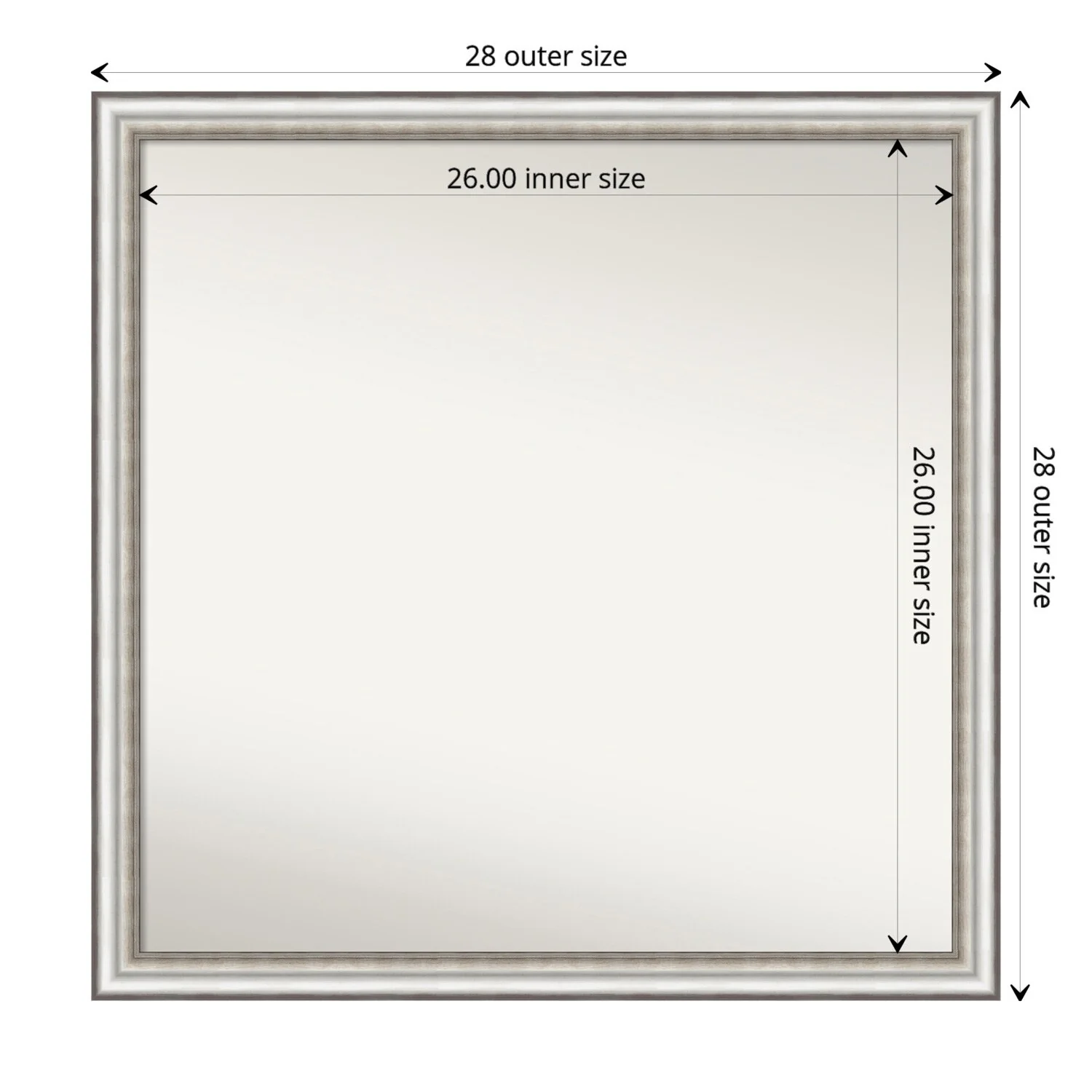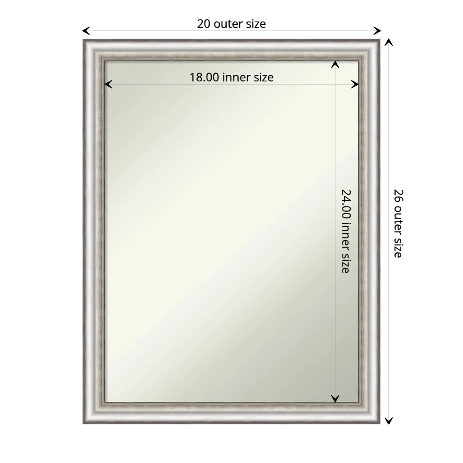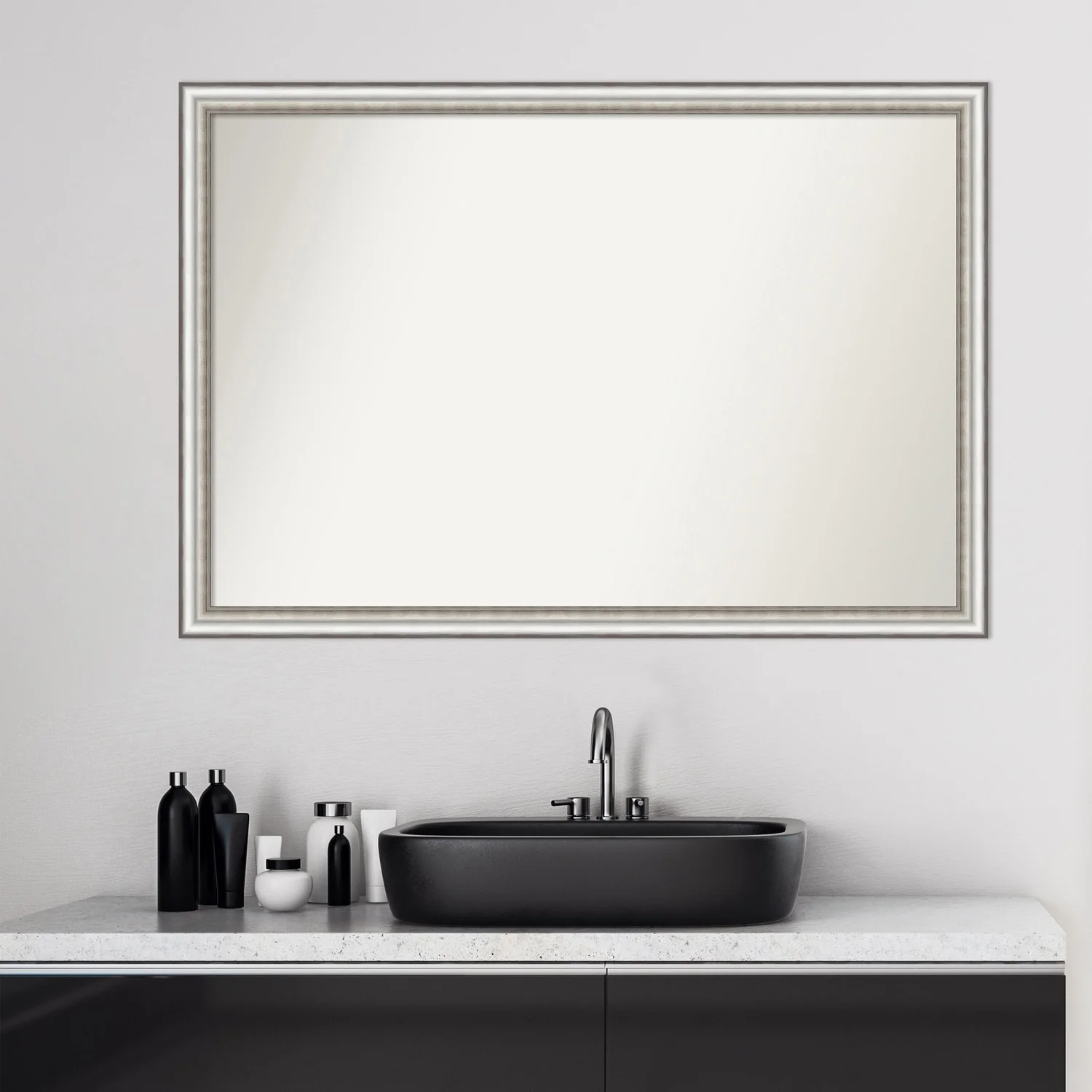 Non-Beveled Bathroom Wall Mirror - Salon Silver Narrow Frame - Salon Silver Narrow