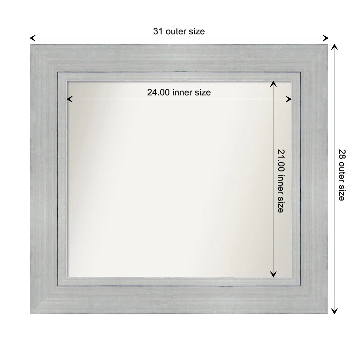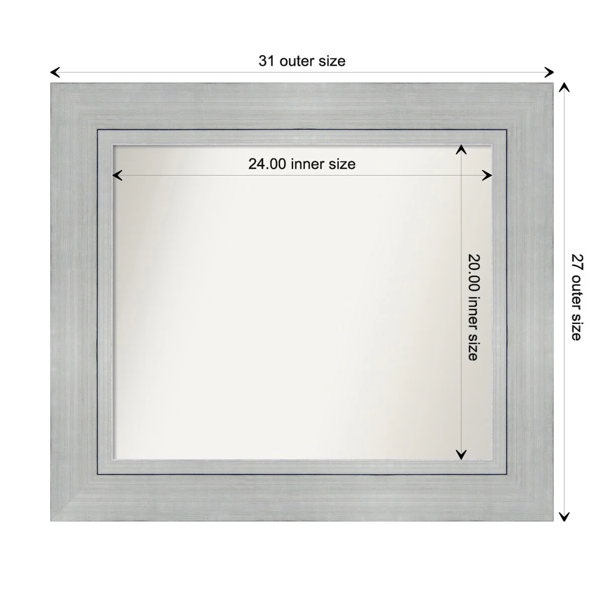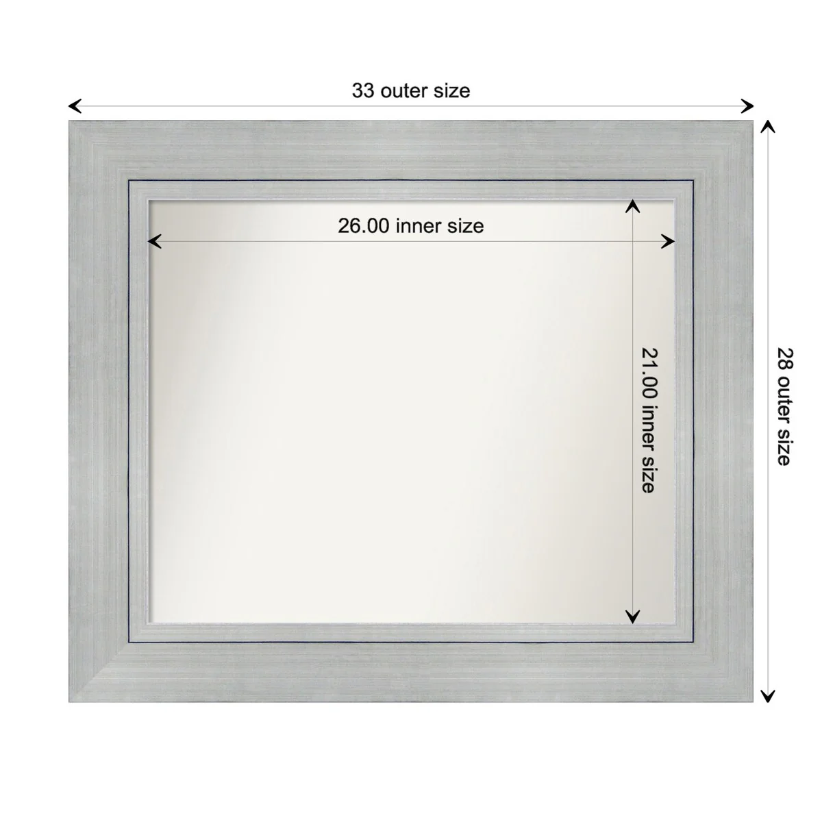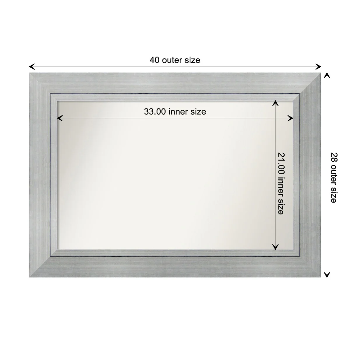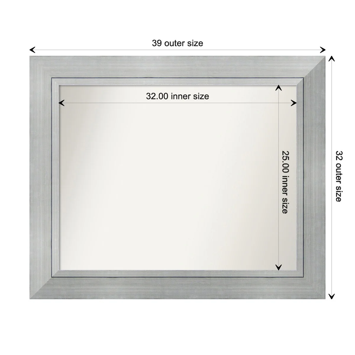 Non-Beveled Bathroom Wall Mirror - Salon Silver Narrow Frame - Salon Silver Narrow