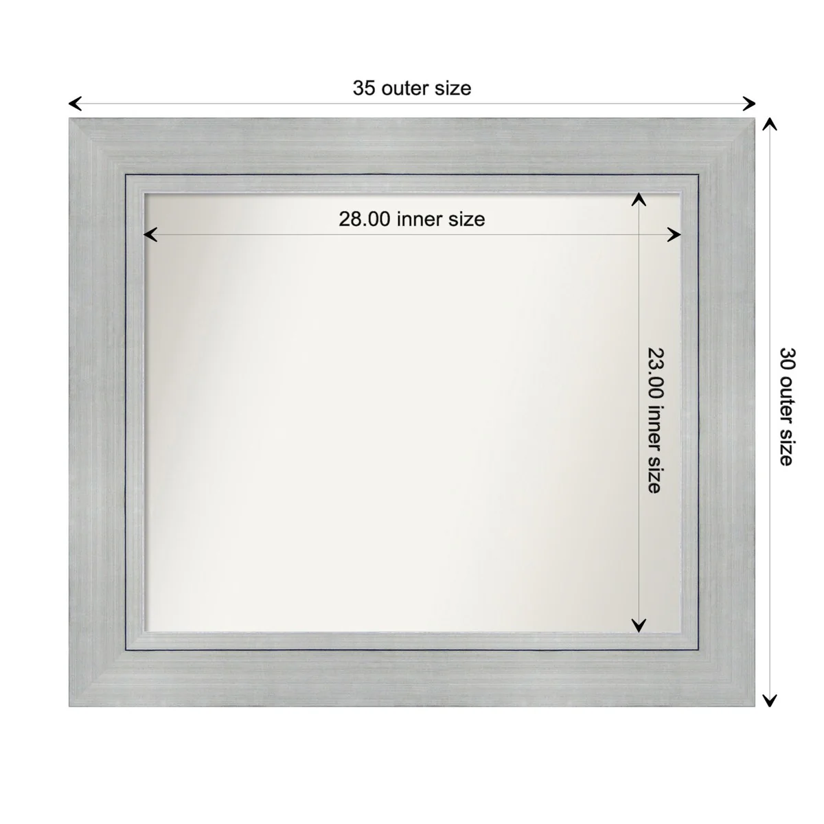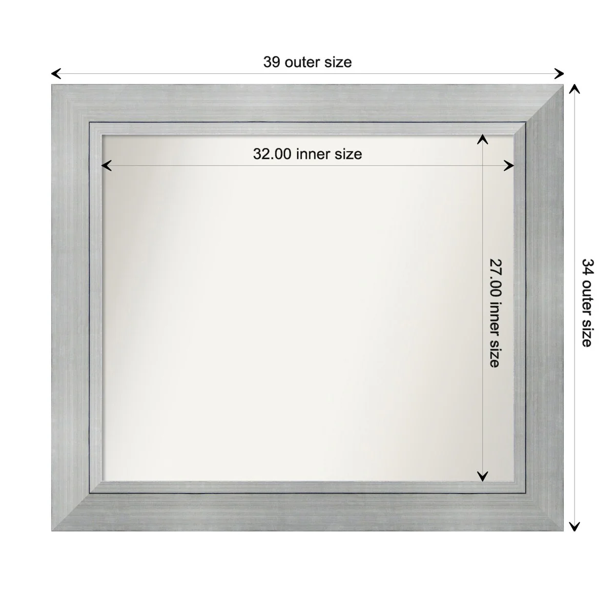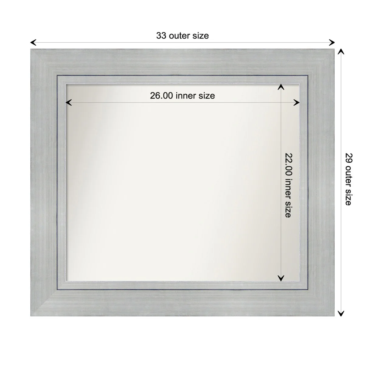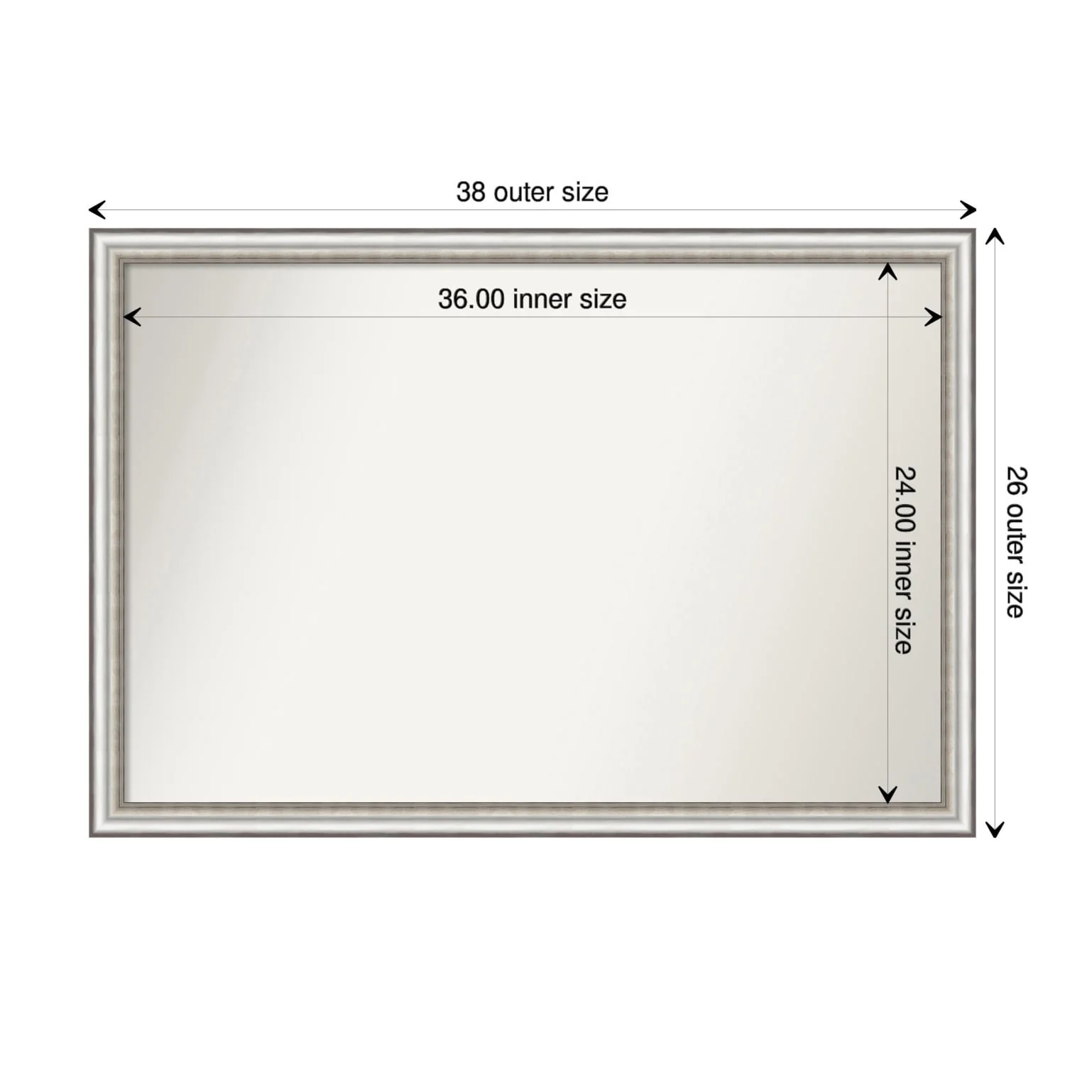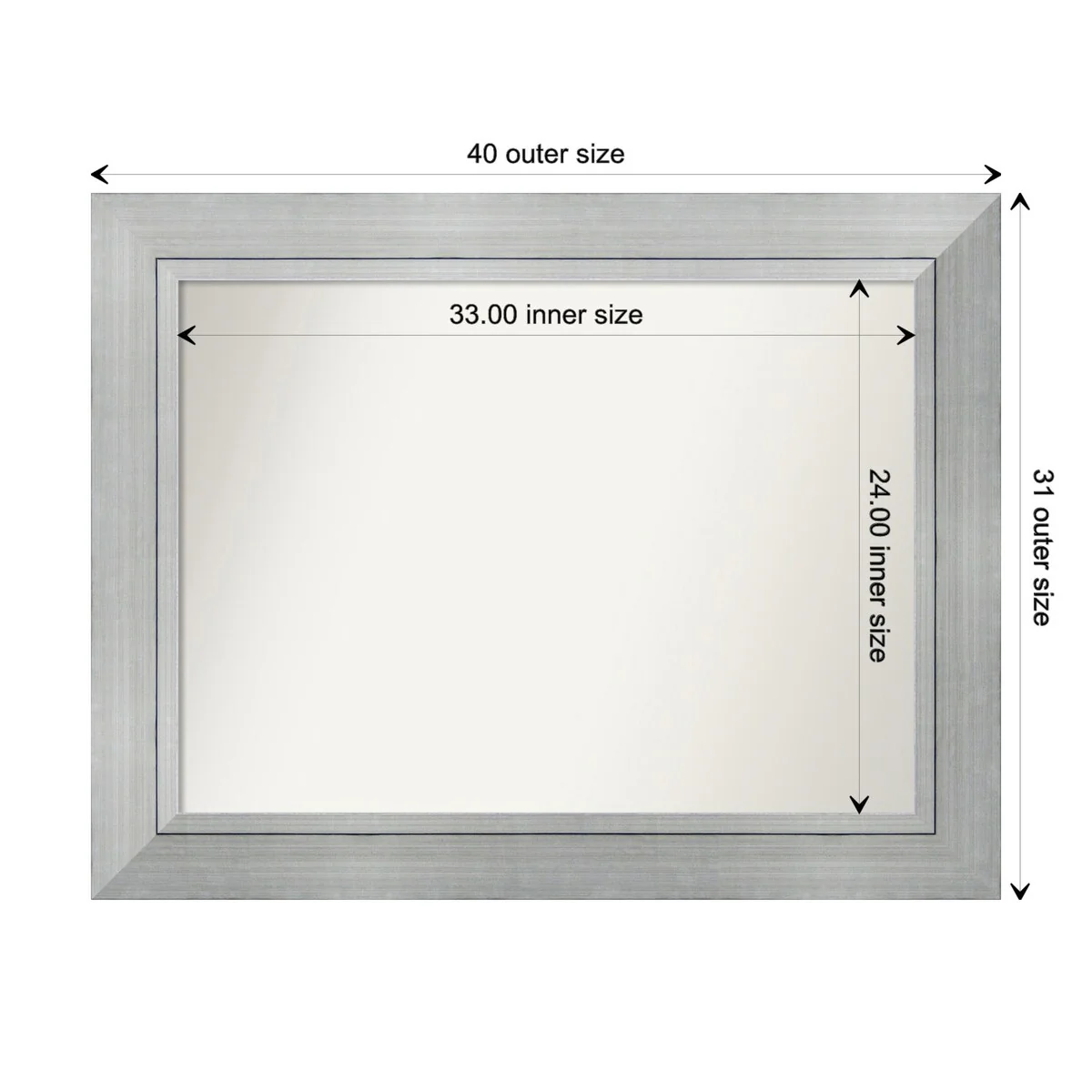 Non-Beveled Bathroom Wall Mirror - Salon Silver Narrow Frame - Salon Silver Narrow