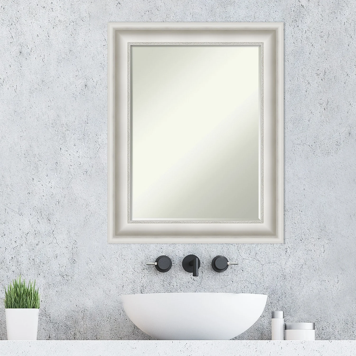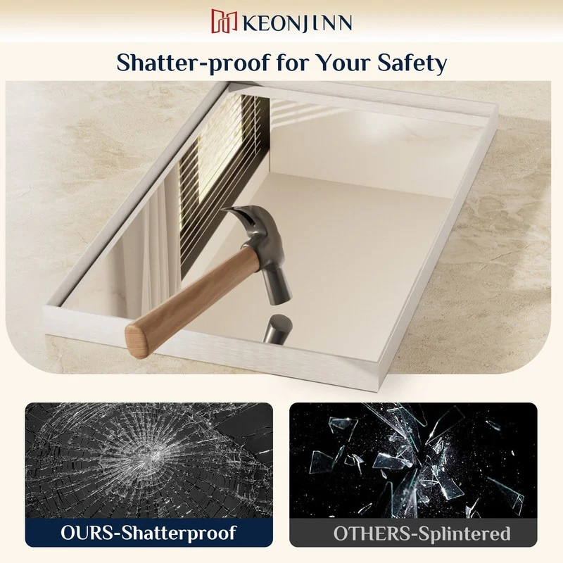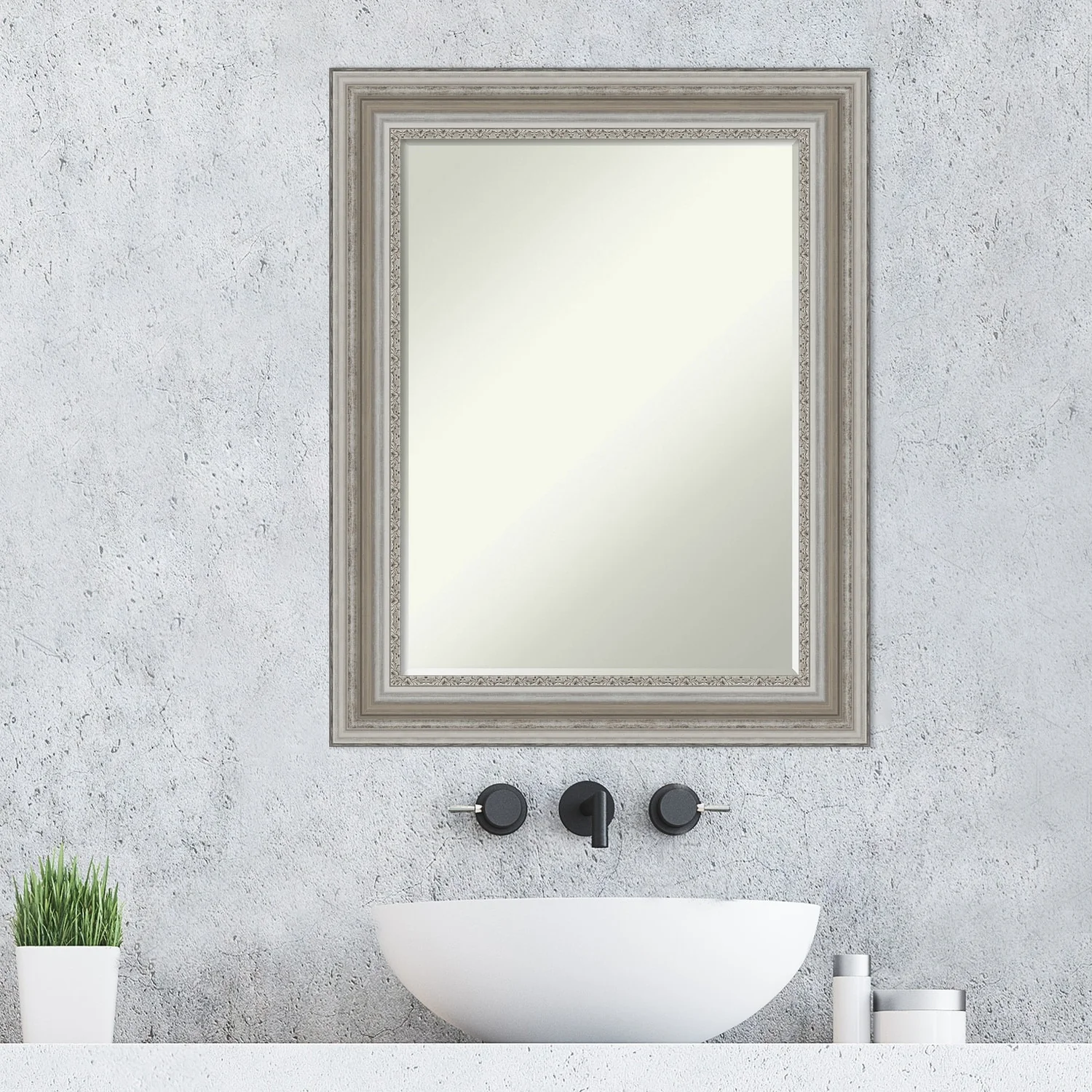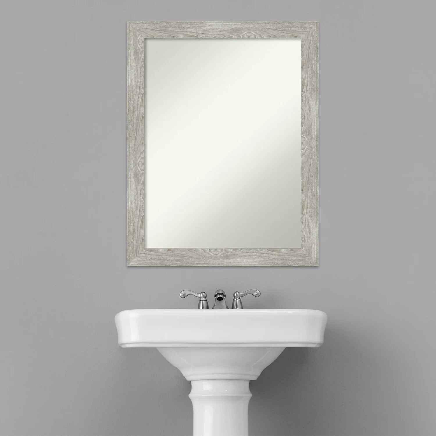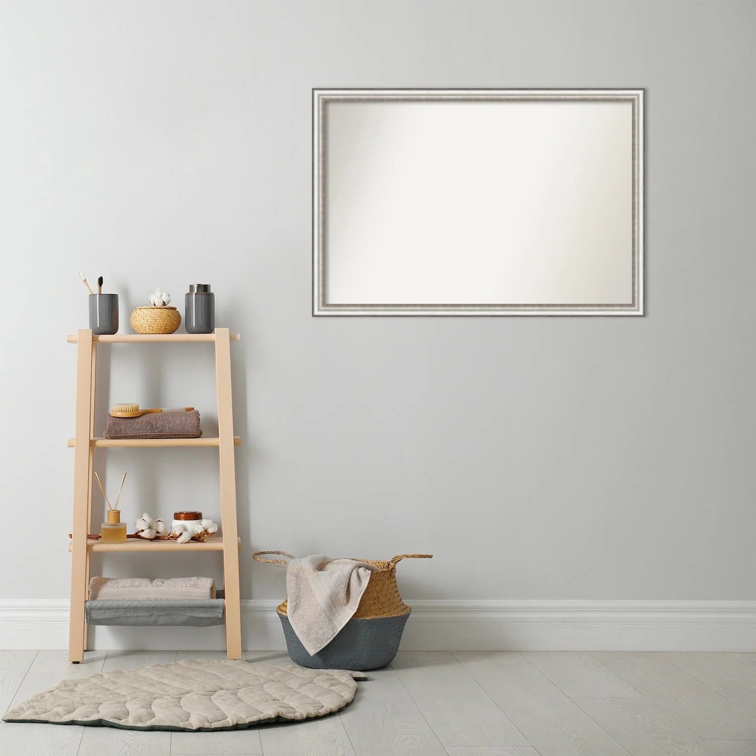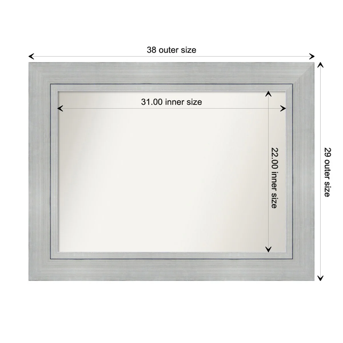 Non-Beveled Bathroom Wall Mirror - Salon Silver Narrow Frame - Salon Silver Narrow
