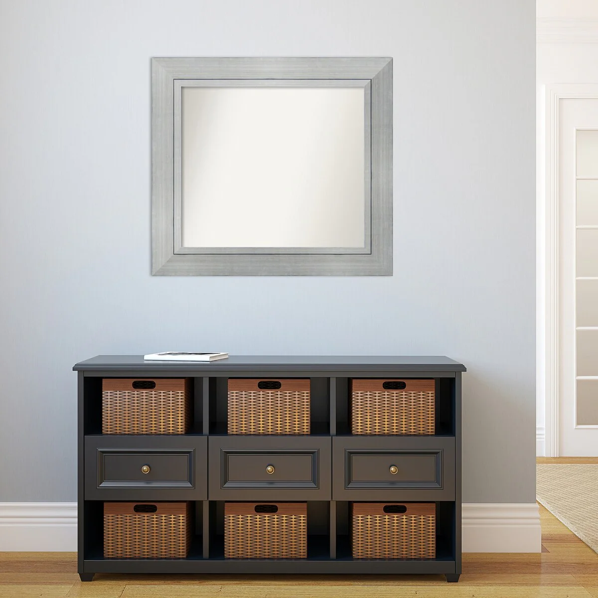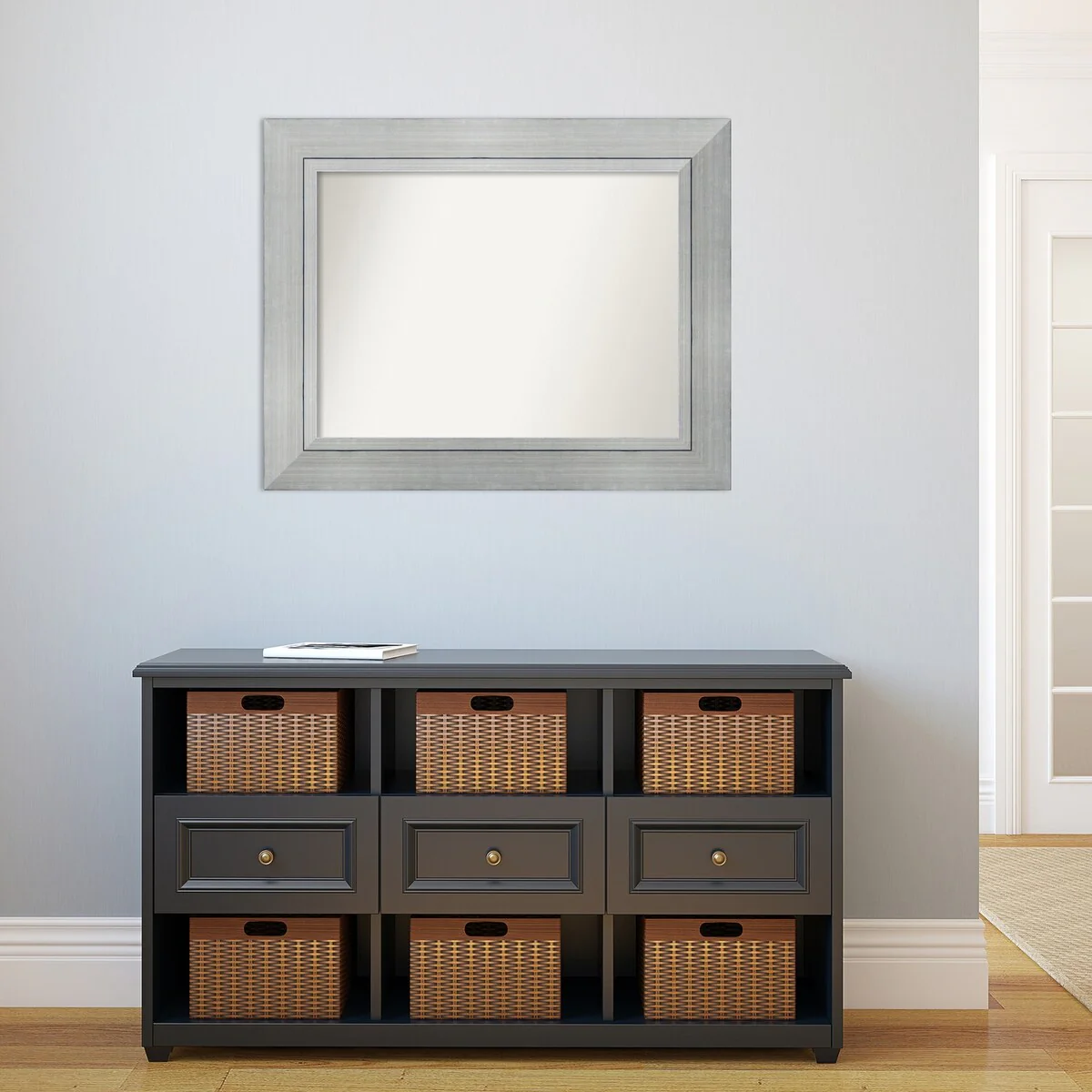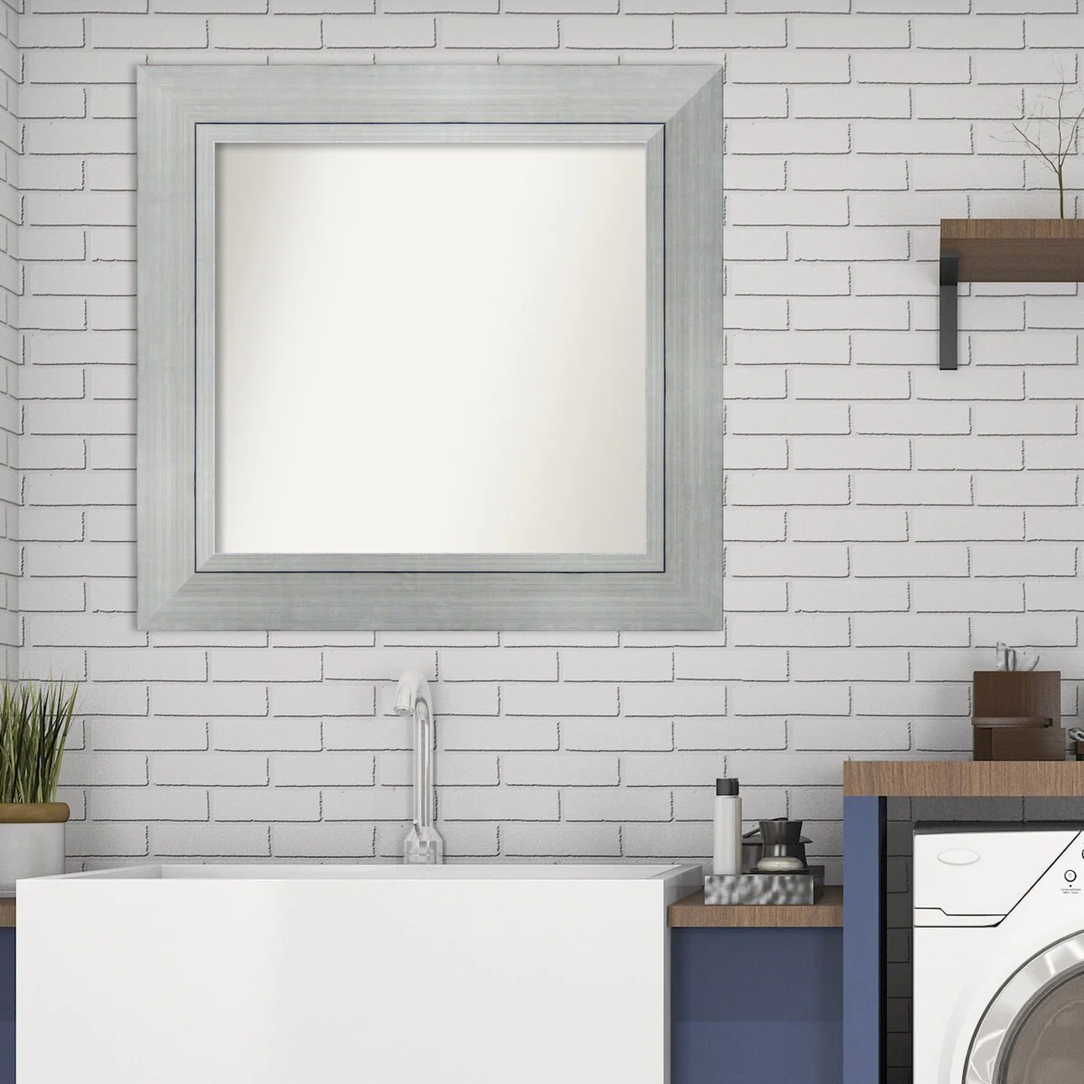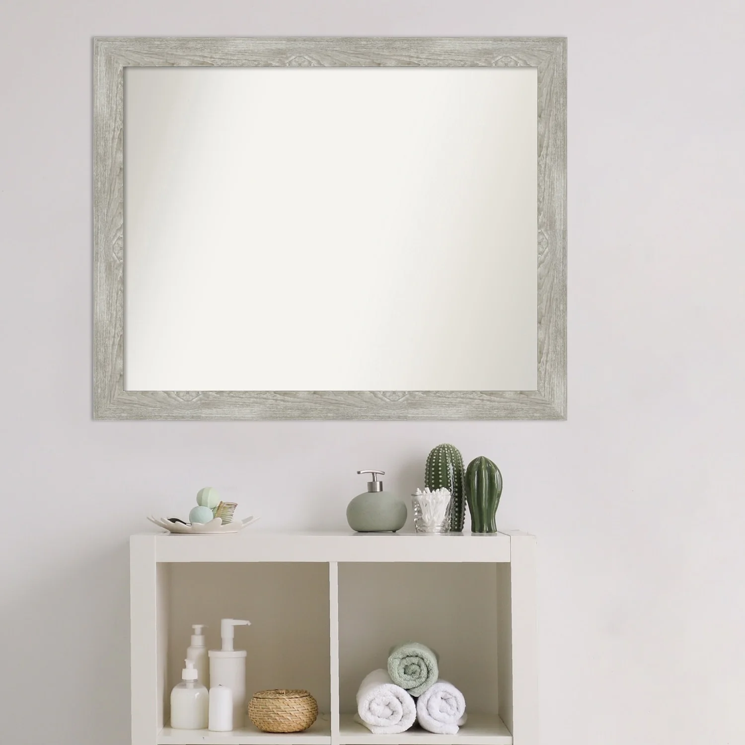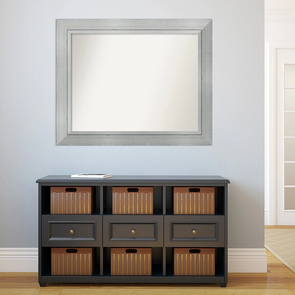 Non-Beveled Bathroom Wall Mirror - Salon Silver Narrow Frame - Salon Silver Narrow