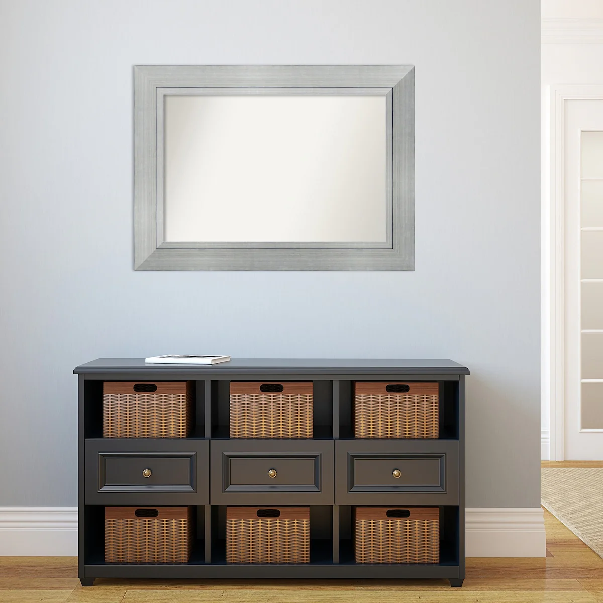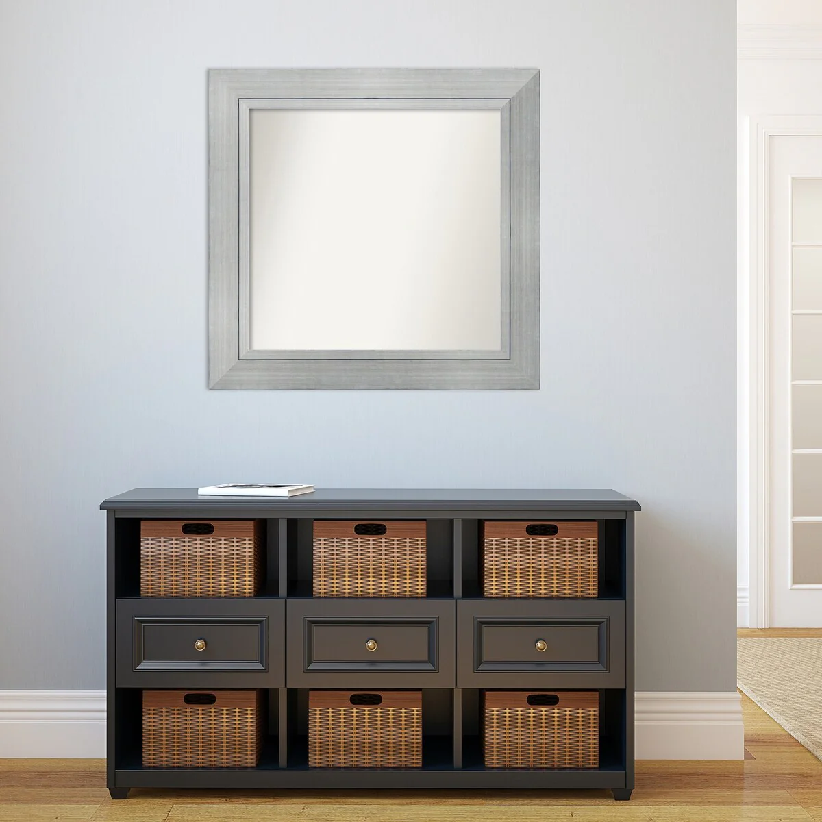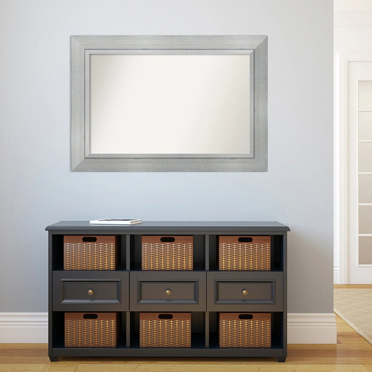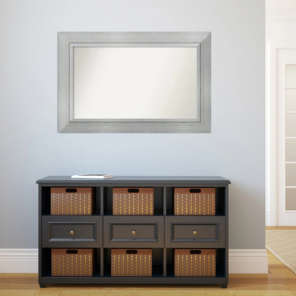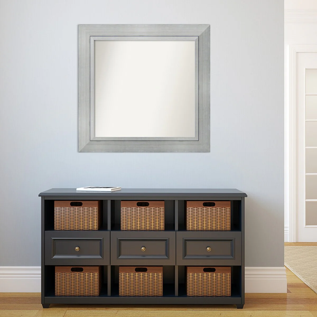 Non-Beveled Bathroom Wall Mirror - Salon Silver Narrow Frame - Salon Silver Narrow