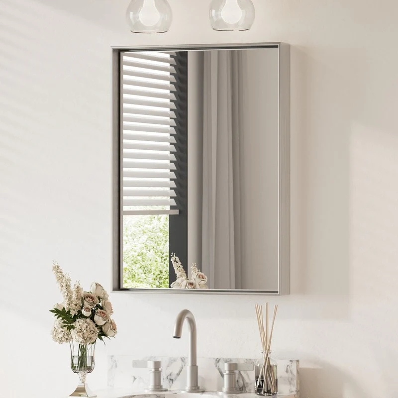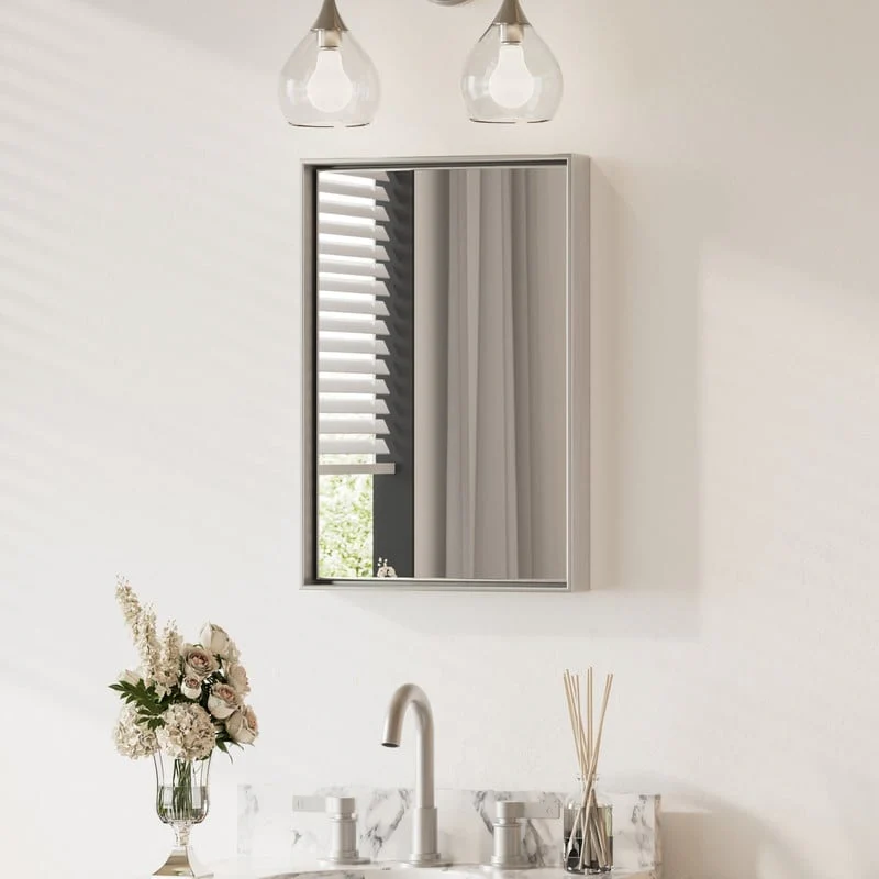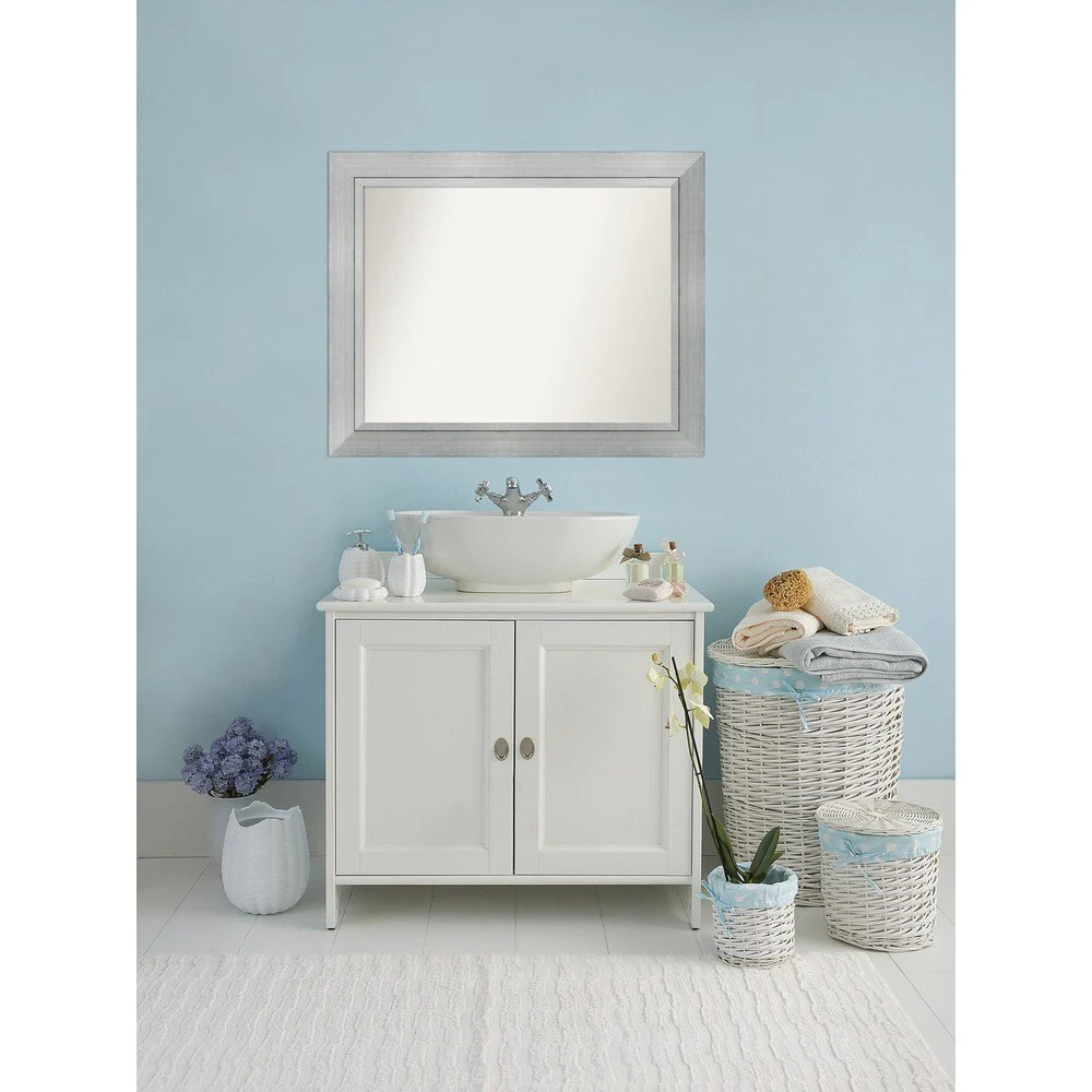 Modern Silver Rectangular Bathroom Vanity Wall Mirror - 26.8" W x 39.3" H