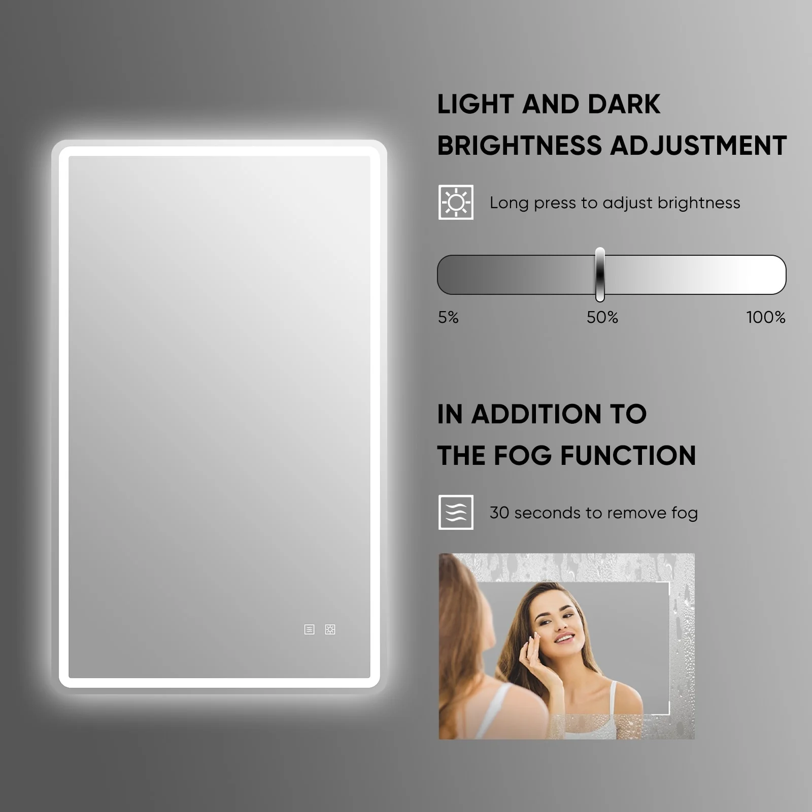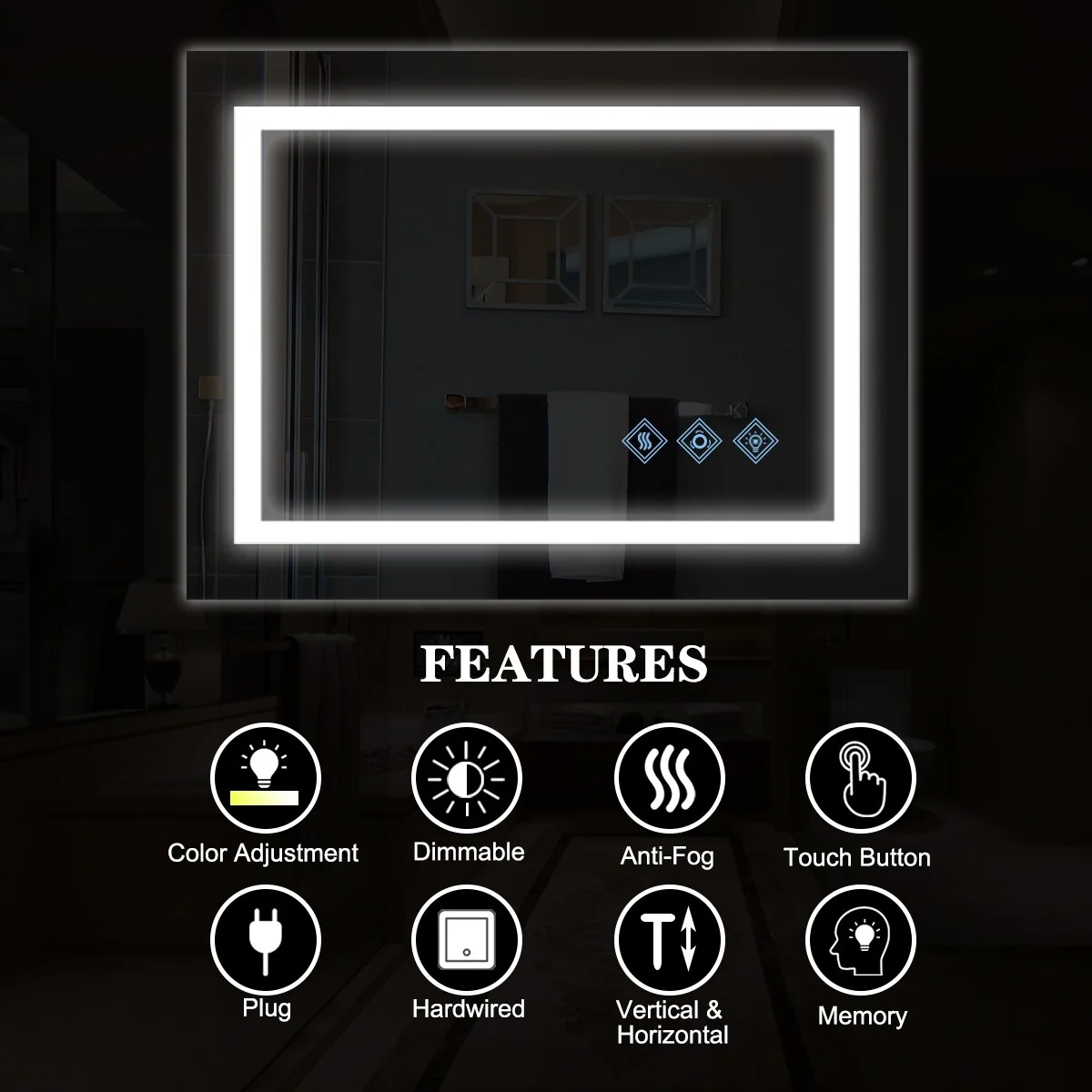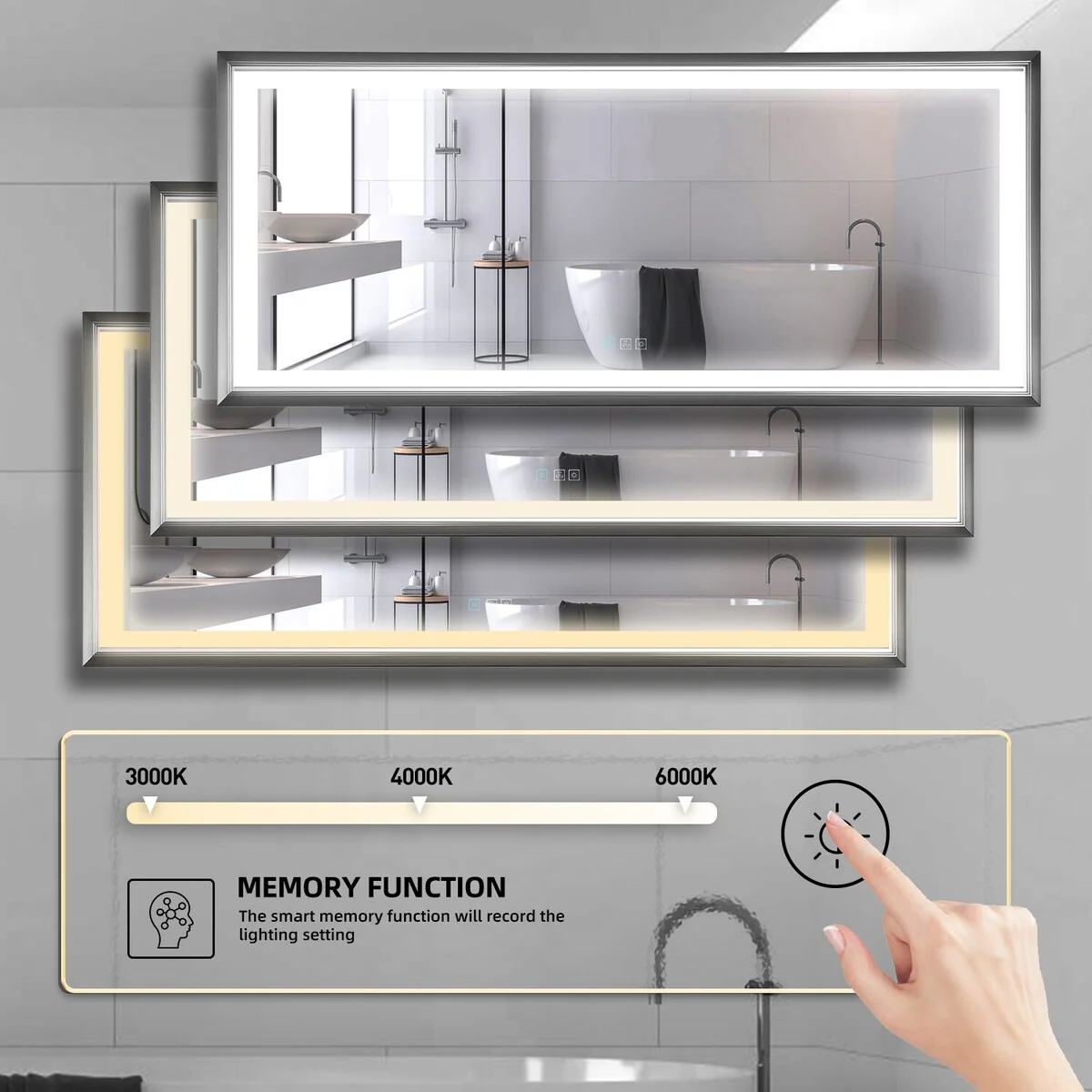 Frameless Bathroom Mirror Dimmable Touch