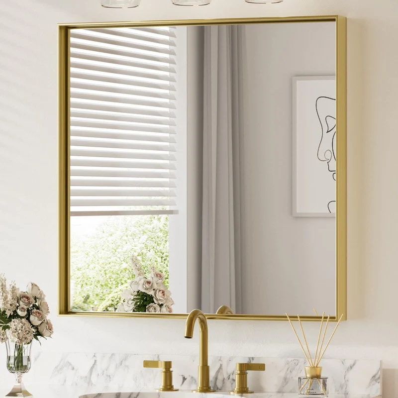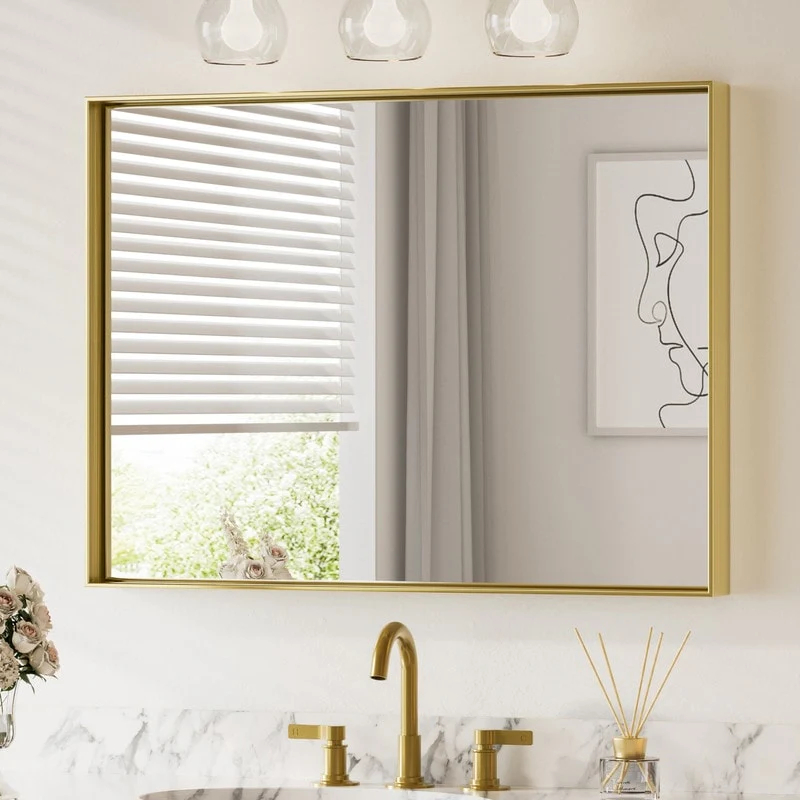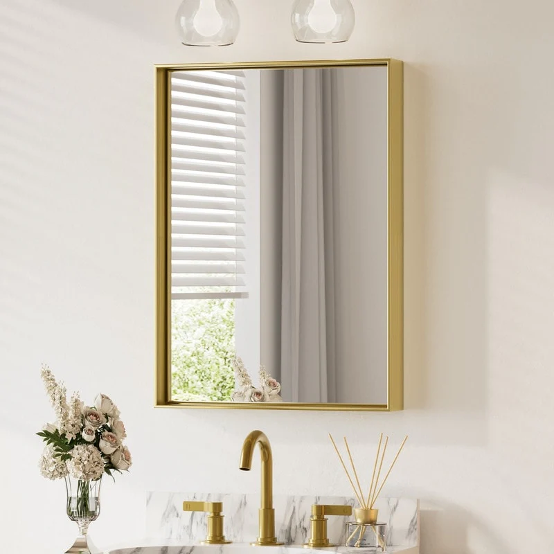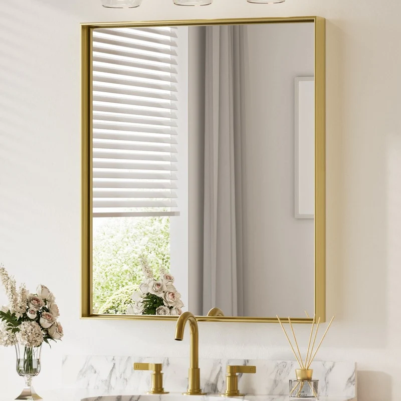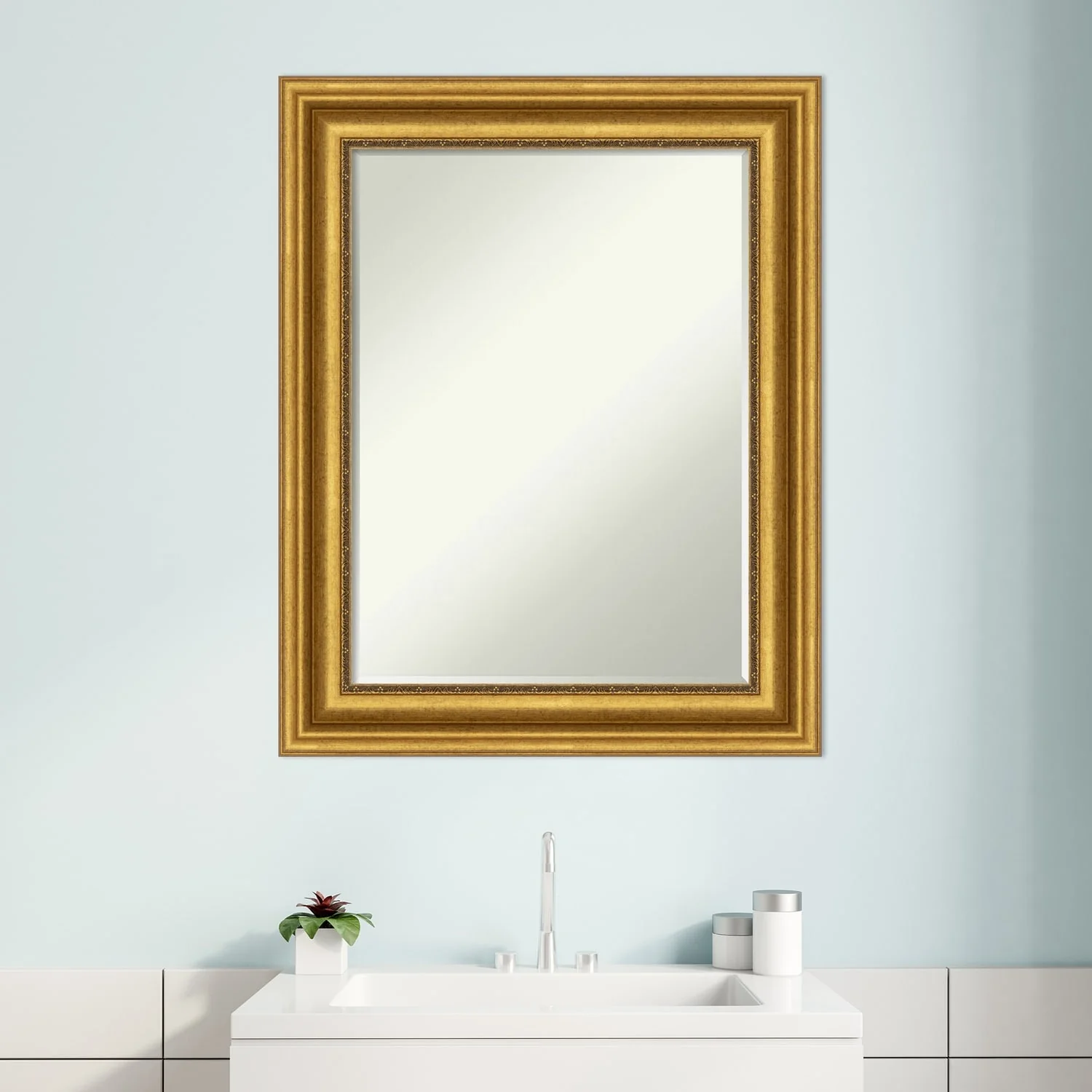 Petite Bevel Bathroom Wall Mirror - Parlor Gold Frame - 24 x 30 in