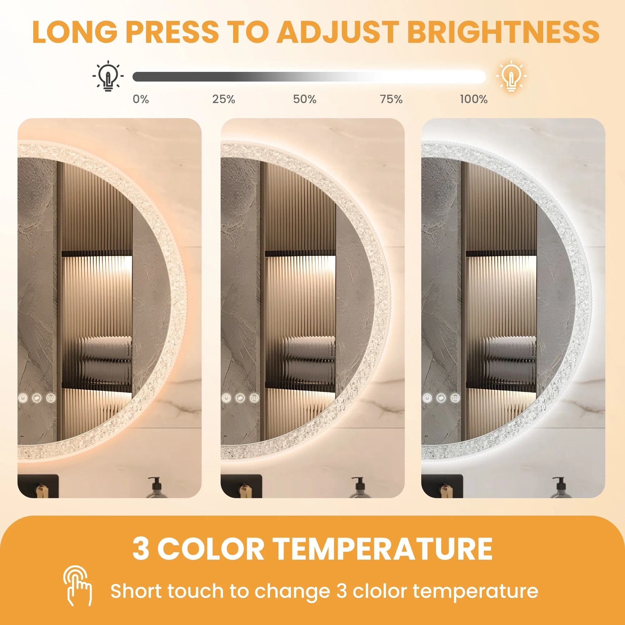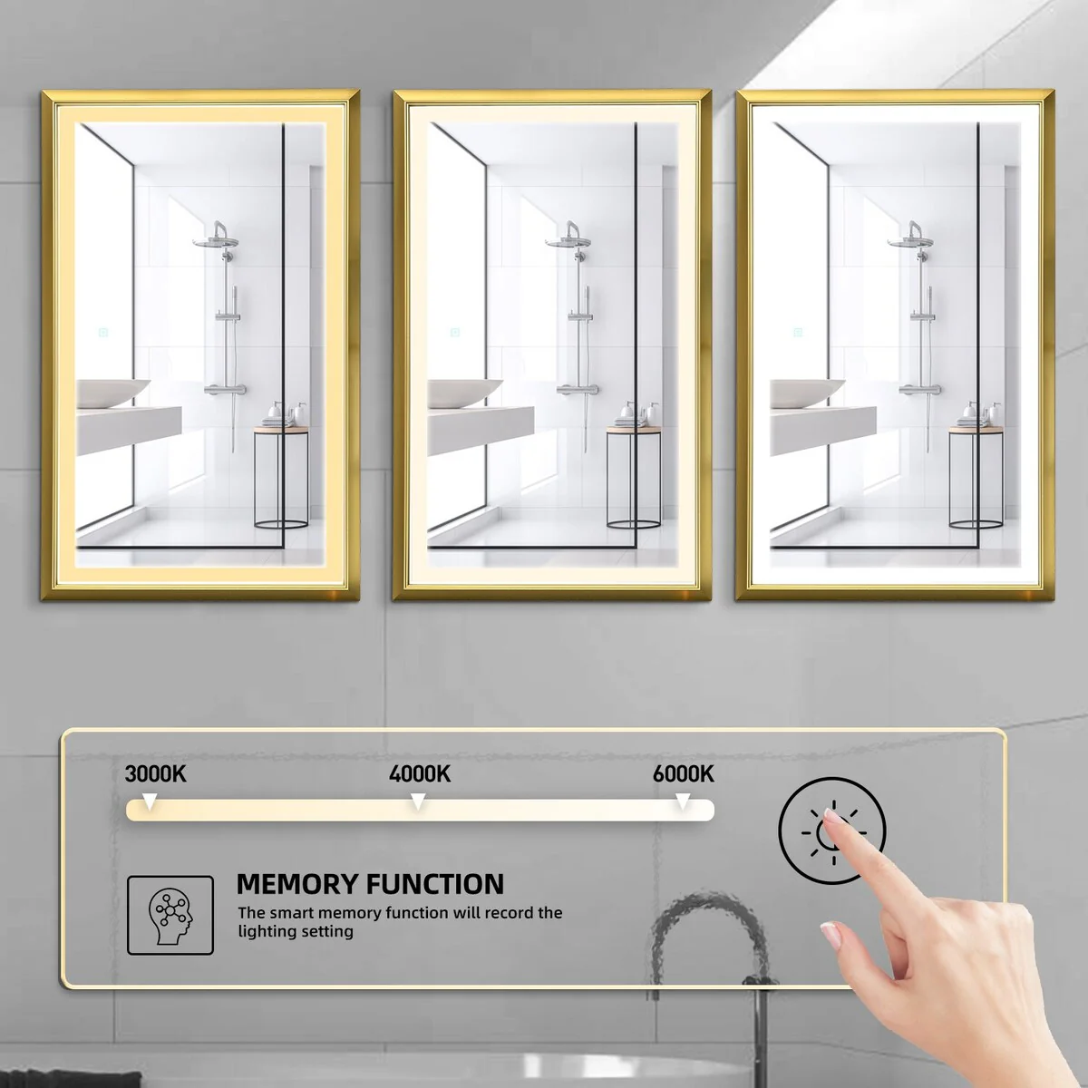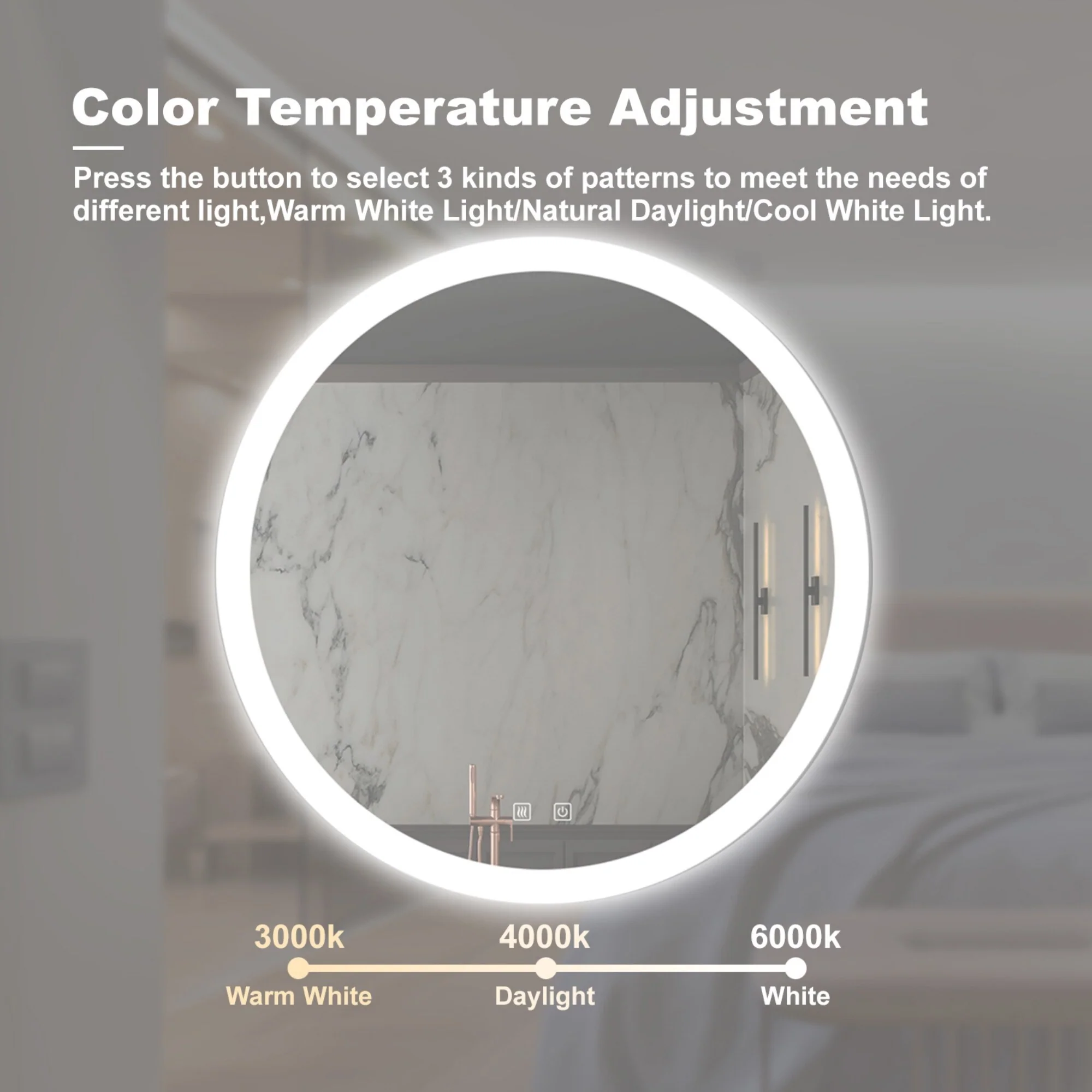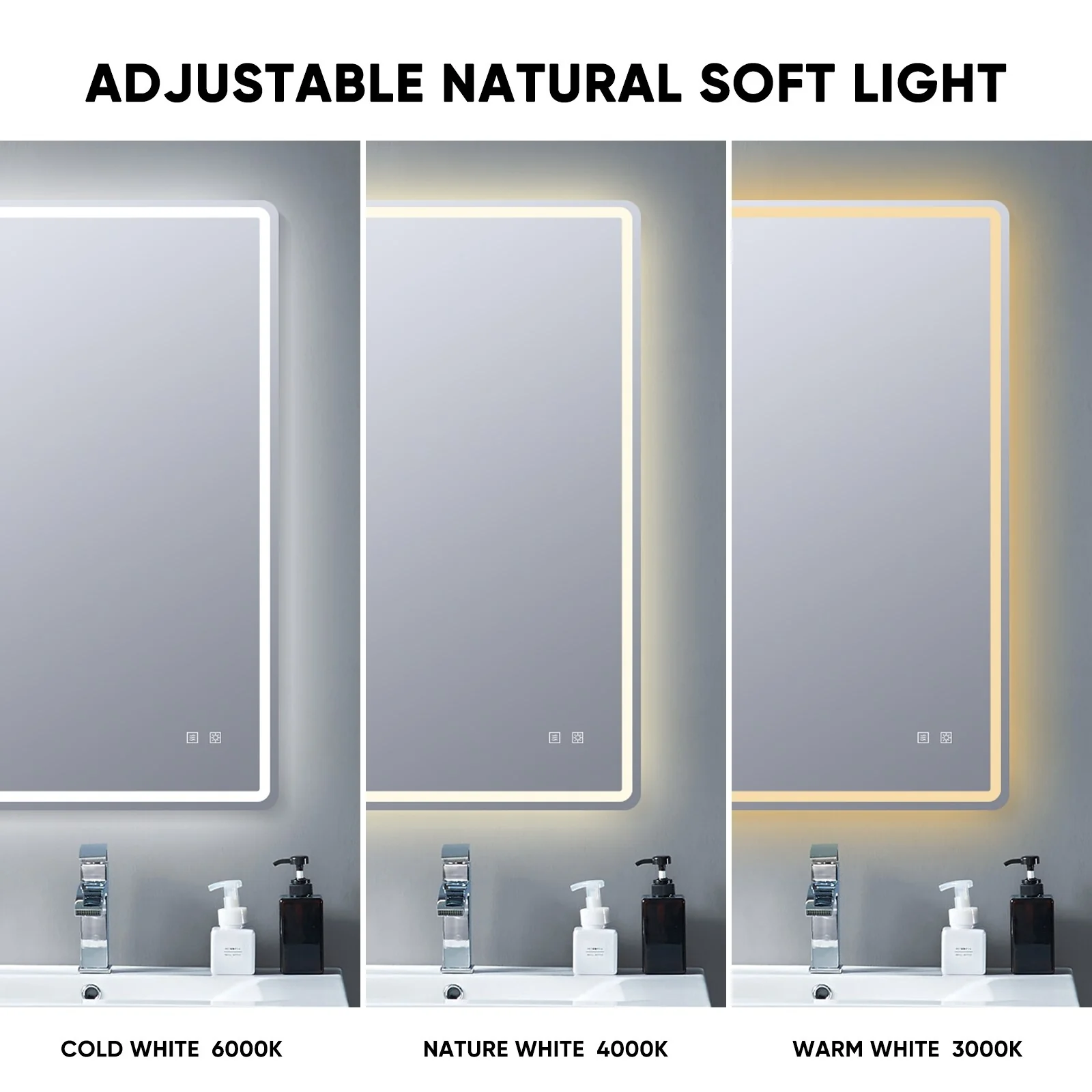 Bathroom LED Cosmetic Mirror with 3 Adjustable Color Temperatures