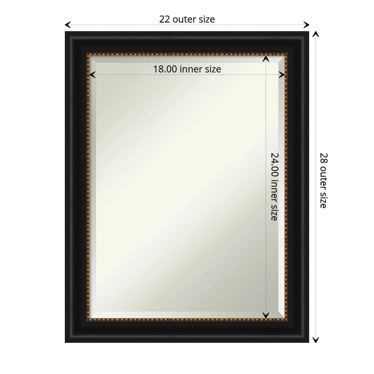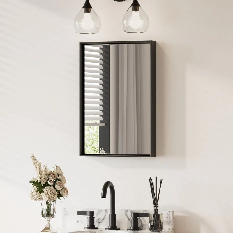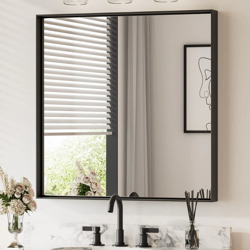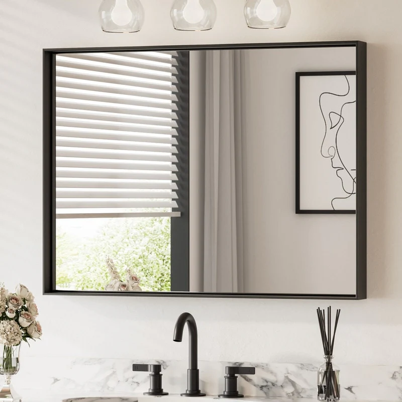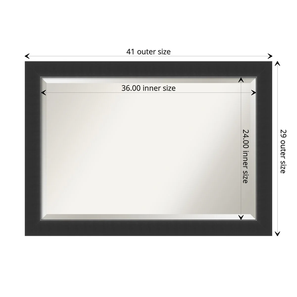 Beveled Wood Bathroom Wall Mirror - Corvino Black Frame - Outer Size: 41 x 29 in