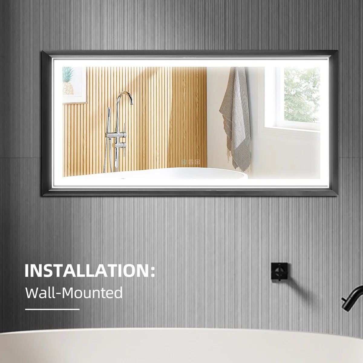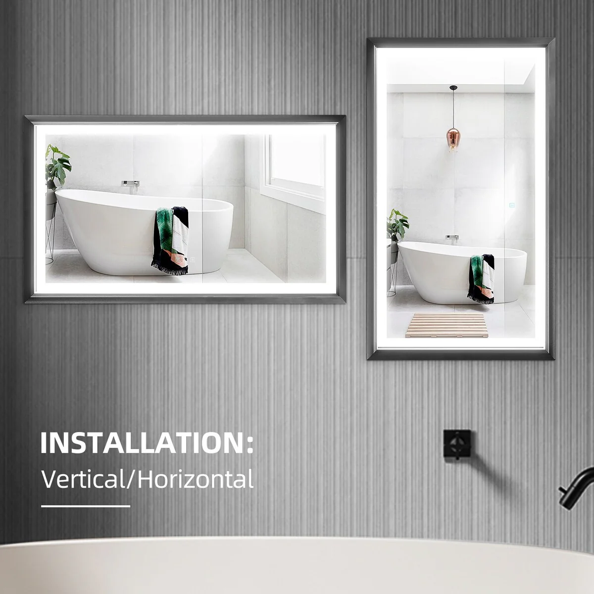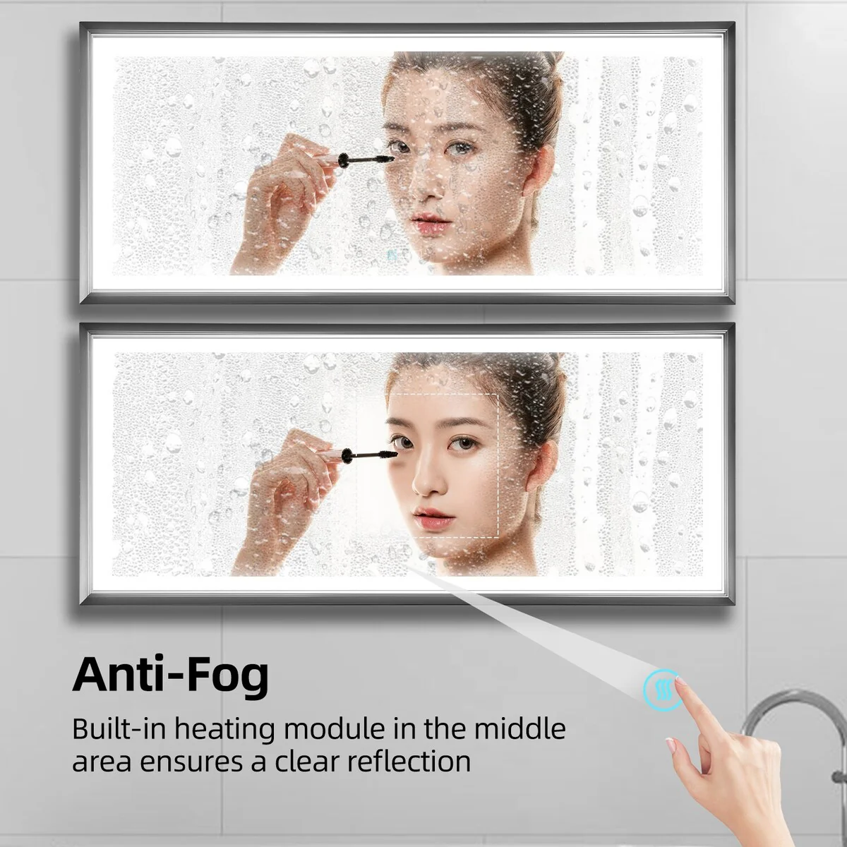 Metis Rectangular Aluminium Framed Dimmable Anti-Fog Bathroom Vanity Mirror