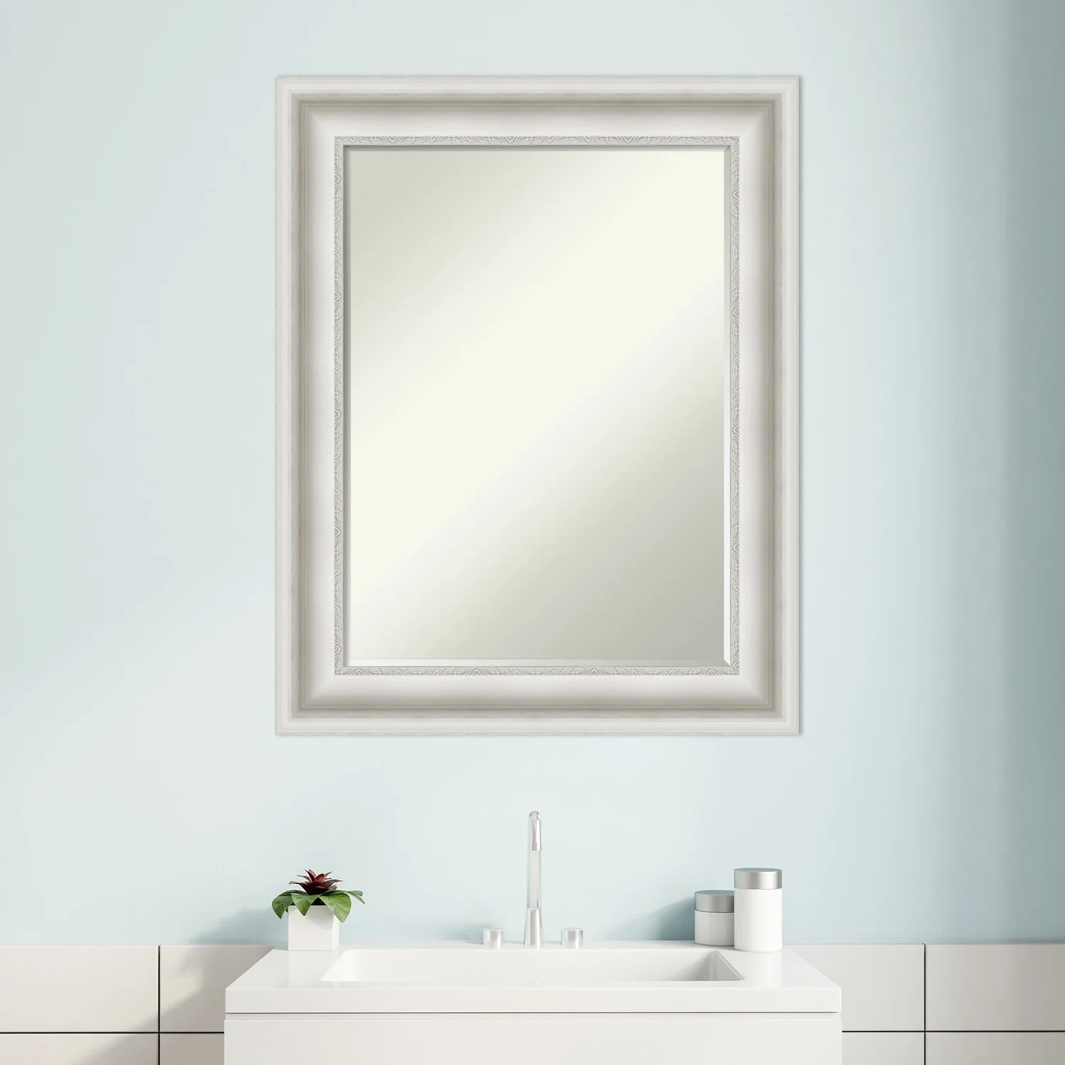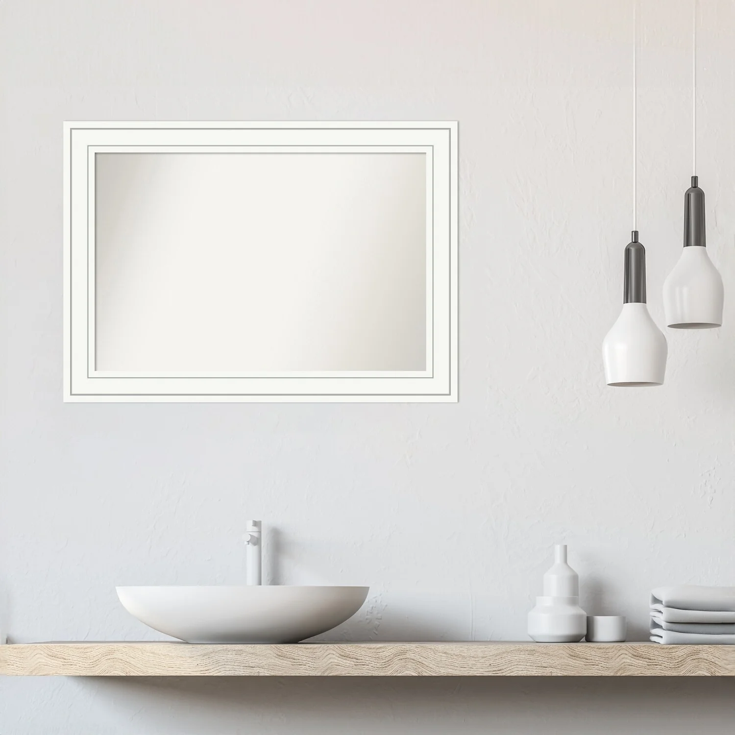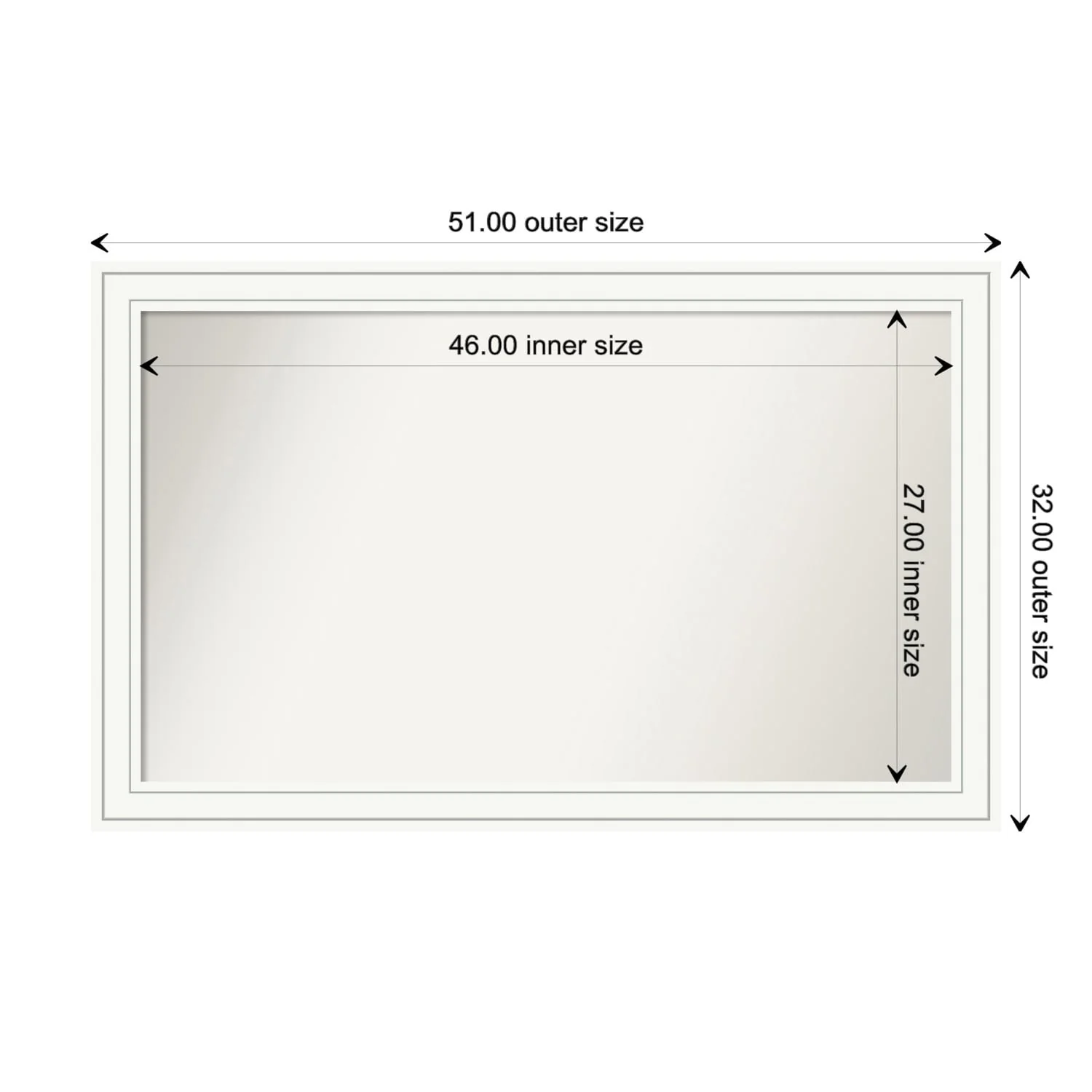 Craftsman White Framed Non-Beveled Custom Wall Mirror, Bathroom Vanity Mirror