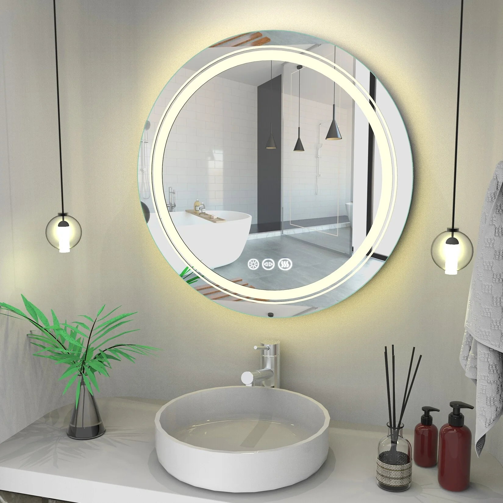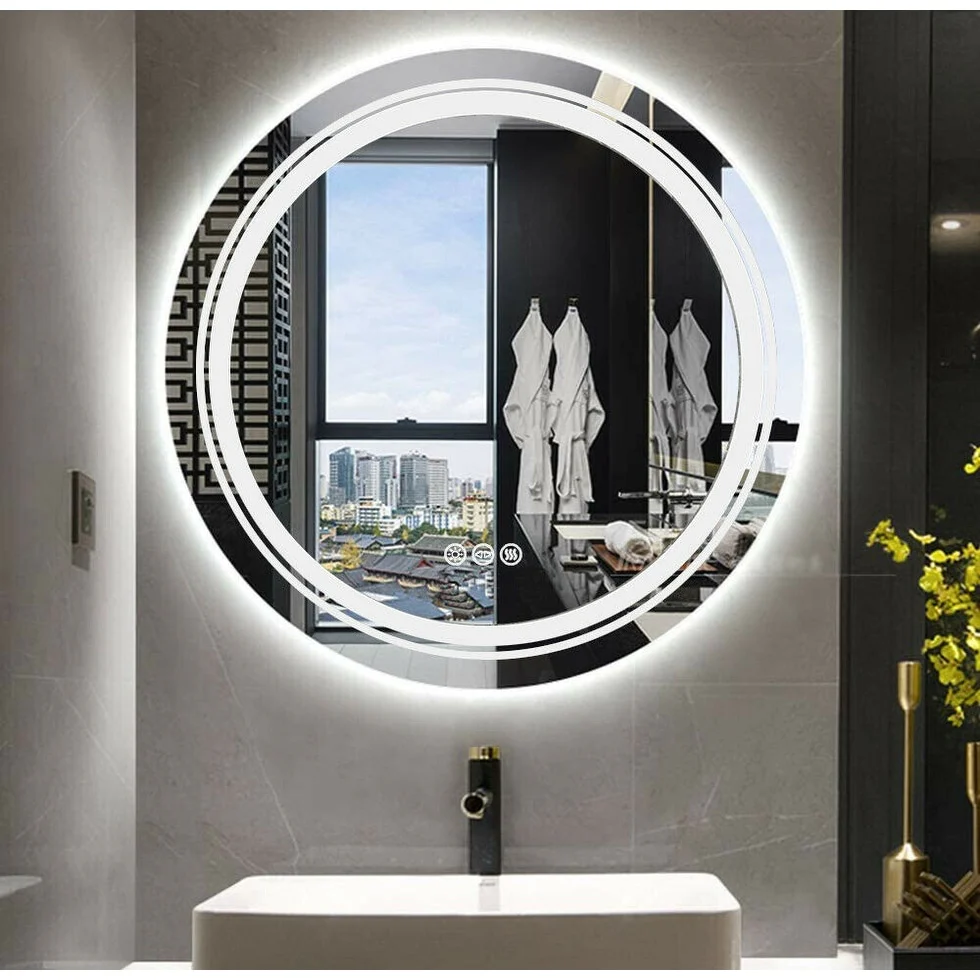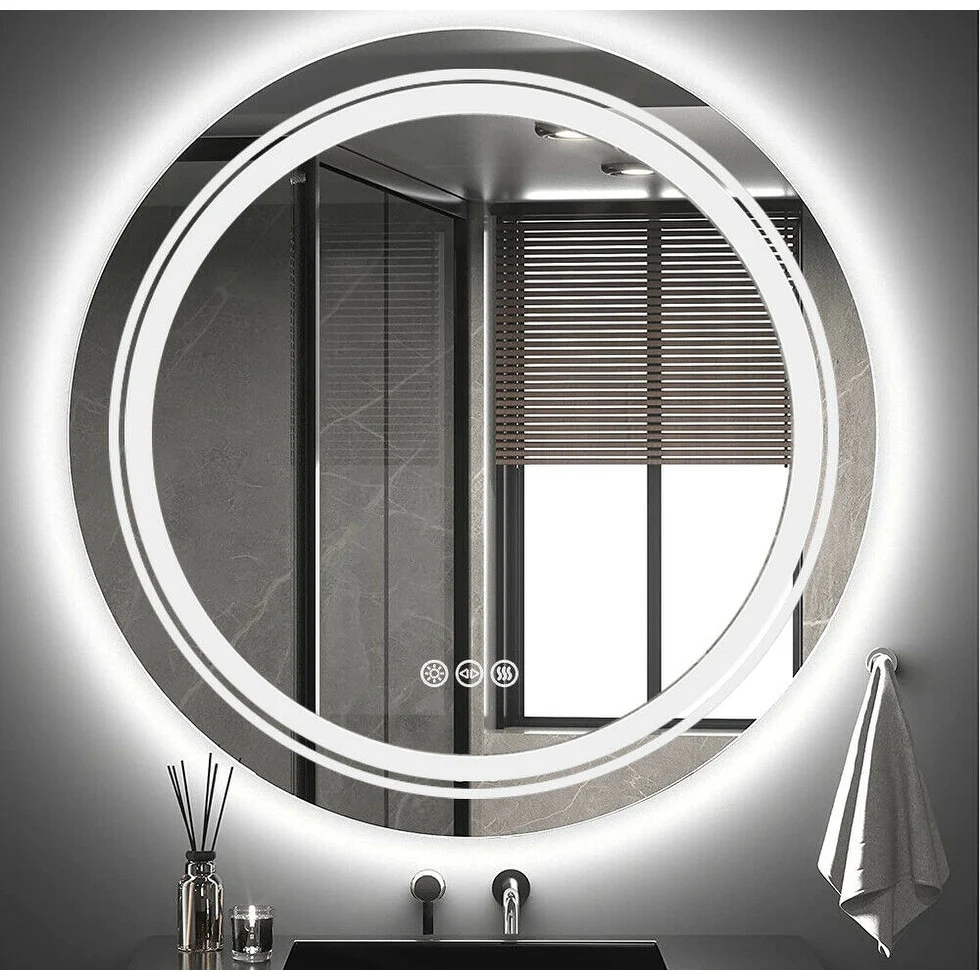 24" LED Mirror Bathroom Wall Mounted Vanity Dimmable Anti-Fog Round - 24x24 inch