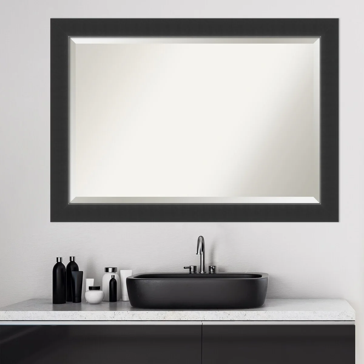 Beveled Bathroom Wall Mirror - Manhattan Black Frame - Manhattan Black