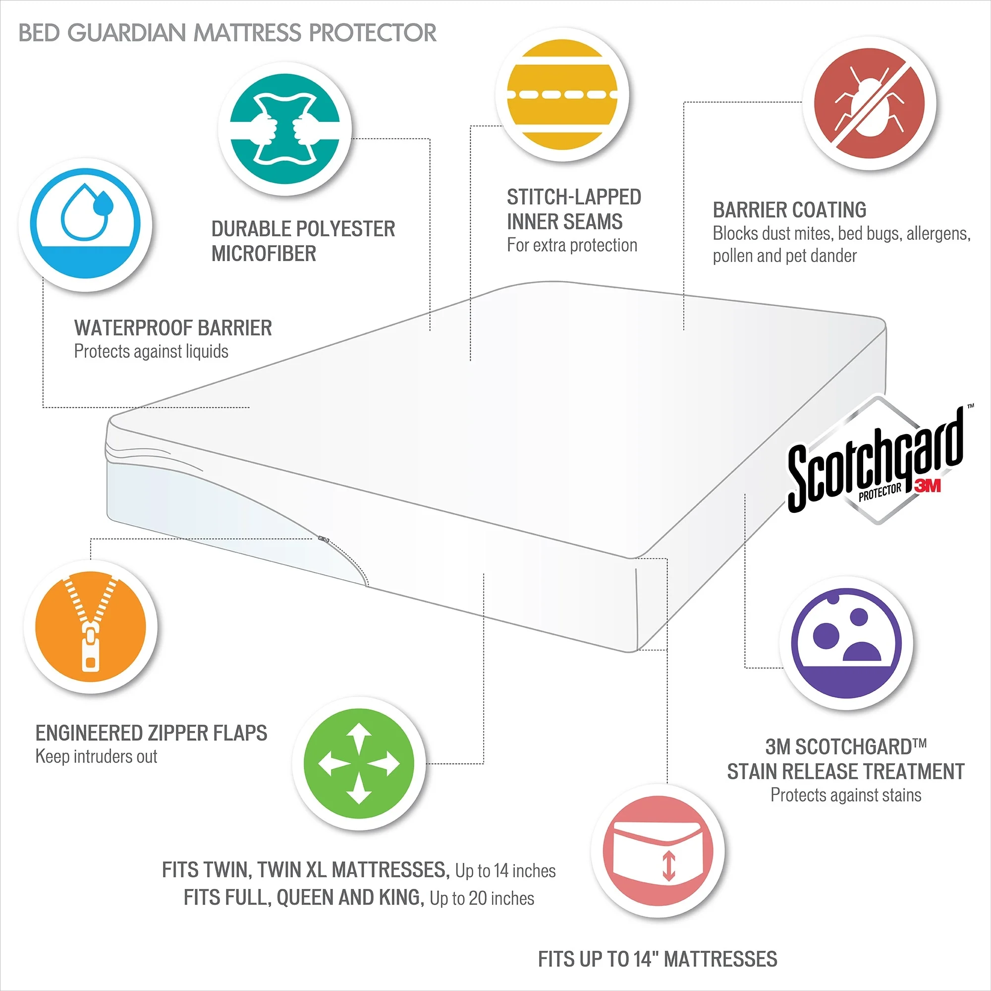 Bed Guardian 3M Scotchgard Waterproof Mattress Protector by Sleep Philosophy - White
