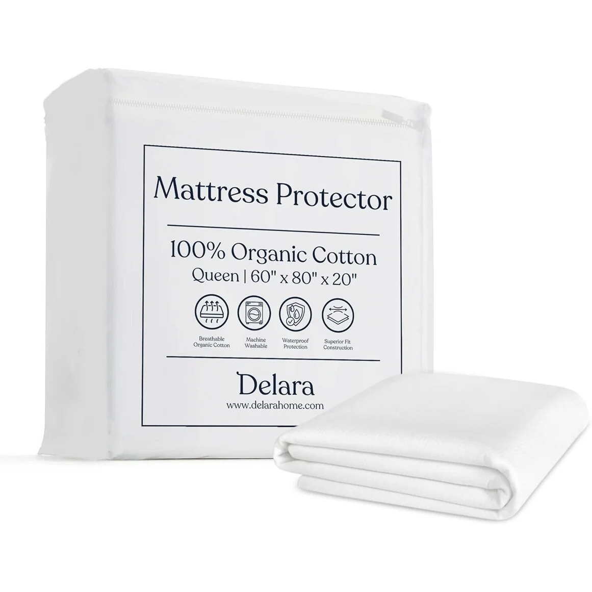 Delara 100% Organic Cotton Mattress Protector, Waterproof Ultra Soft 300TC Cover