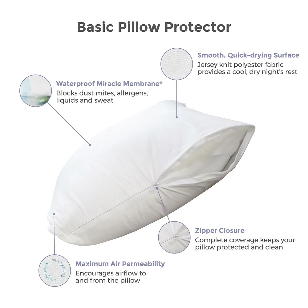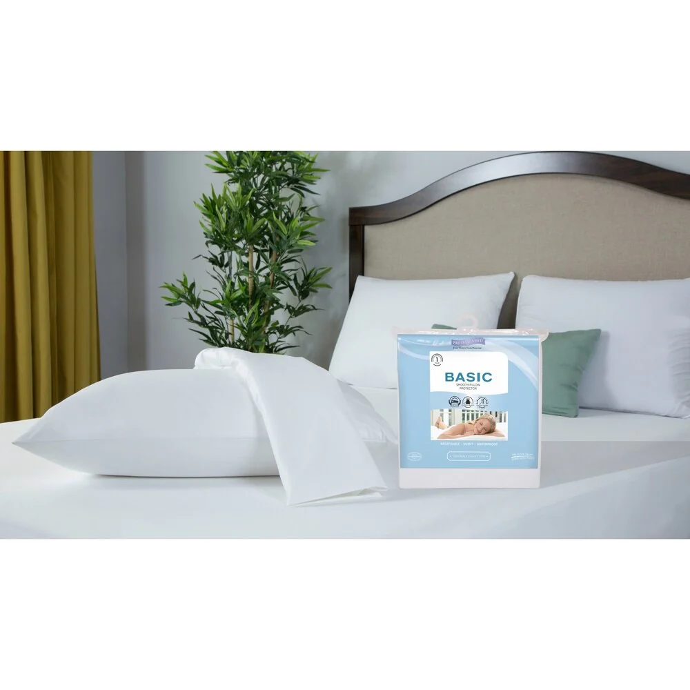 Protect-A-Bed BASIC QUEEN SMOOTH WATERPROOF PILLOW PROTECTOR - 2 PACK - White
