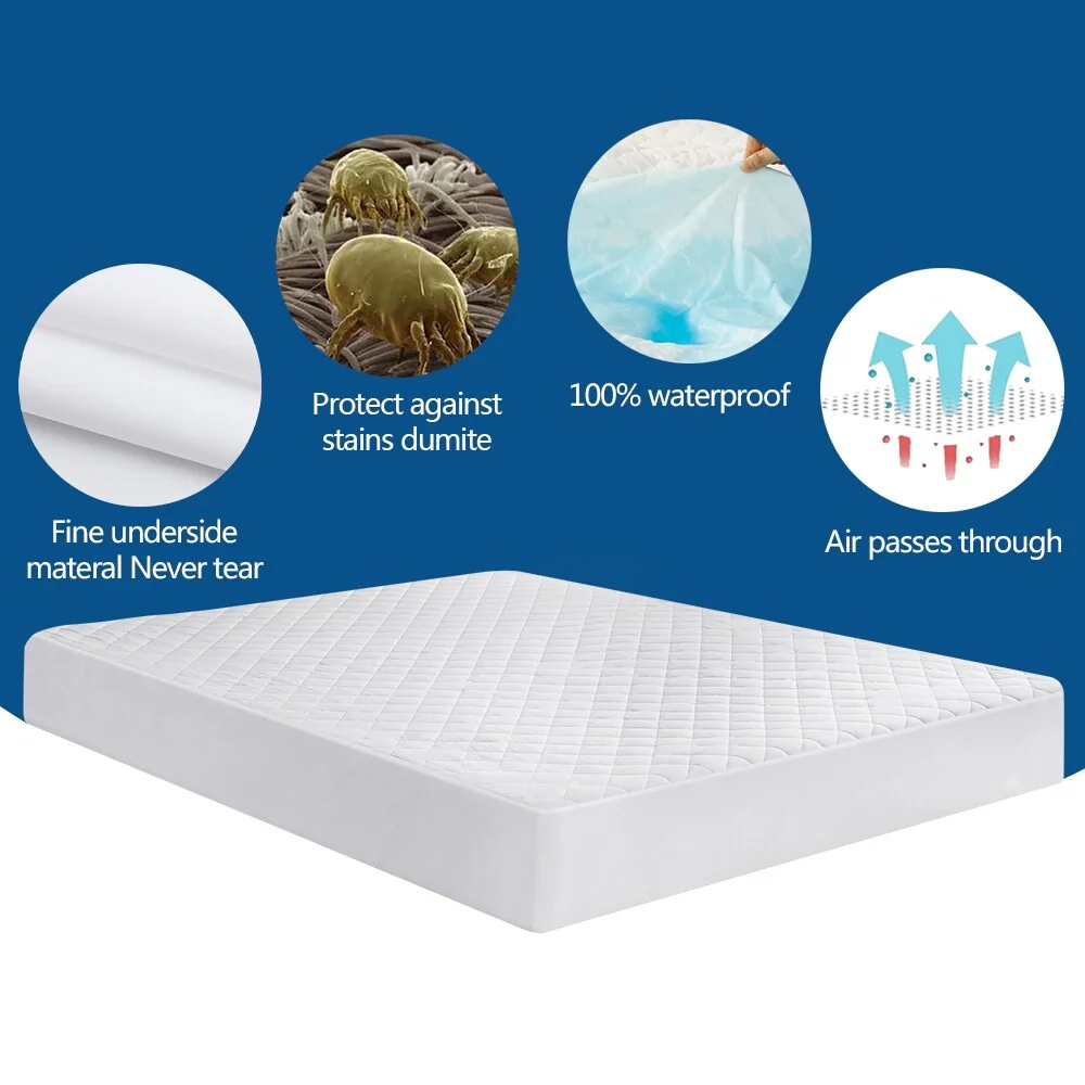 Mattress Cover Protector Bedding Quilted Fitted Mattress Topper - White