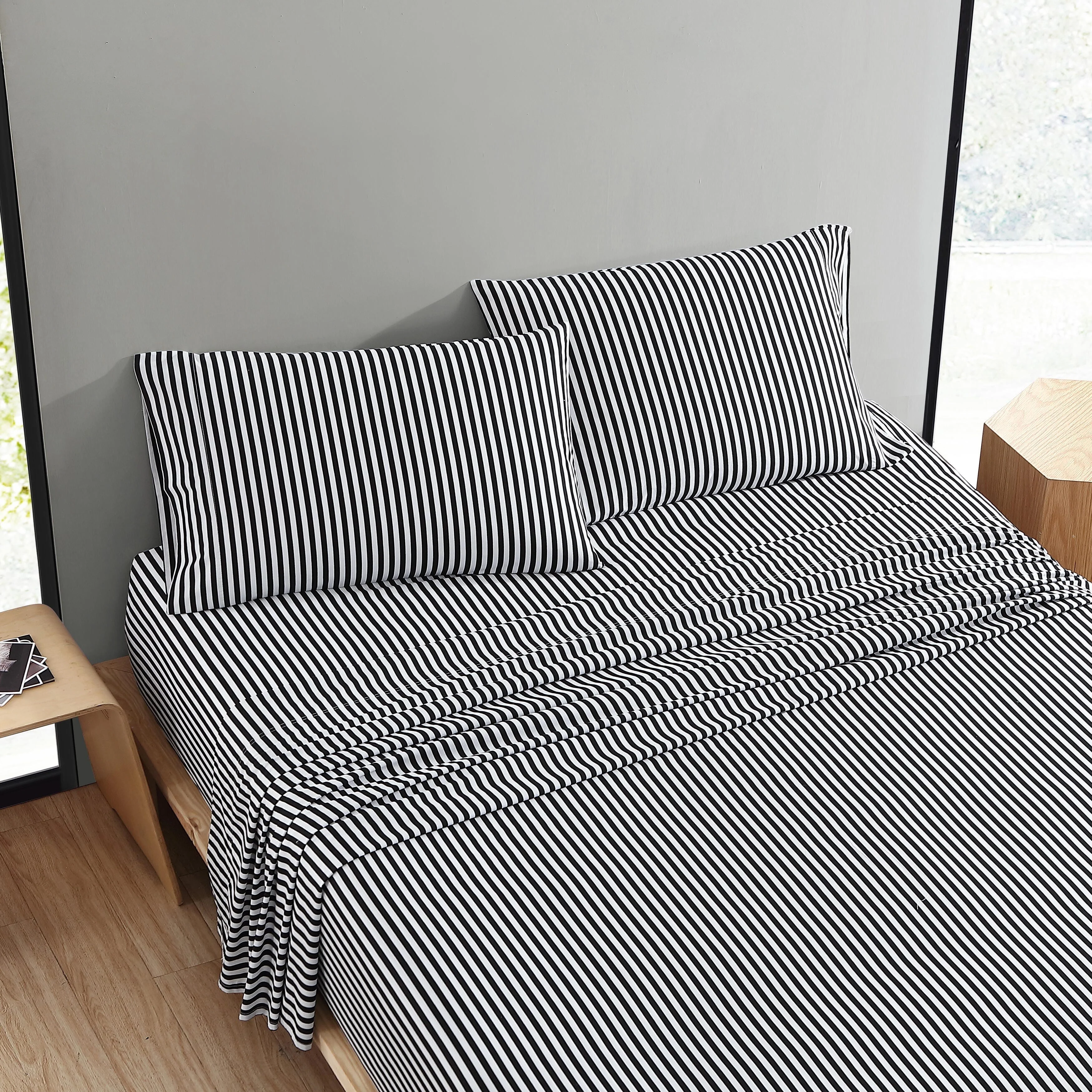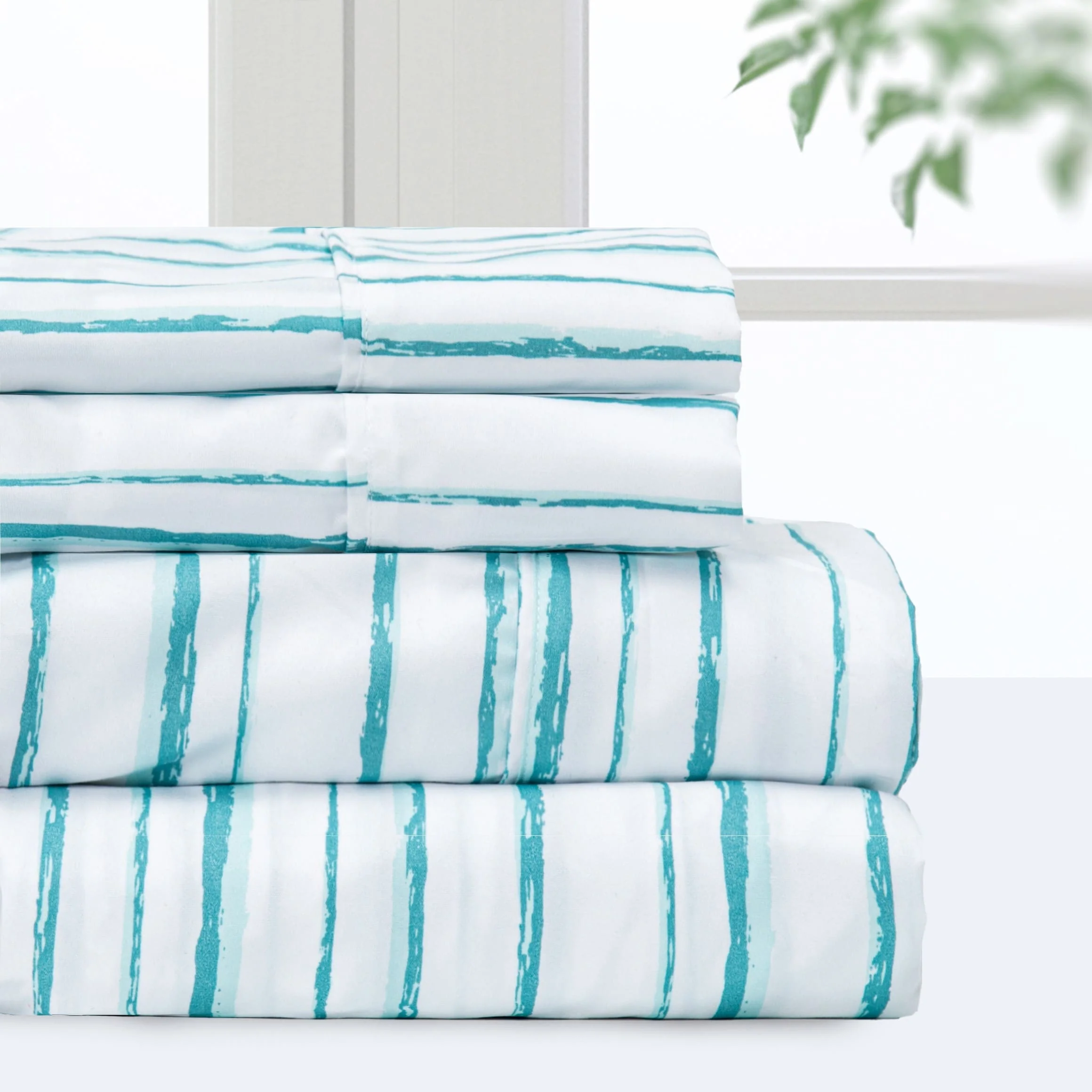 PREMIUS 4-6 Piece Printed Wrinkle-Free Sheet Set, Watercolor Stripe