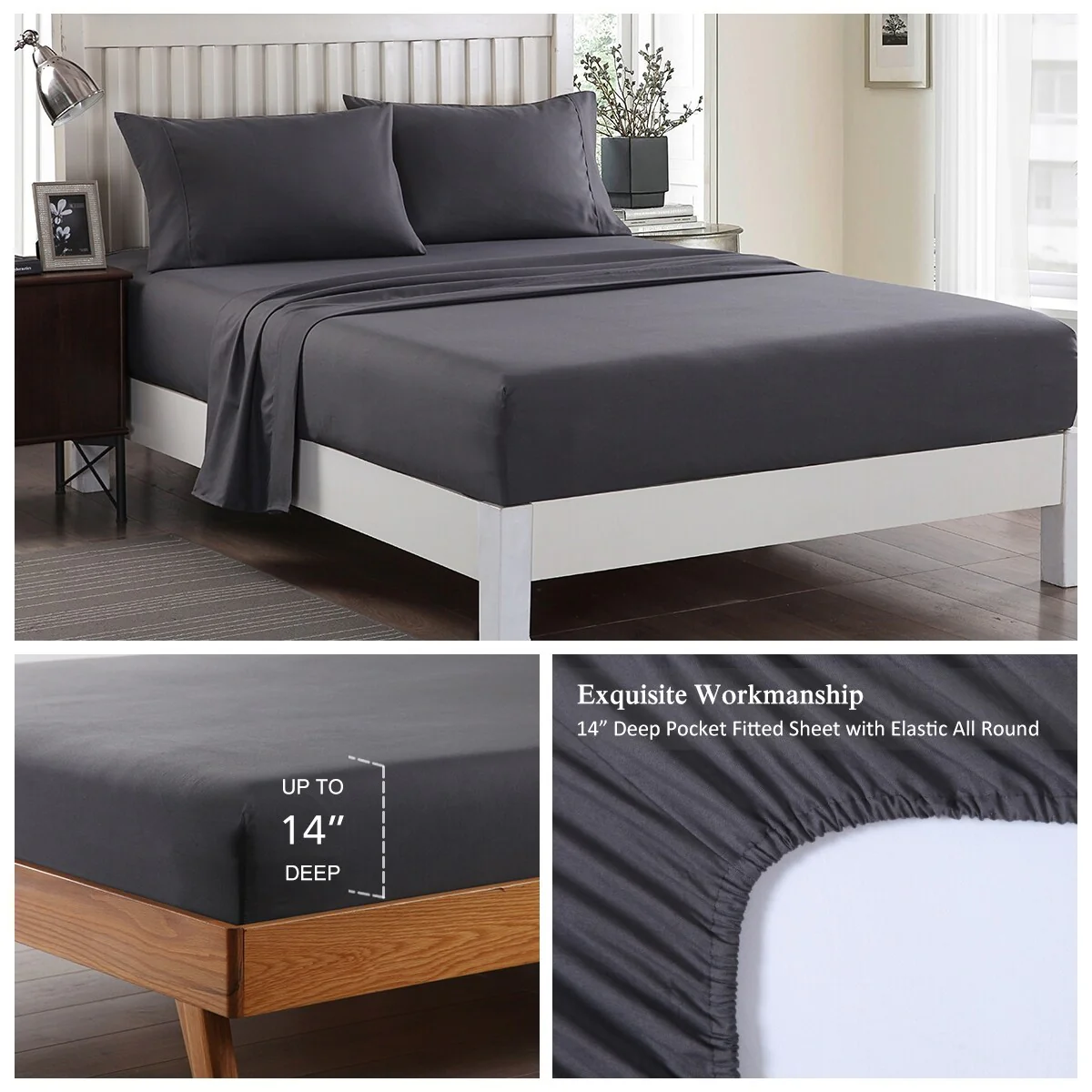 4 Piece Brushed Microfiber Bed sheet Set Wrinkle, Fade, Stain Resistant