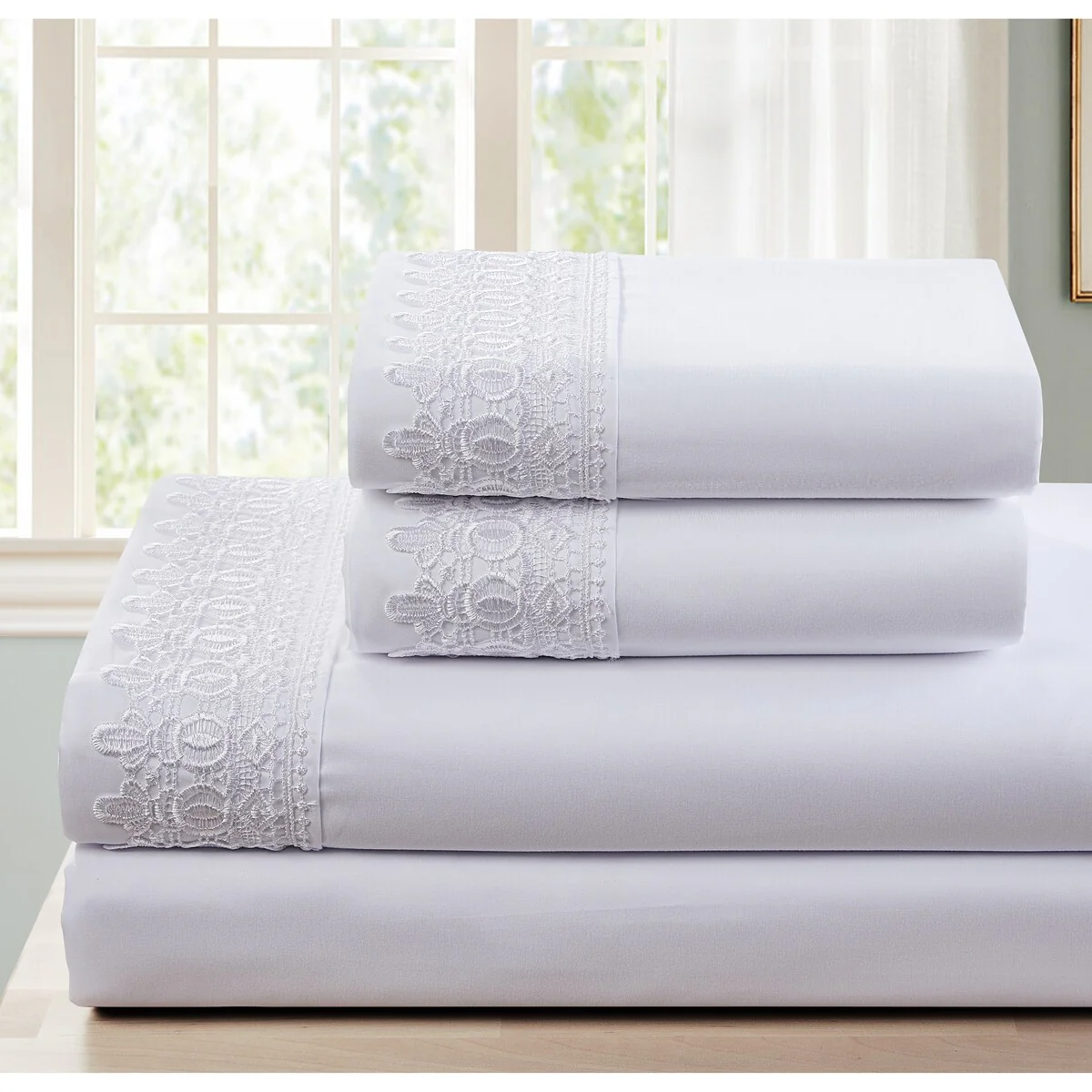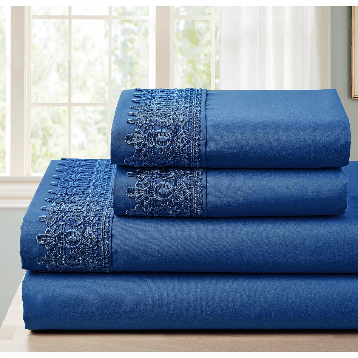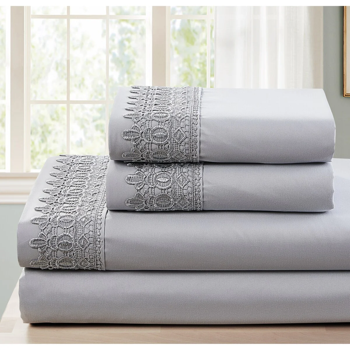 Modern Threads 4-Piece Soft Microfiber Crochet Lace Sheet Set