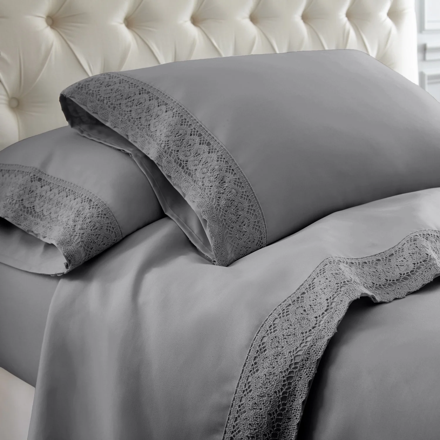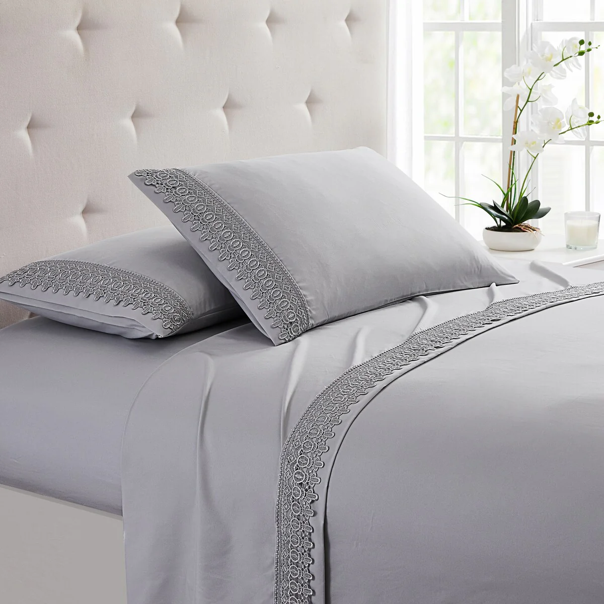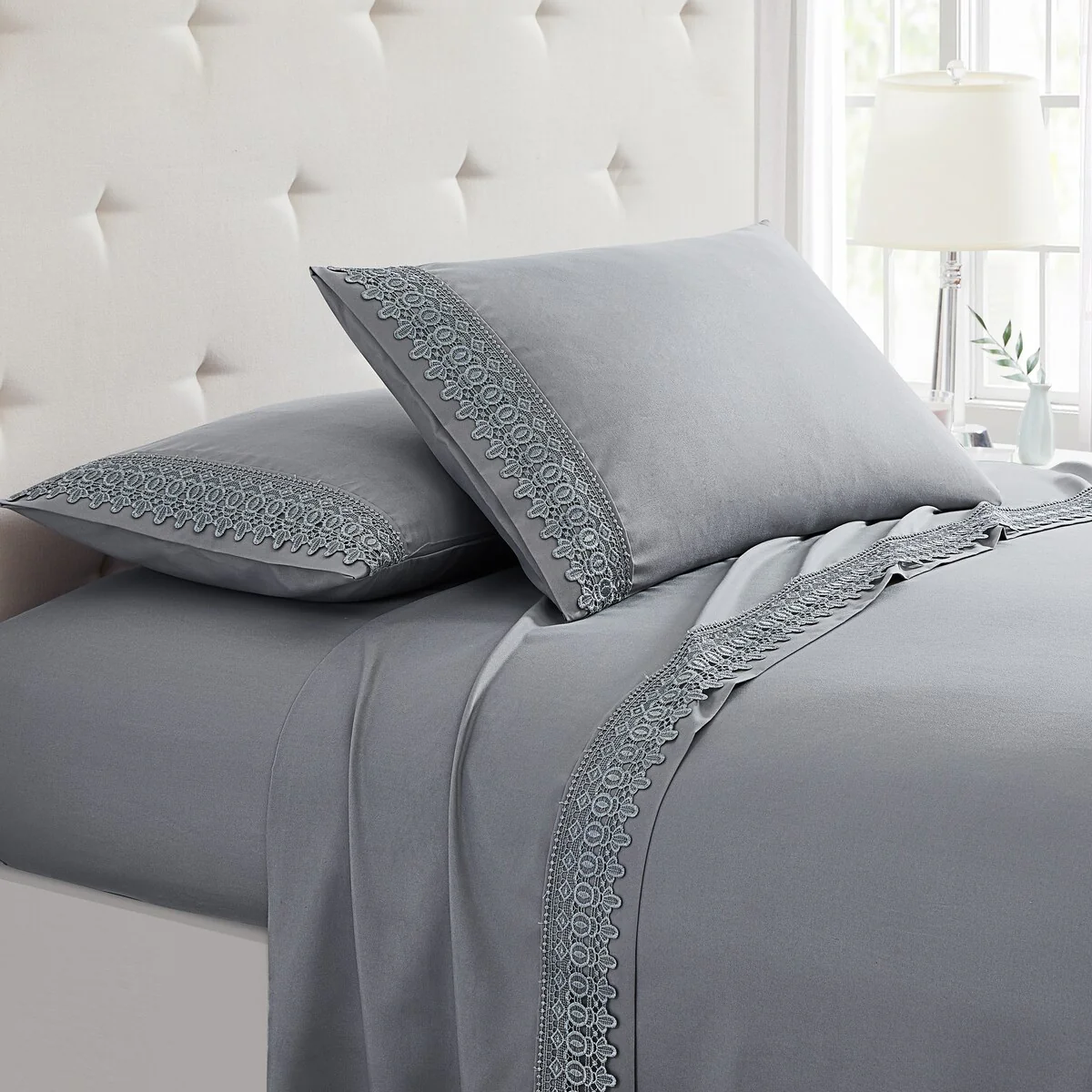 Modern Threads 4-Piece Soft Microfiber Crochet Lace Sheet Set