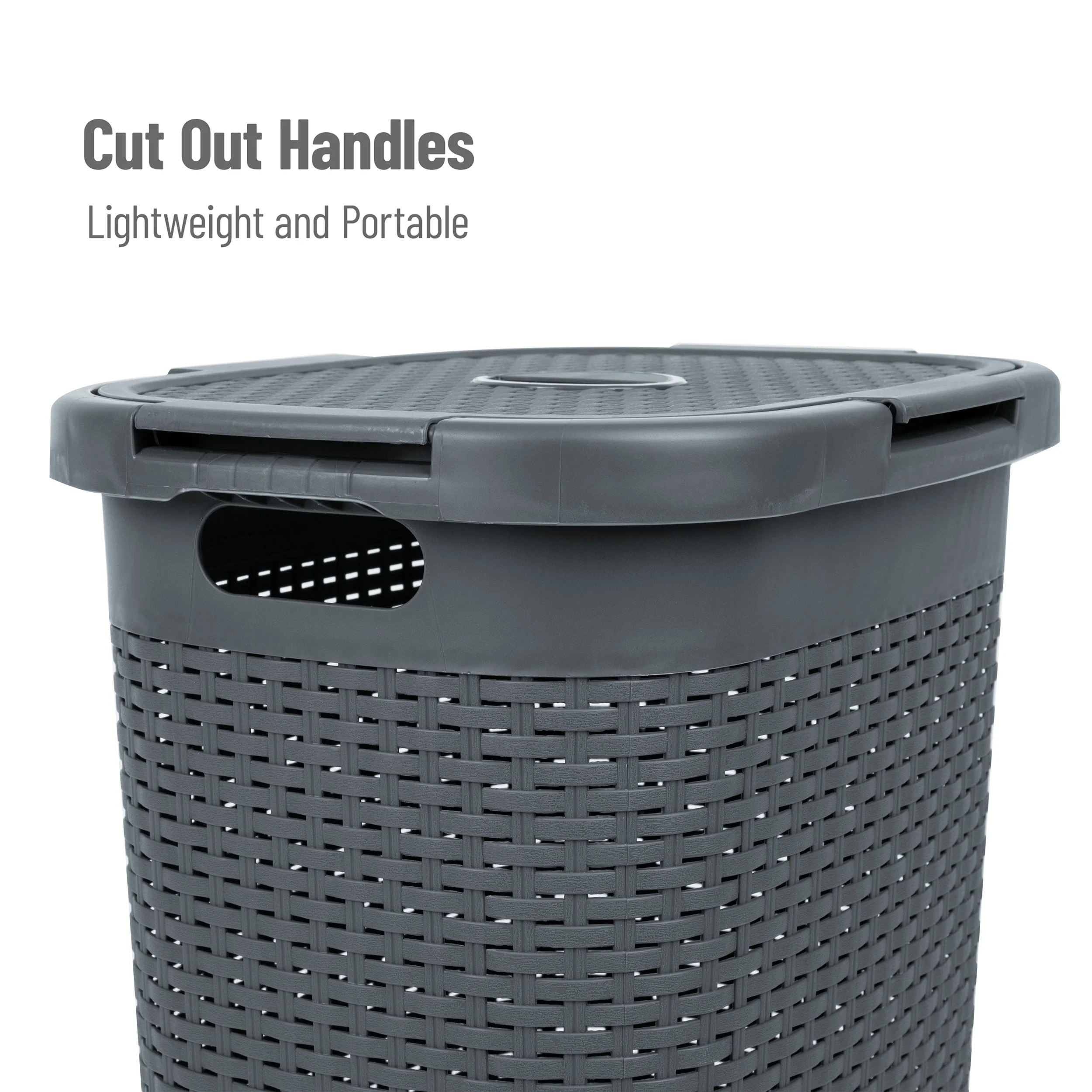 Whether you need to clear up clothes clutter from your floor, store seasonal clothing, or transport laundry up and down the stairs, this hamper is up to the task. Thanks to the portable, lightweight design and convenient cut-out handles, carrying a full basket is a breeze, whether you're headed to the laundry room, the laundromat, or back home from college.