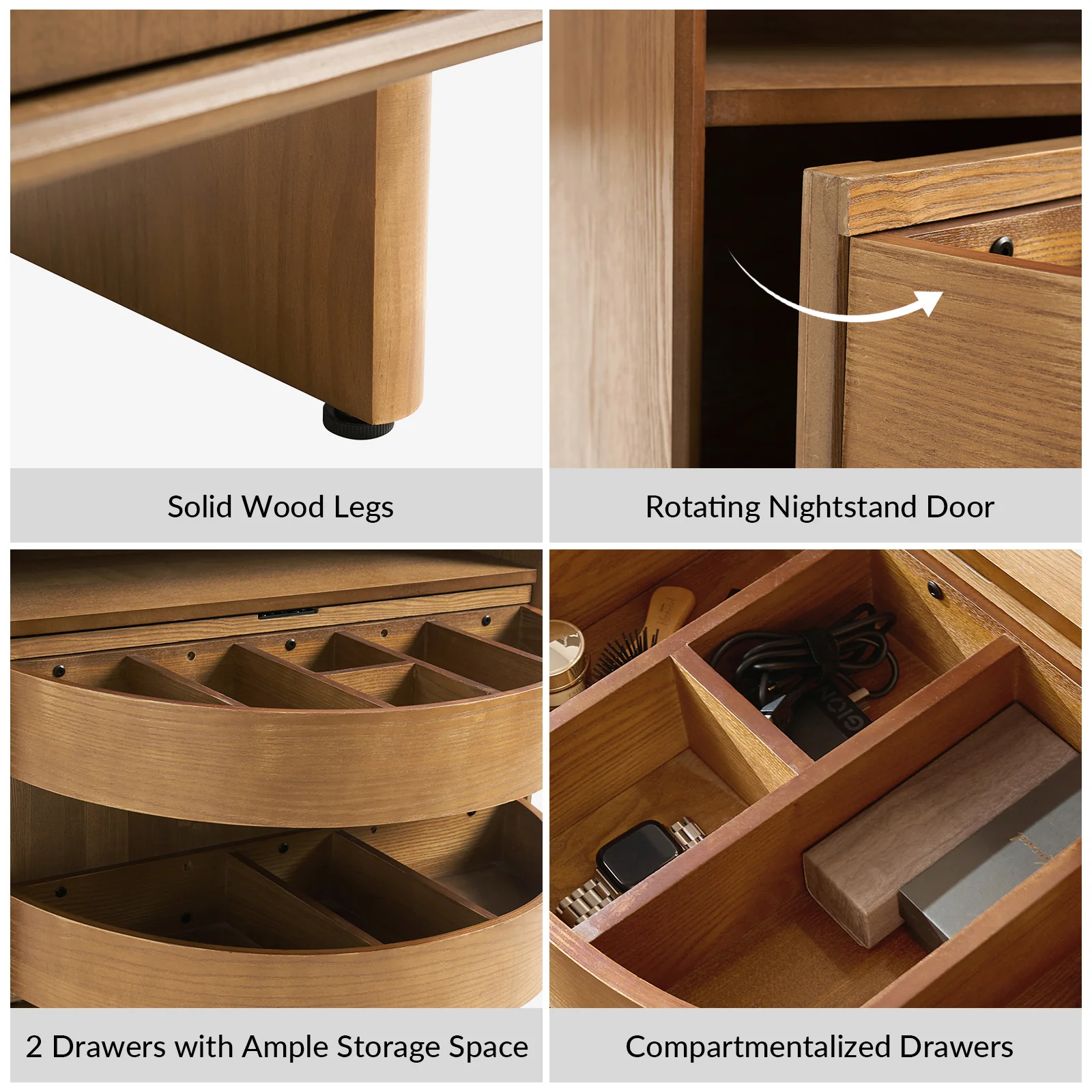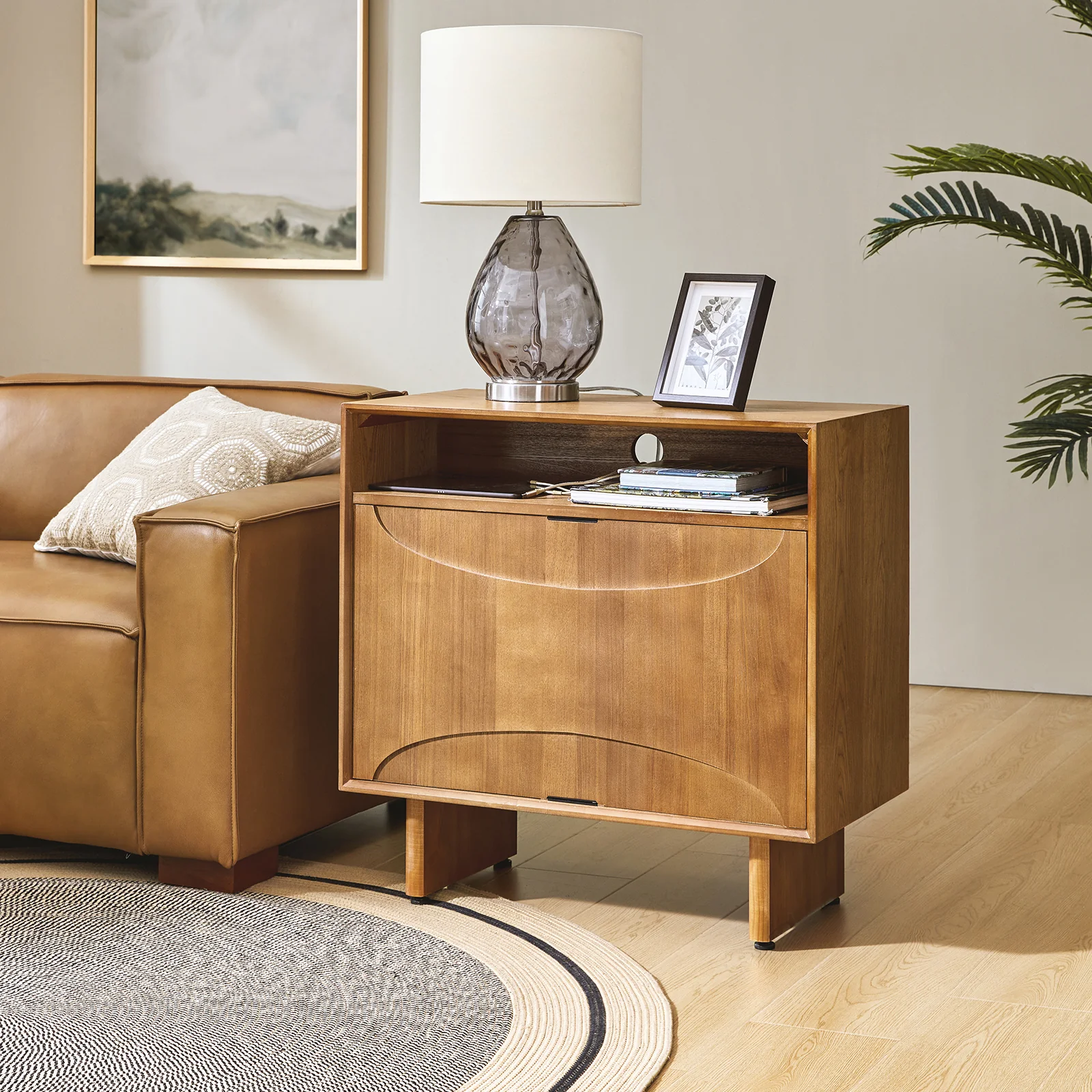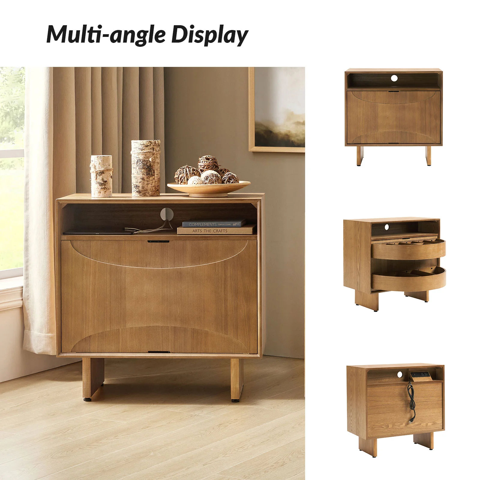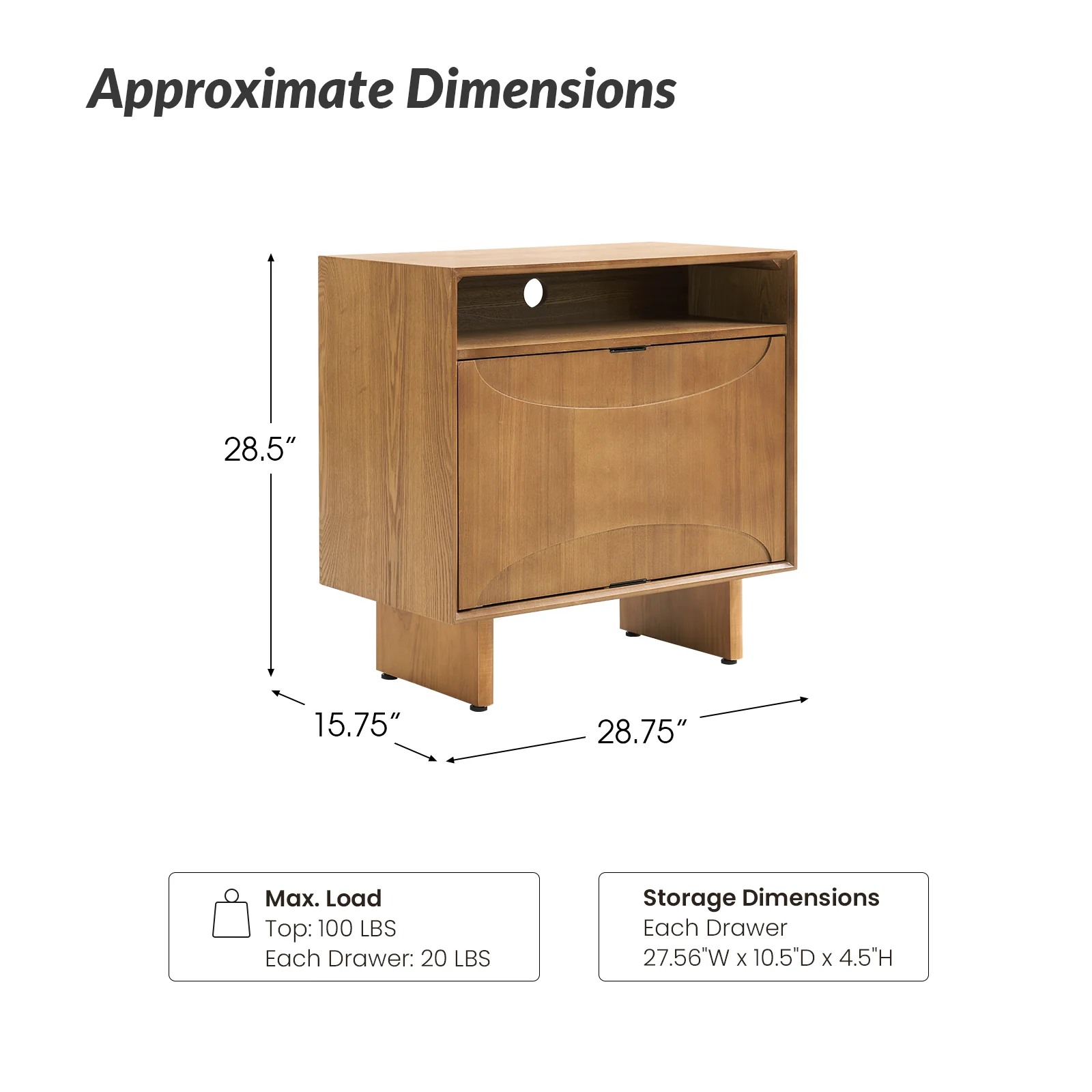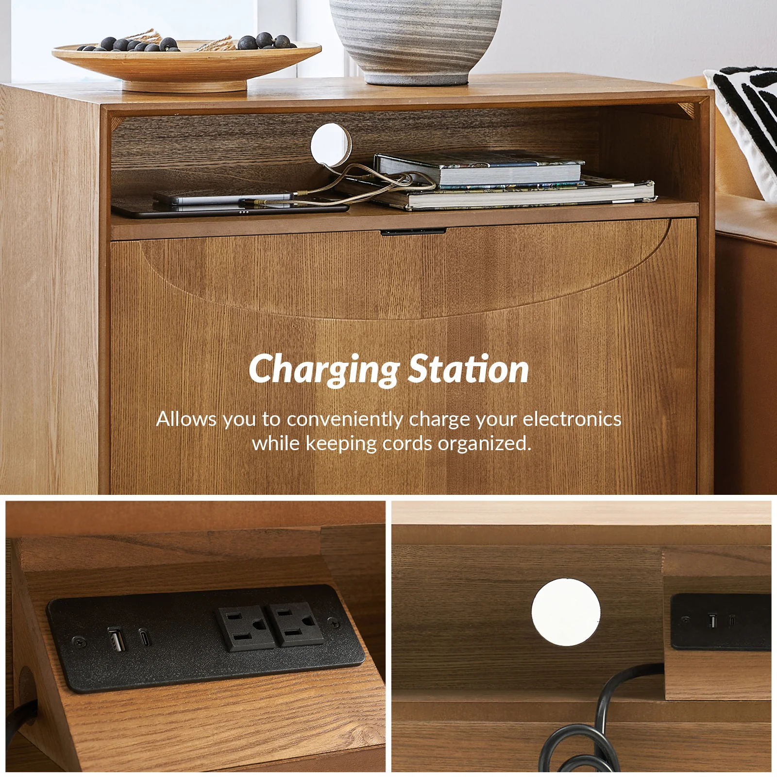 Dan 28" Tall Modern Style Nightstand with Built-In Outlets