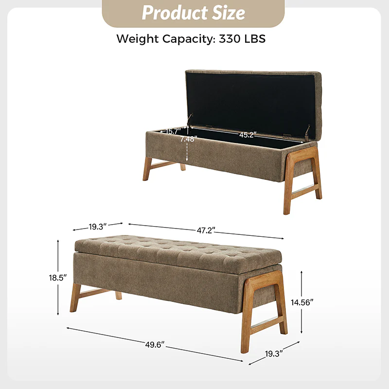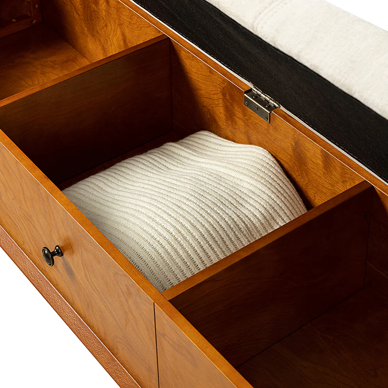 Cherry Upholstered Flip Top Storage Bench