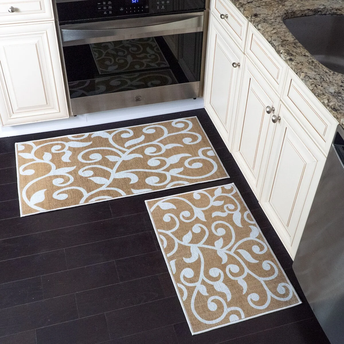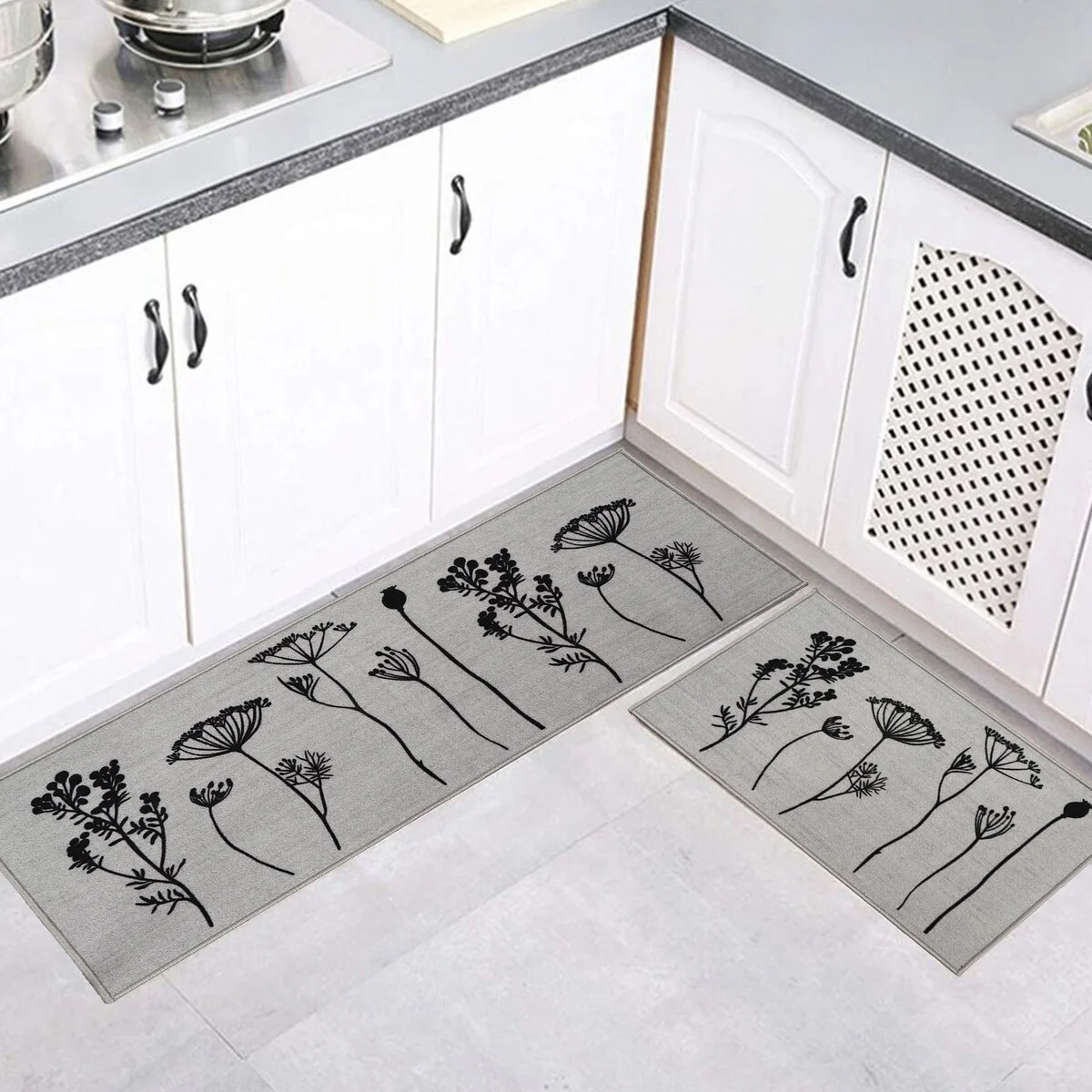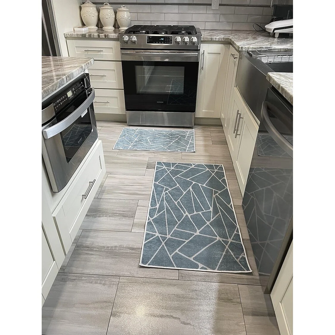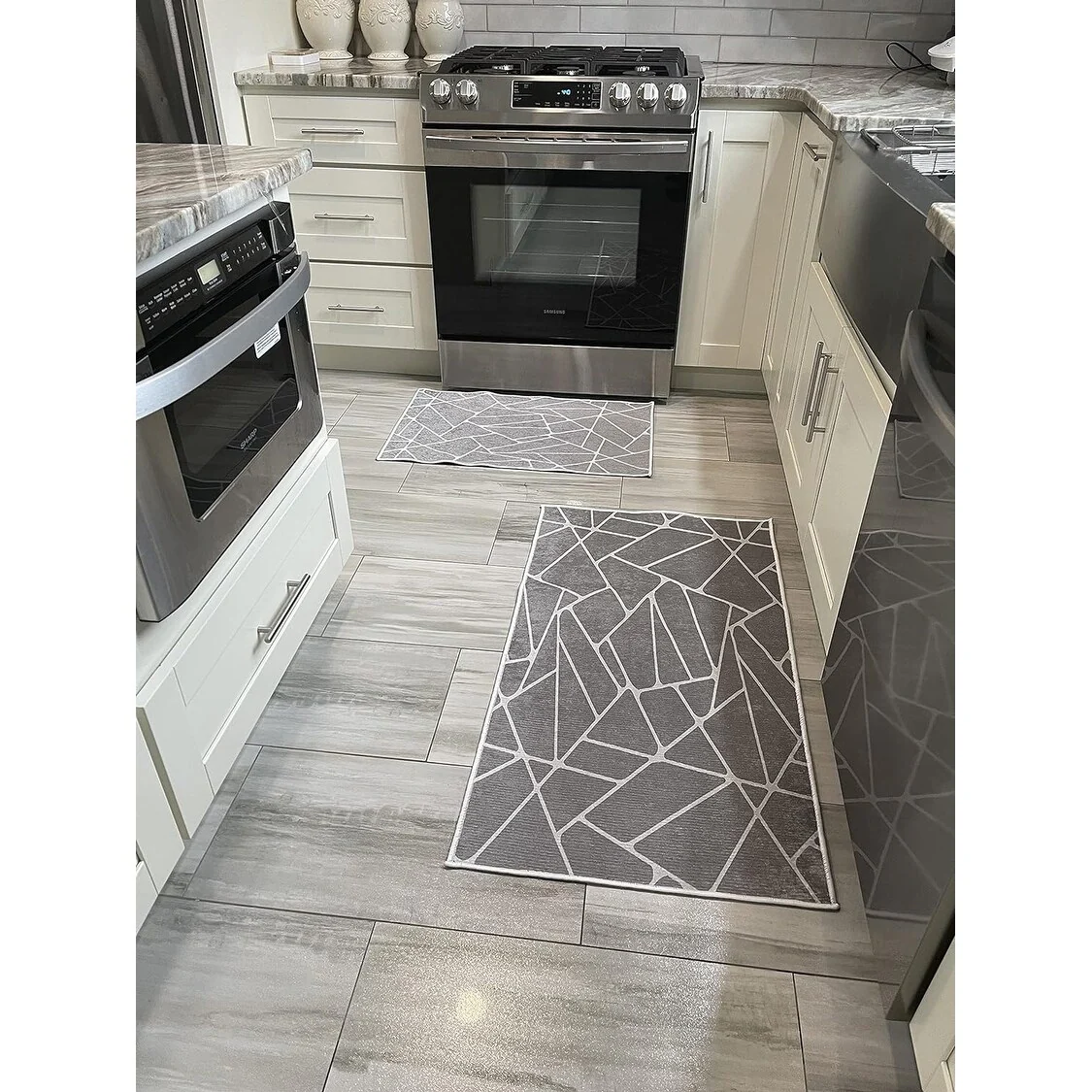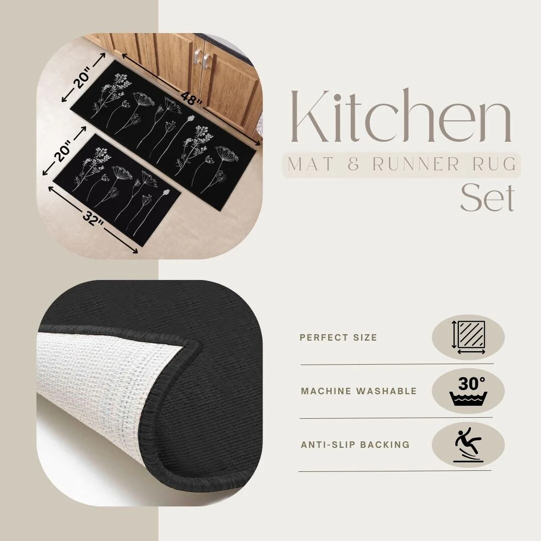Non-skid Washable Kitchen Runner Rugs (Set of 2) - Set of 44 x 24 and 31.5 x 20 Inches