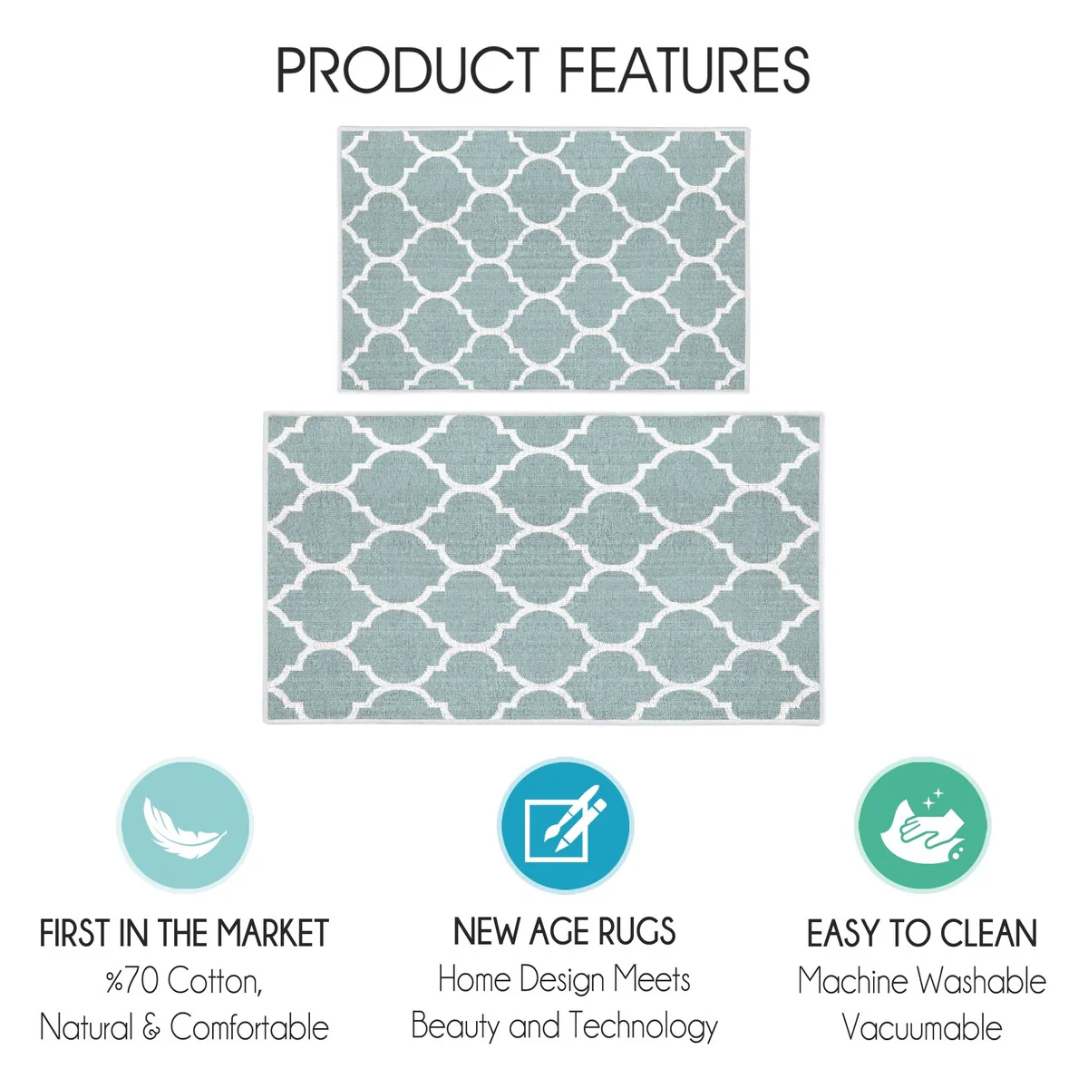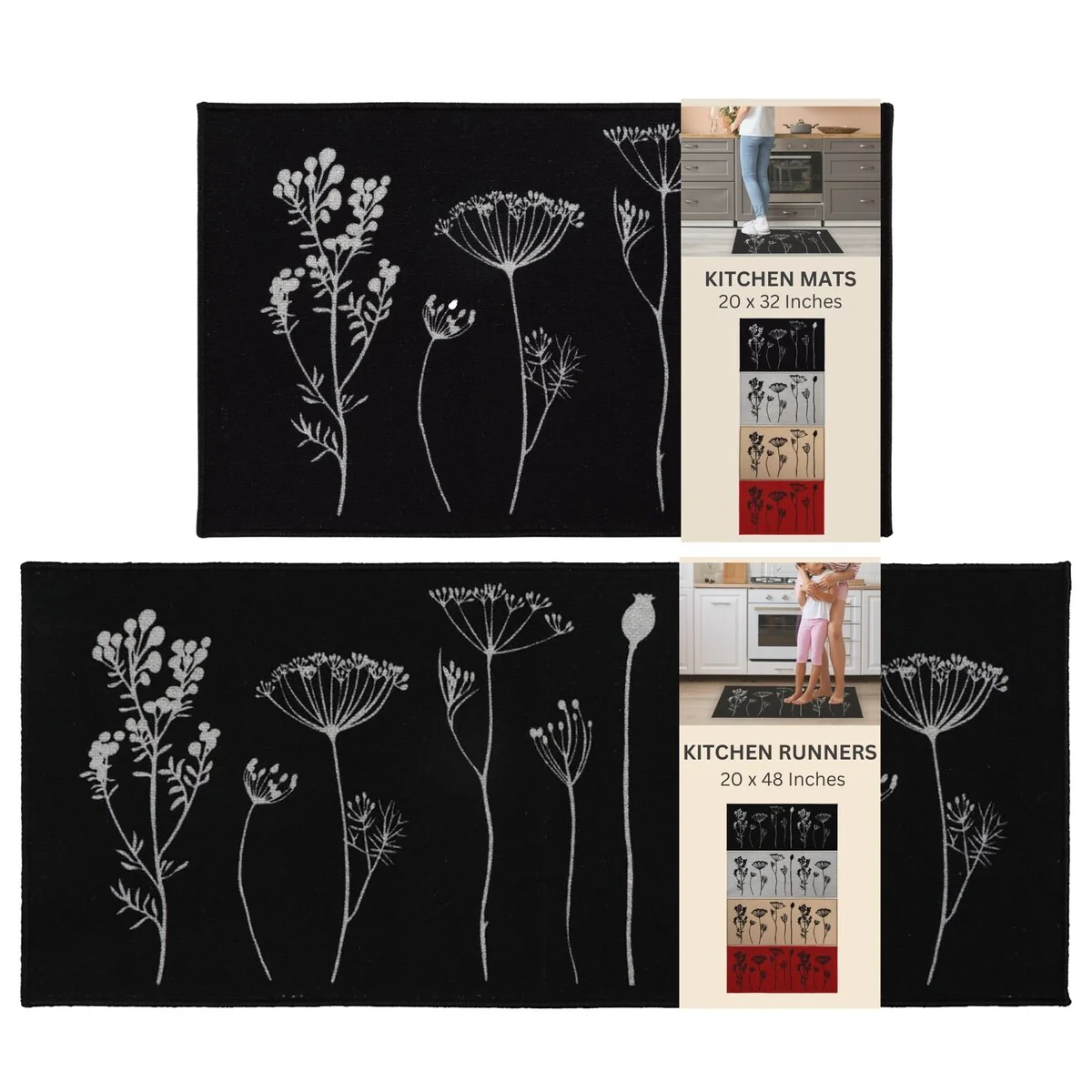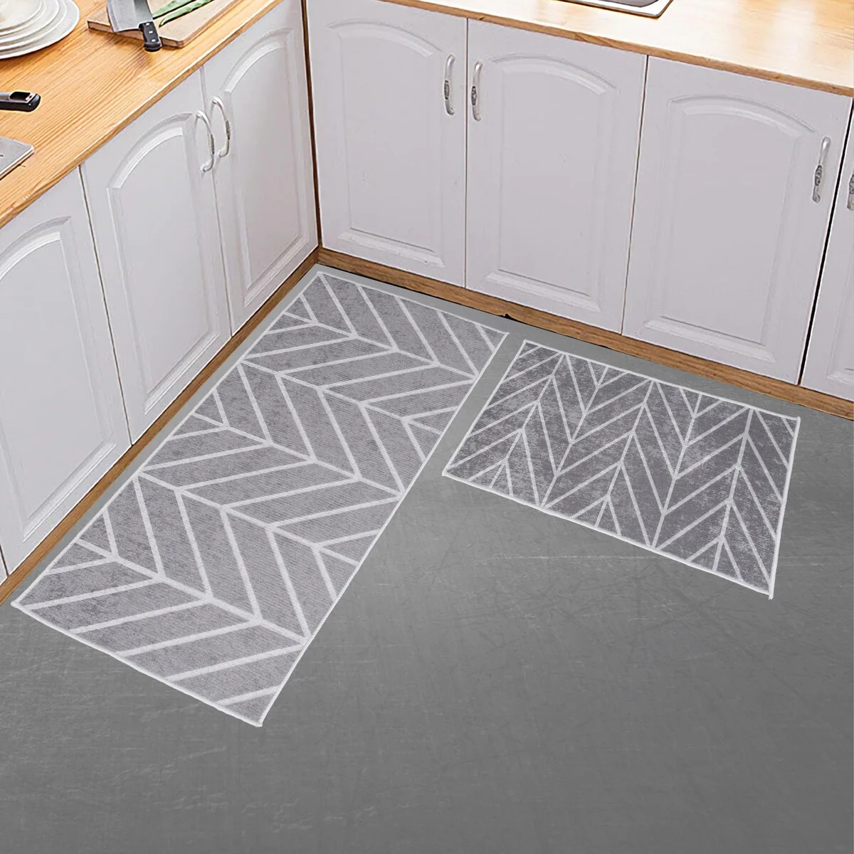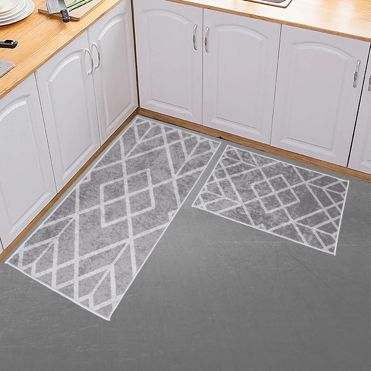 Non-skid Washable Kitchen Runner Rugs (Set of 2) - Set of 44 x 24 and 31.5 x 20 Inches