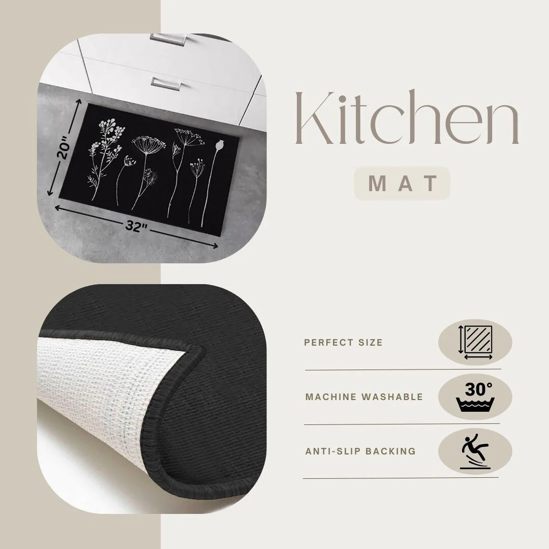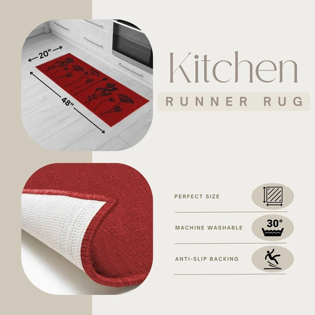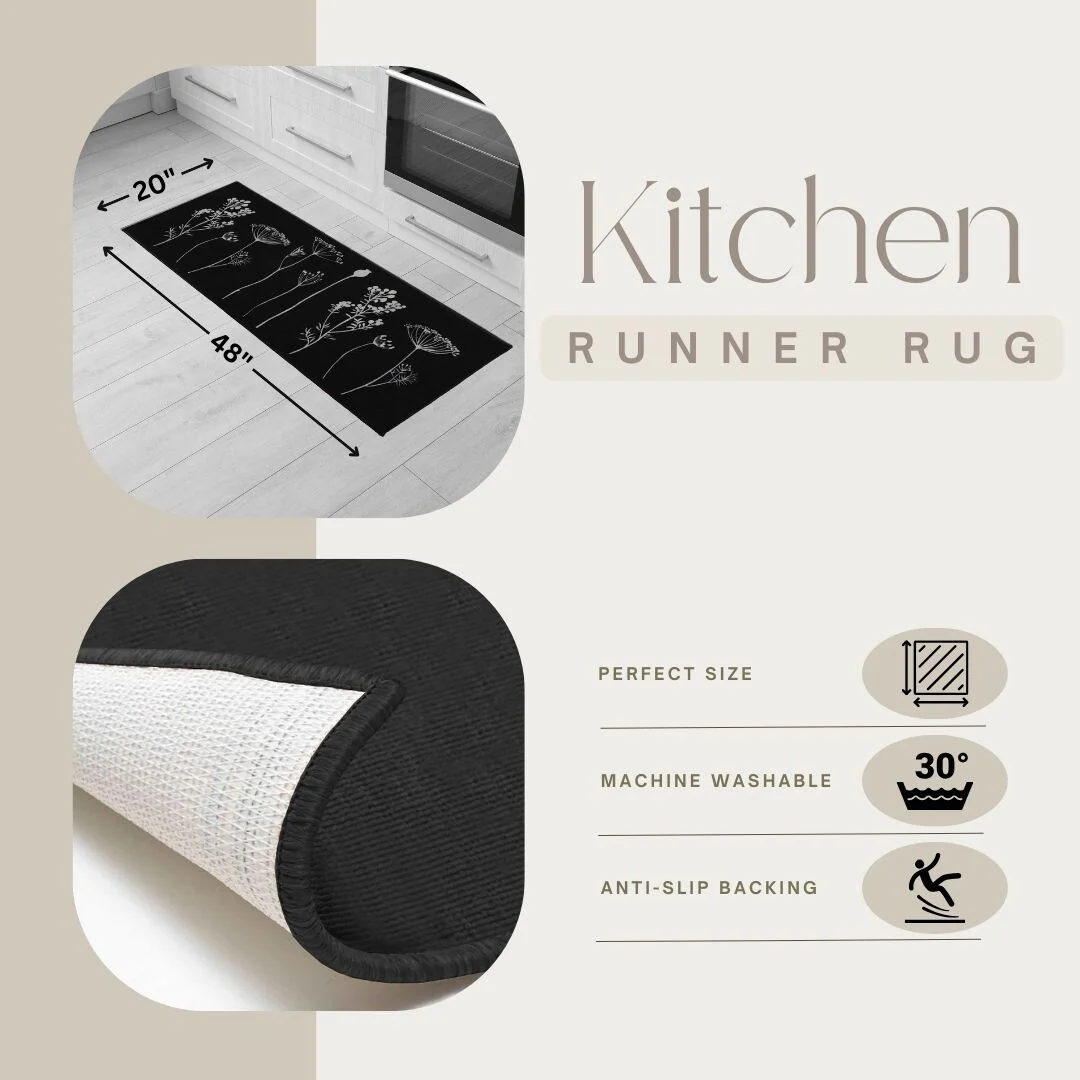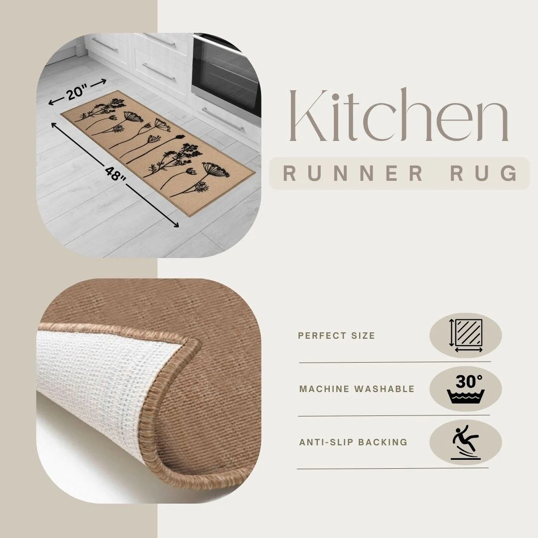 Wool Effect Wildflowers Kitchen Mat or Runner Rug