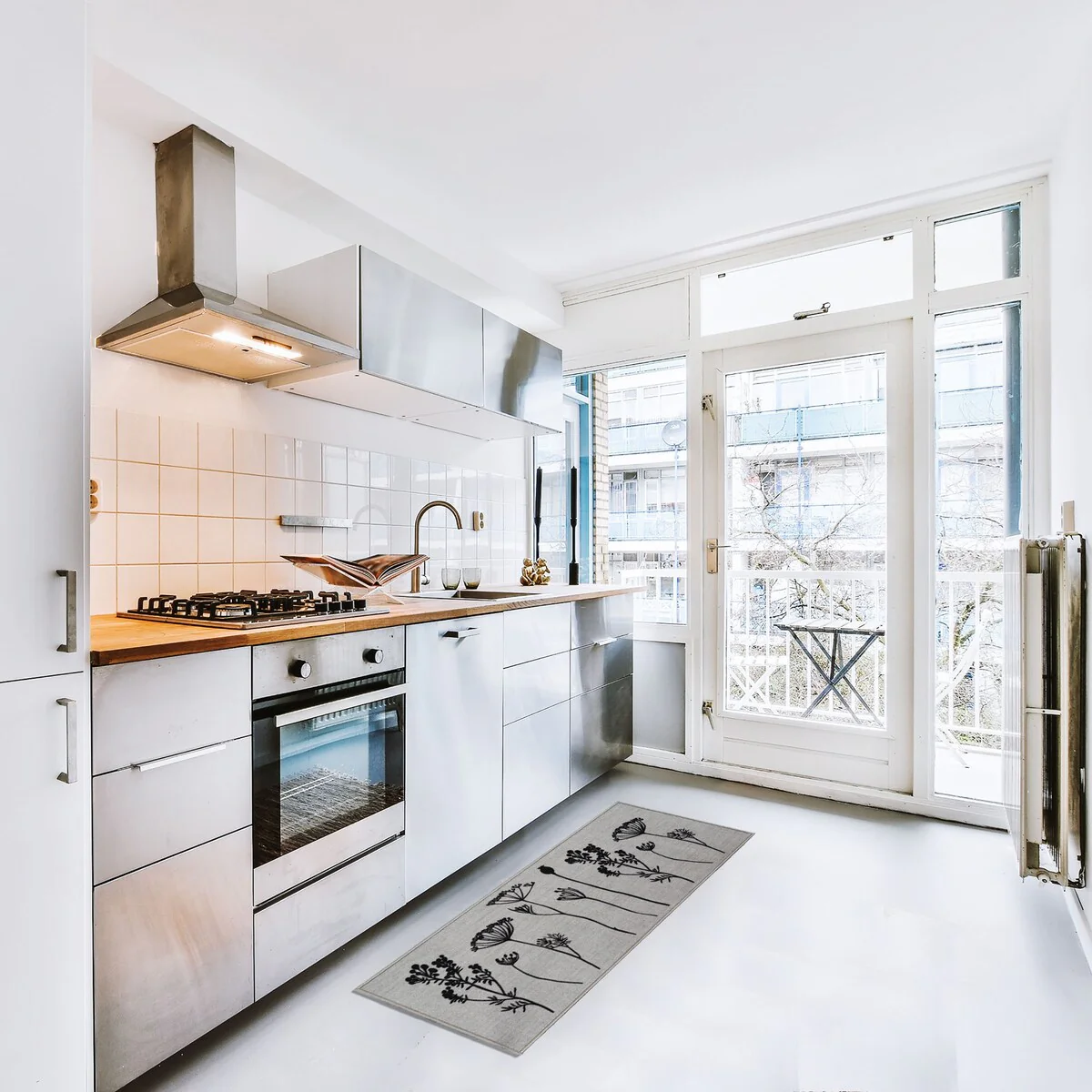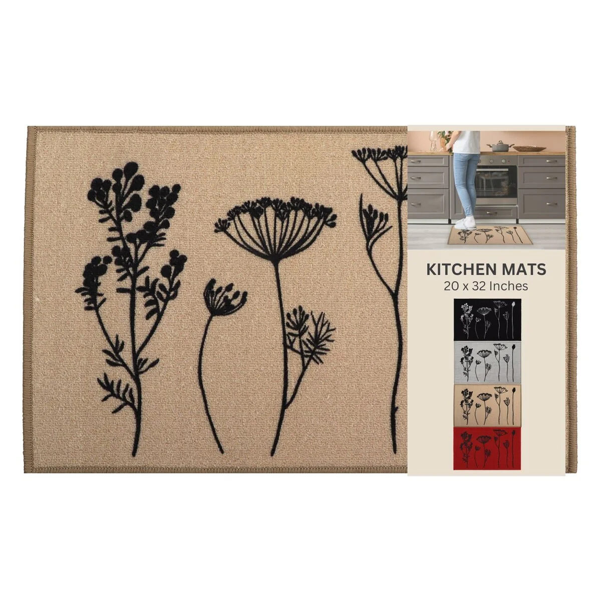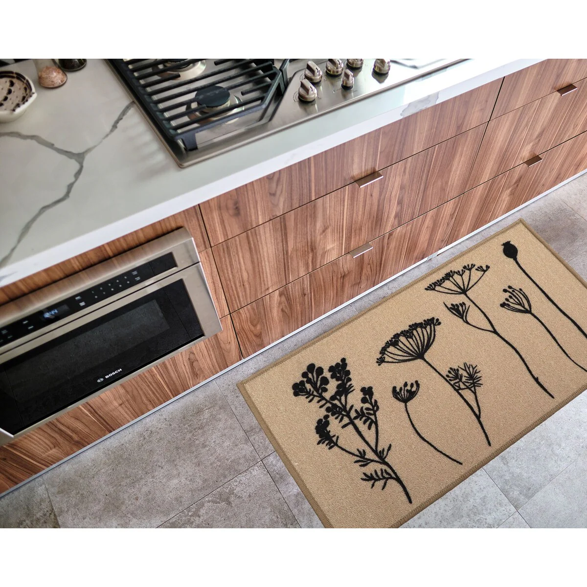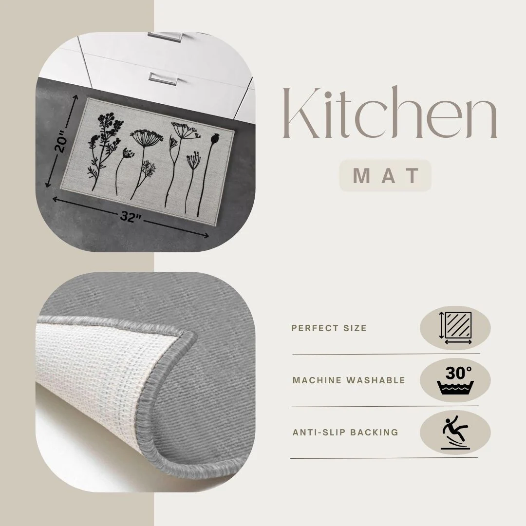 Wool Effect Wildflowers Kitchen Mat or Runner Rug